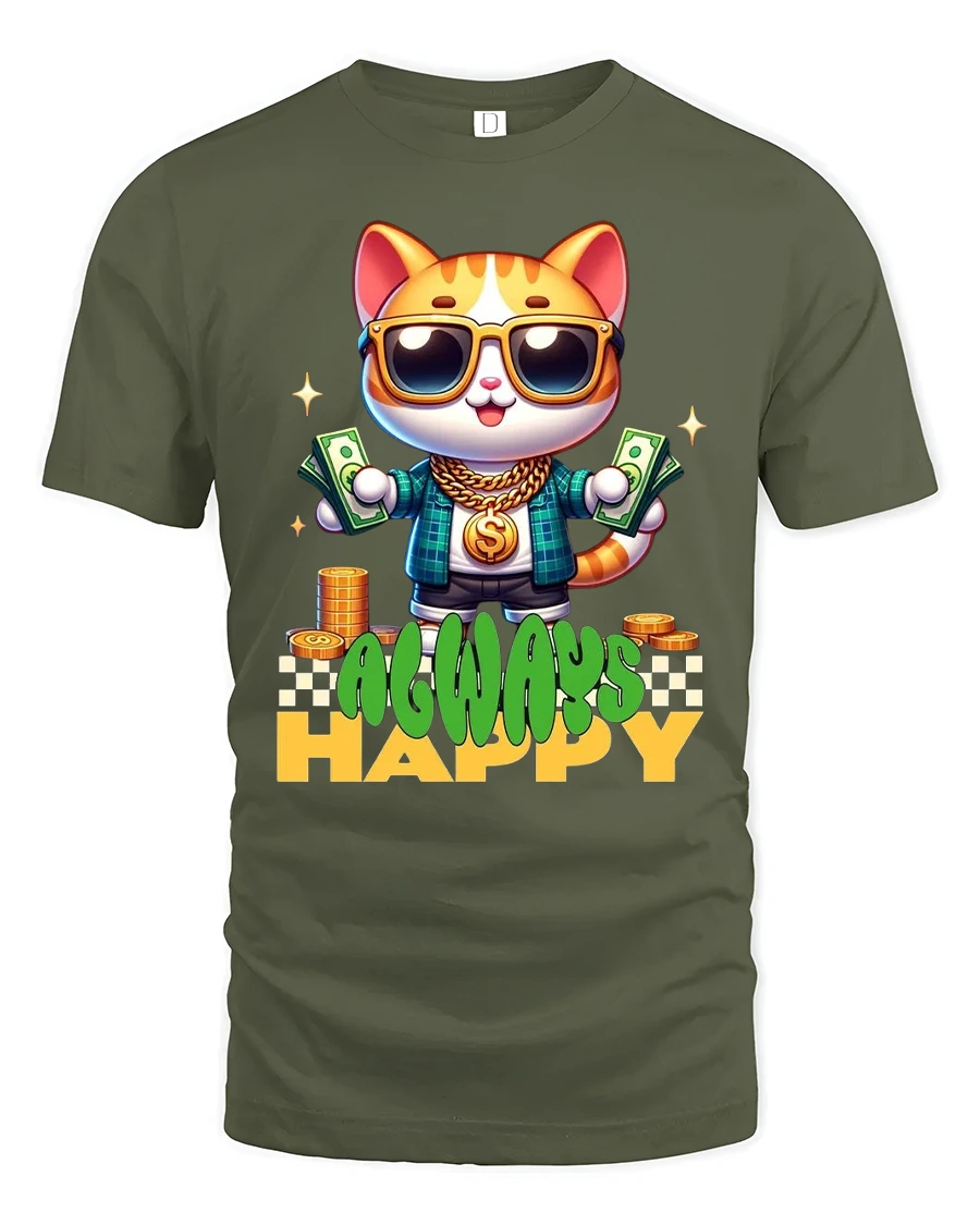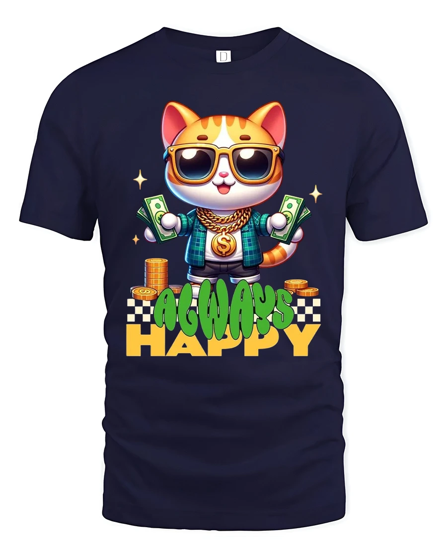 The Always Happy Money Cat Street Style Graphic Tee Shirt represents joy success and carefree confidence.