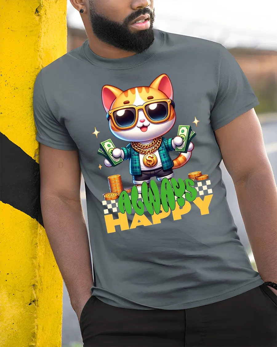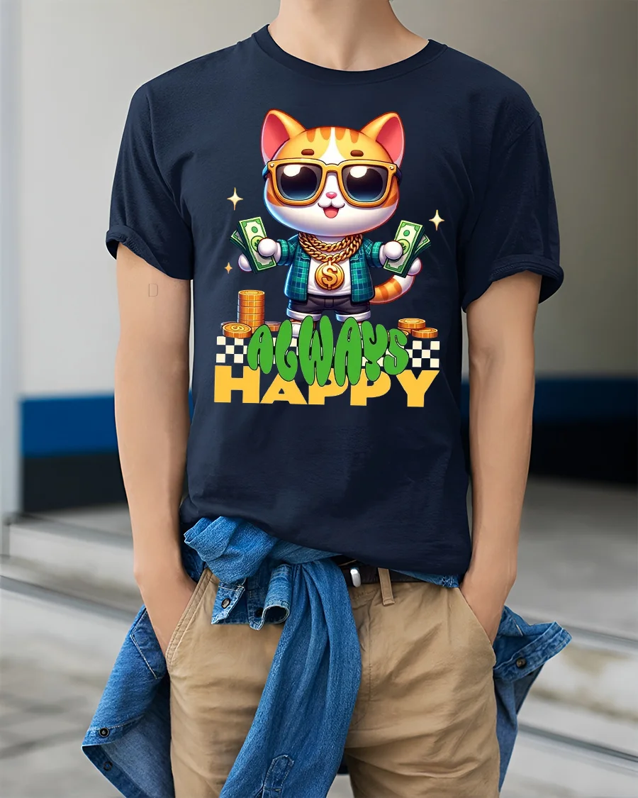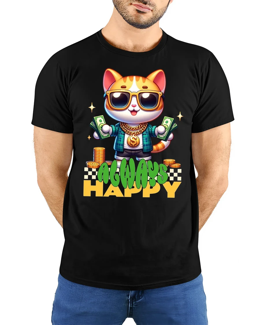 The Always Happy Money Cat Street Style Graphic Tee Shirt brings fun confidence and playful street energy into everyday fashion.