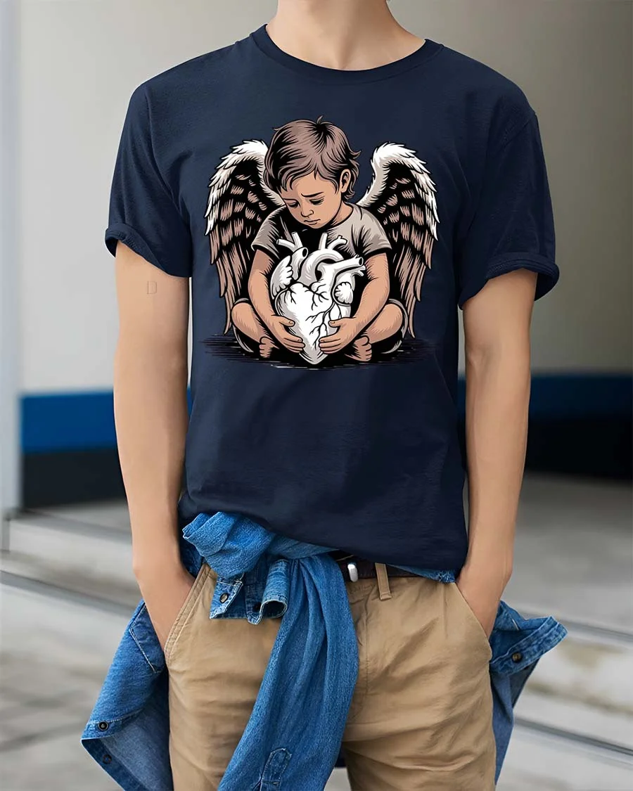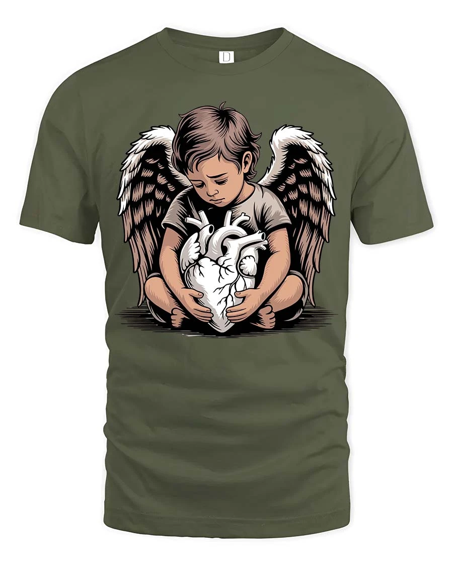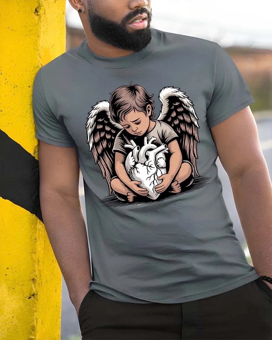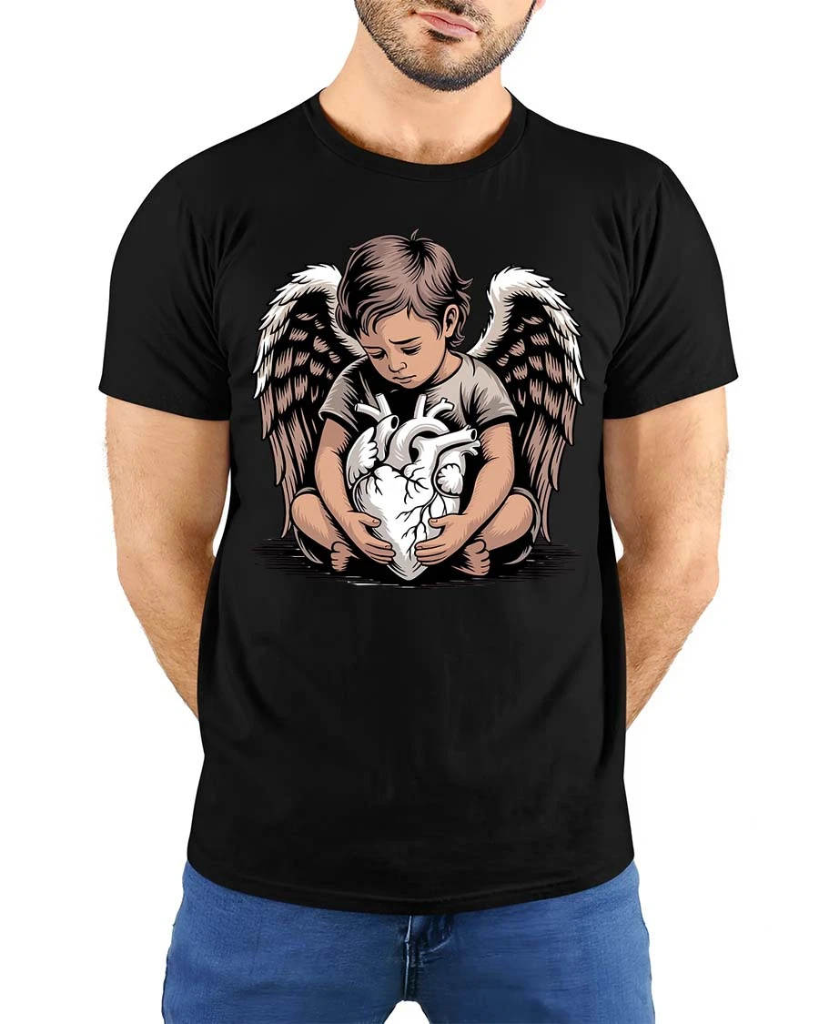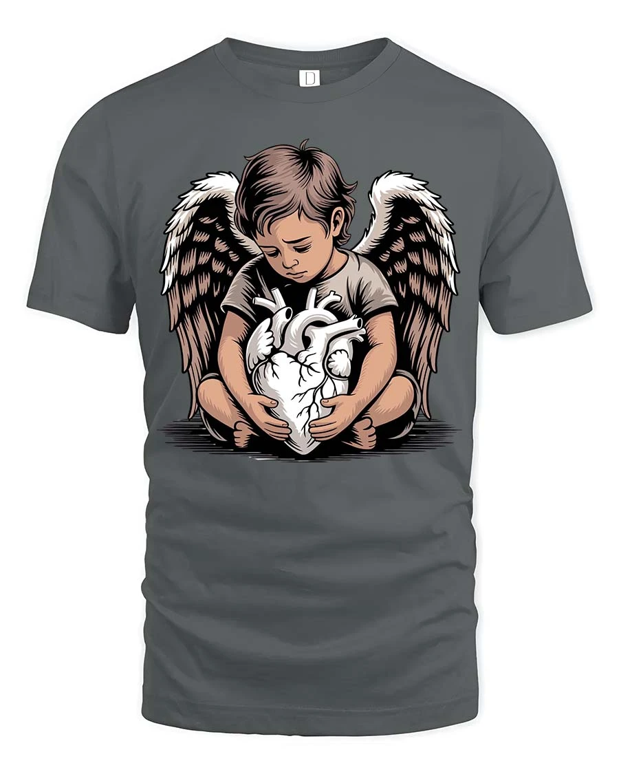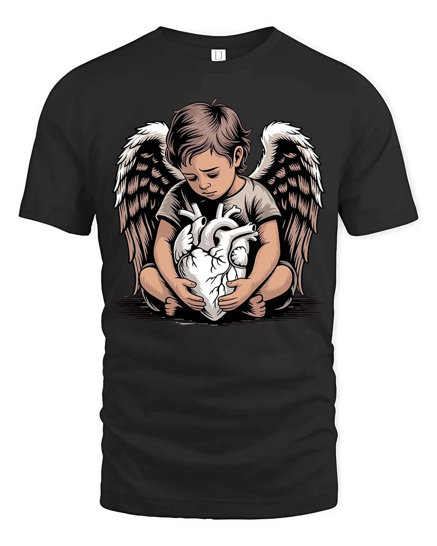 Angel Child Holding Heart Graphic T Shirt Emotional Art Style expresses a deep and powerful message through a beautifully detailed design.