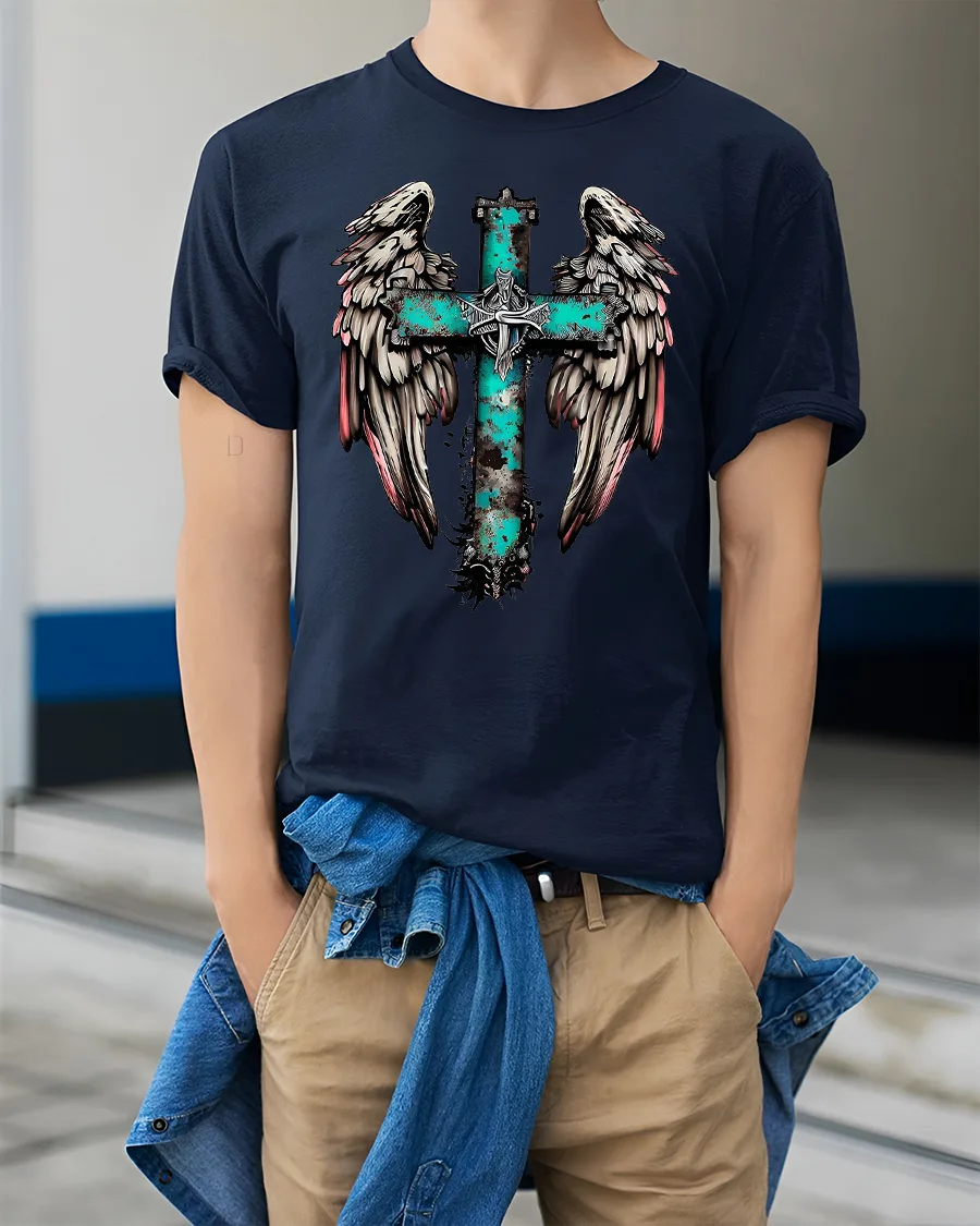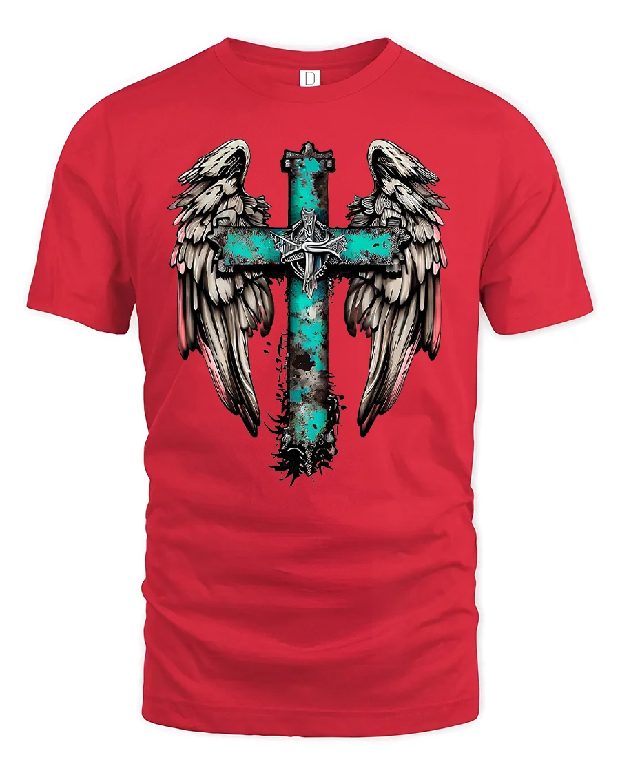 Made with soft, high-quality cotton, the Angel Cross Wings T-Shirt offers lasting comfort and durability. The vivid print captures every detail of the wings and cross, creating a striking look that won’t fade after washes. Whether worn casually or styled as a statement piece, it fits perfectly into both modern streetwear and faith-inspired fashion.