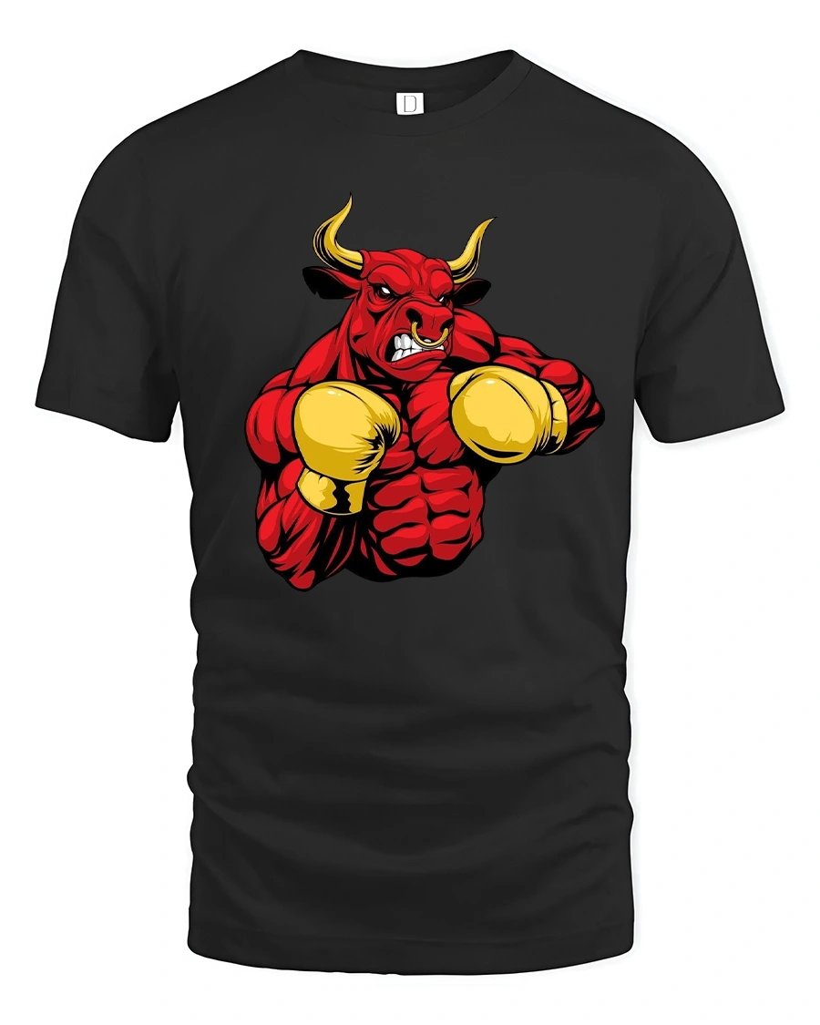 Angry Boxing Bull Tee With Powerful Muscle Cartoon Artwork