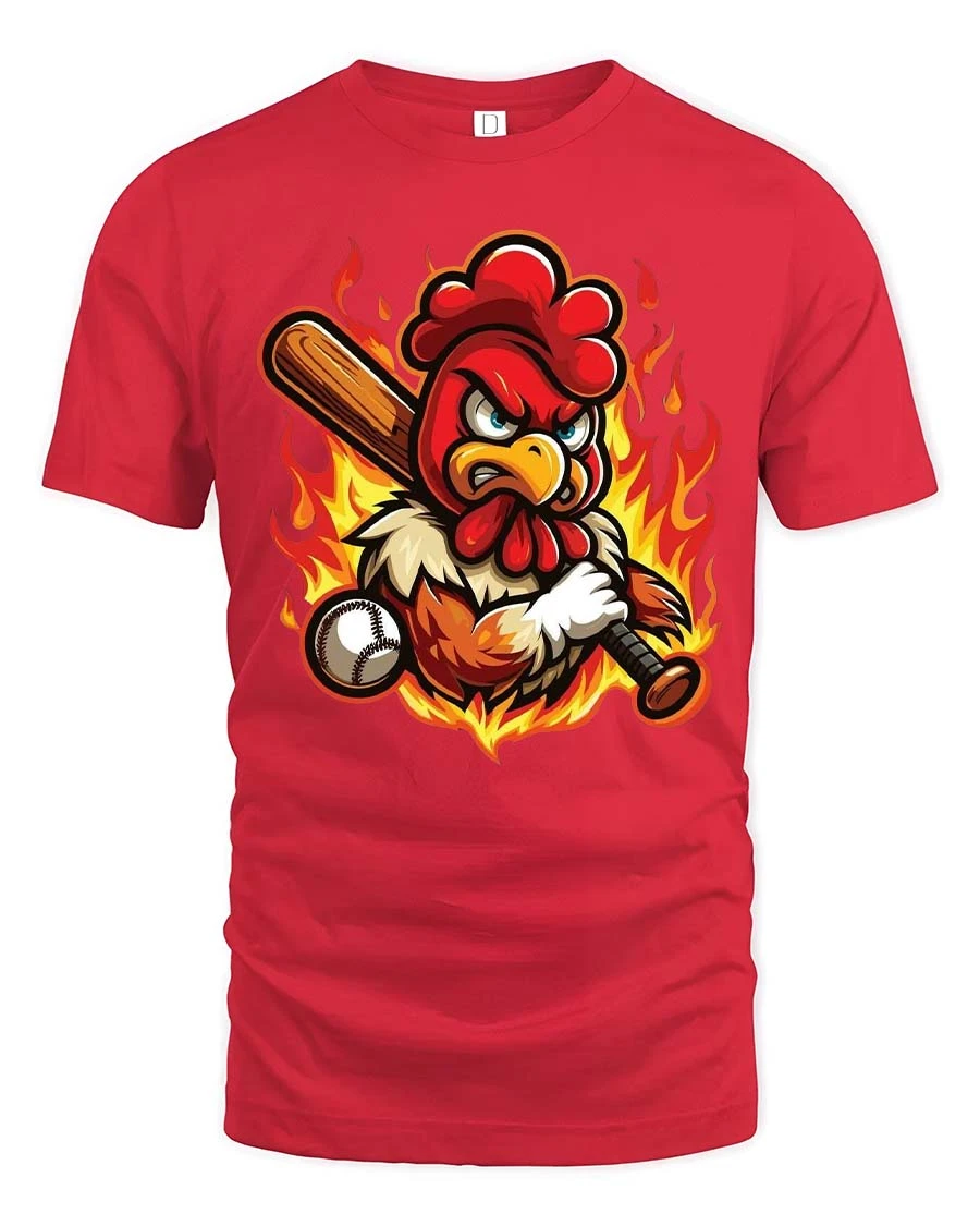 Angry Fire Chicken Baseball Player Funny Sports Graphic Tshirt delivers a bold mix of humor, sports energy, and vibrant cartoon artwork that stands out instantly.