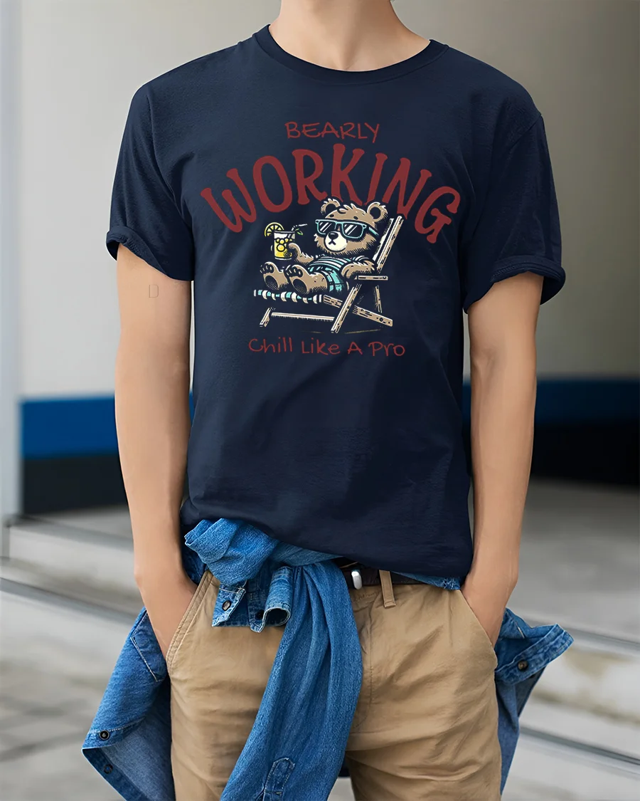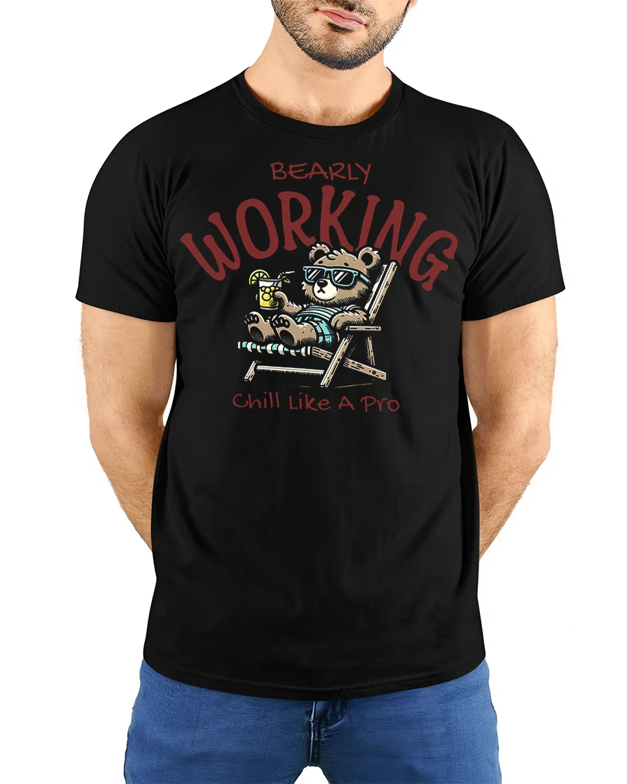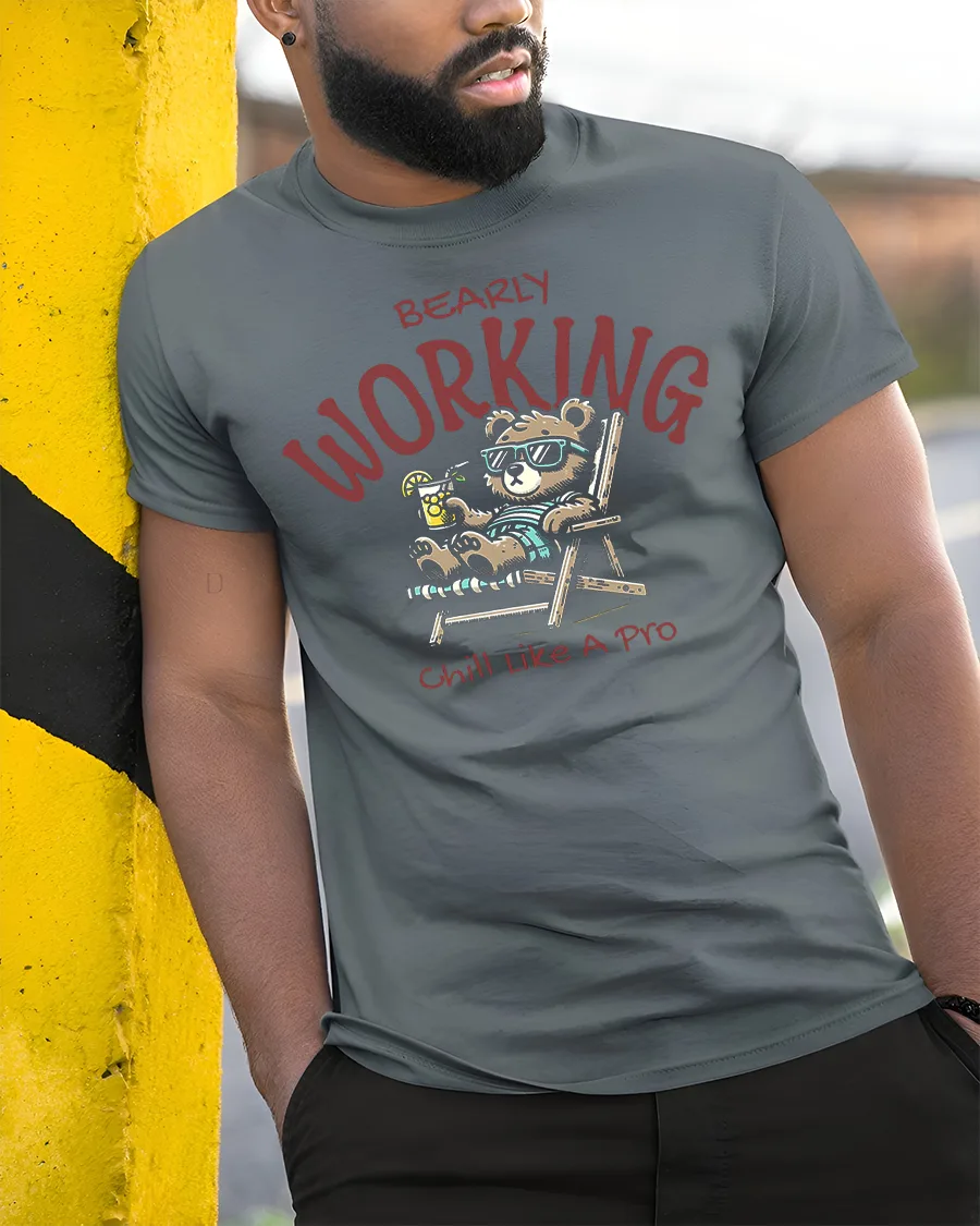 The Bearly Working Funny Relaxed Bear Chill Graphic Tee brings laid back humor and carefree vibes into everyday style.