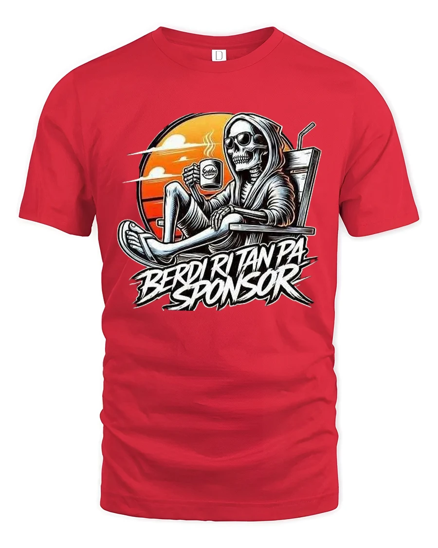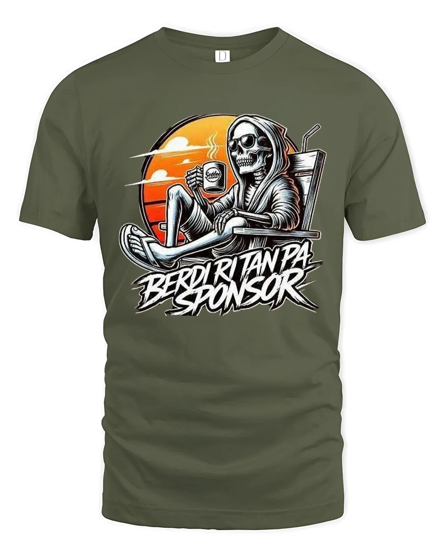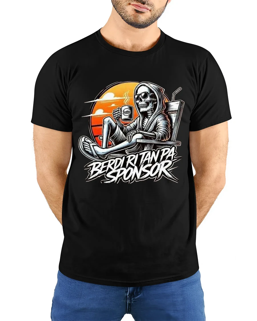 Berdi Ritanpa Sponsor Funny Skeleton Coffee Graphic T Shirt Tee delivers relaxed dark humor with a bold and stylish edge.