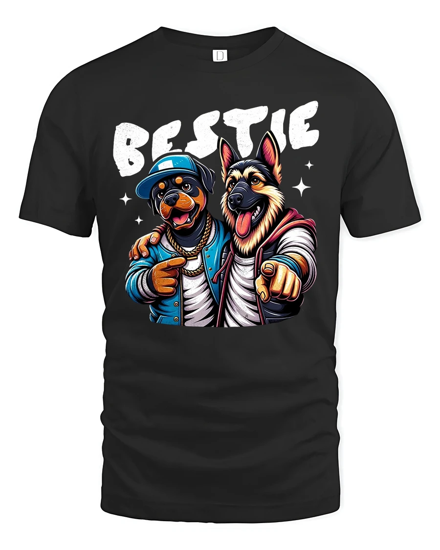 The Bestie Dogs Best Friends Street Style Cartoon Graphic Tshirt Tee celebrates friendship loyalty and good vibes with a fun urban twist.