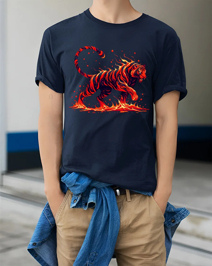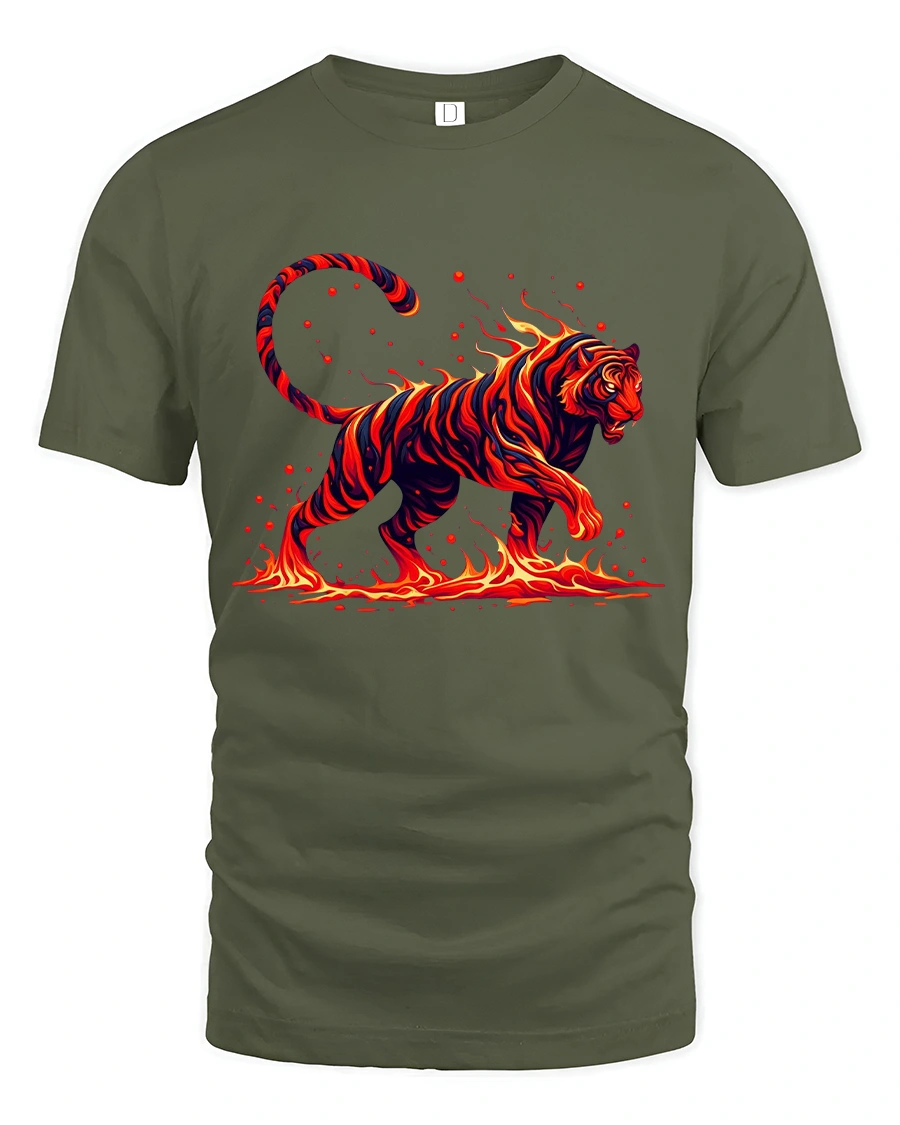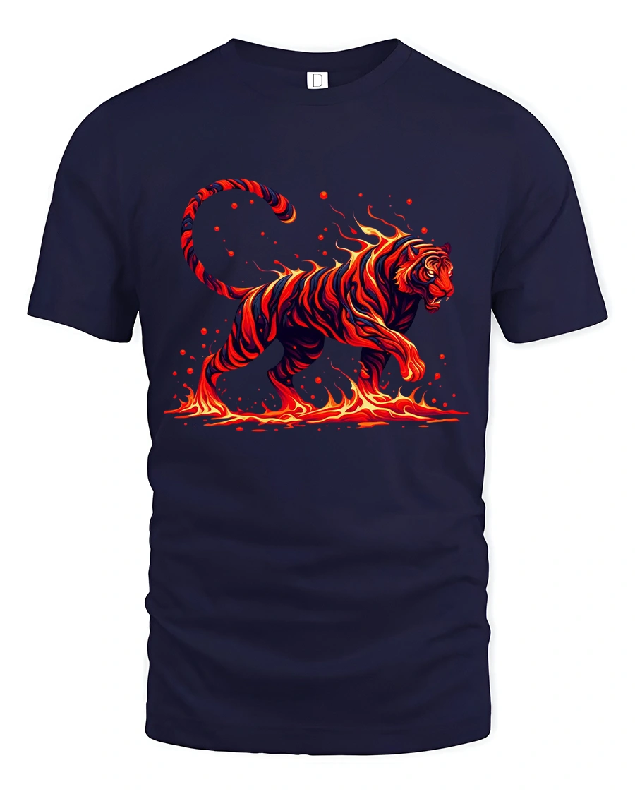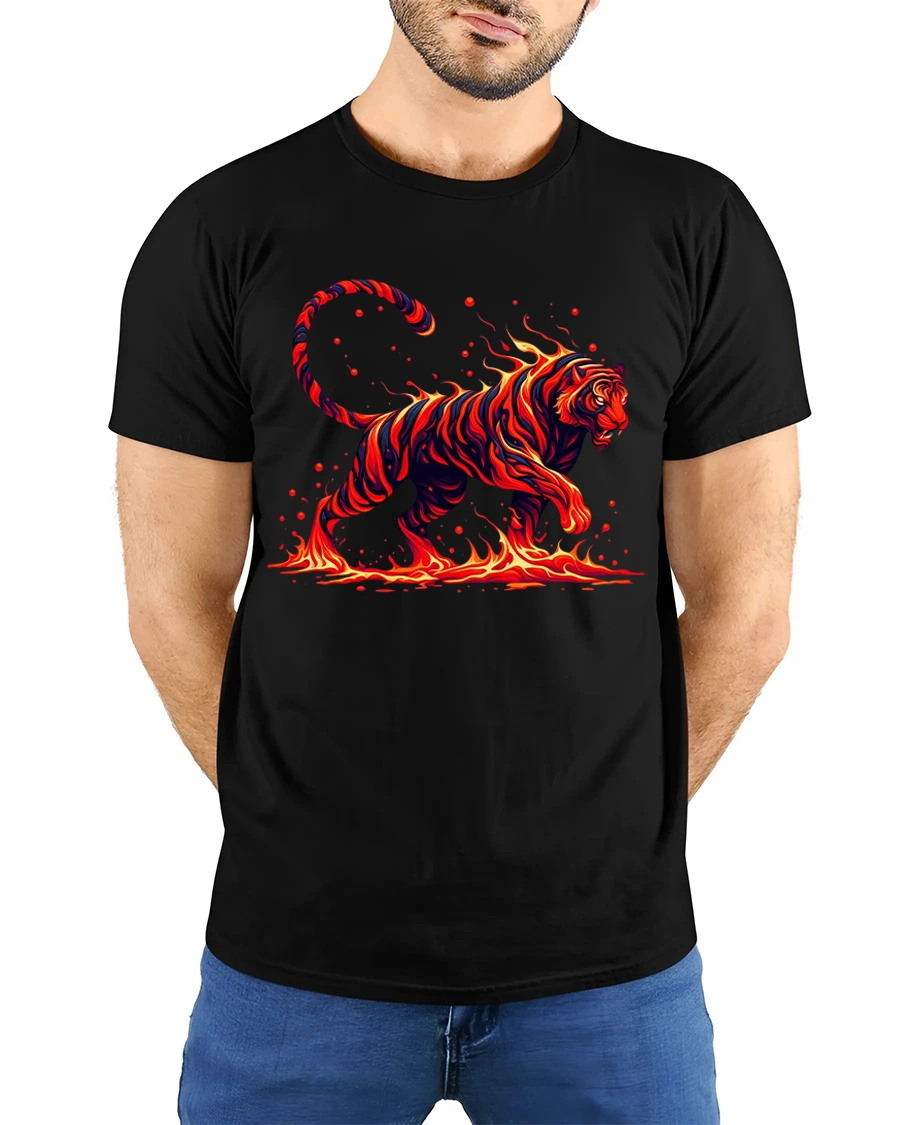 Blazing Fire Tiger Graphic T Shirt captures raw power with a striking tiger made entirely of flames and motion.