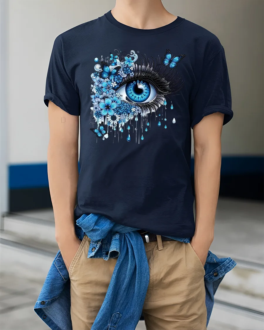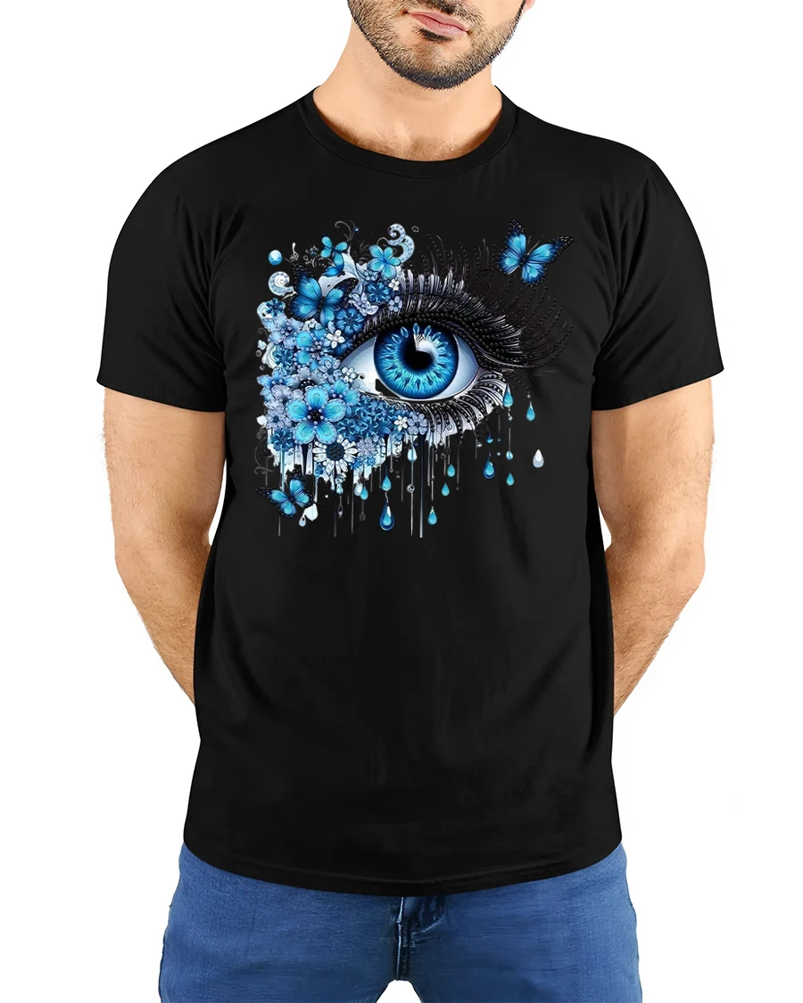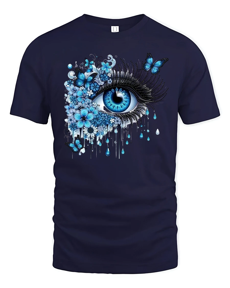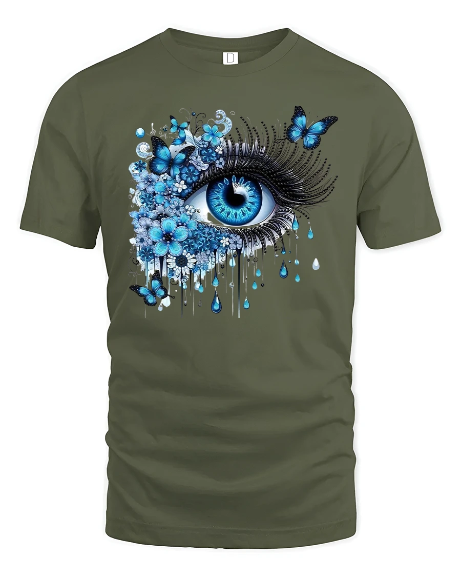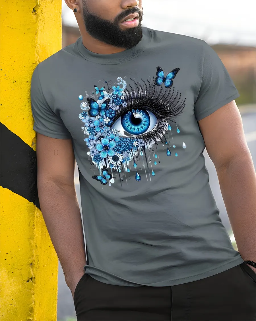 Featuring a vivid blue eye surrounded by blooming flowers and graceful butterflies, this shirt brings a surreal, artistic vibe that stands out anywhere you go.