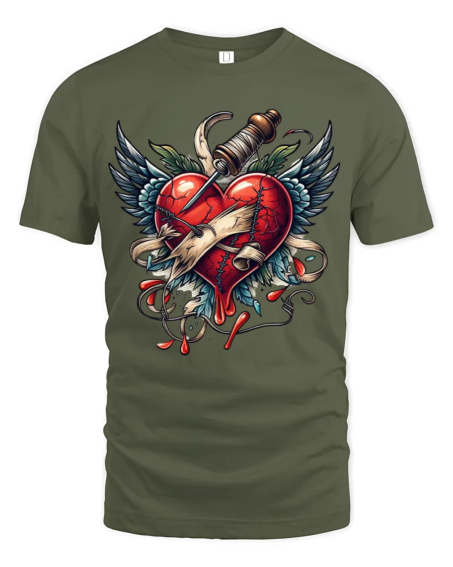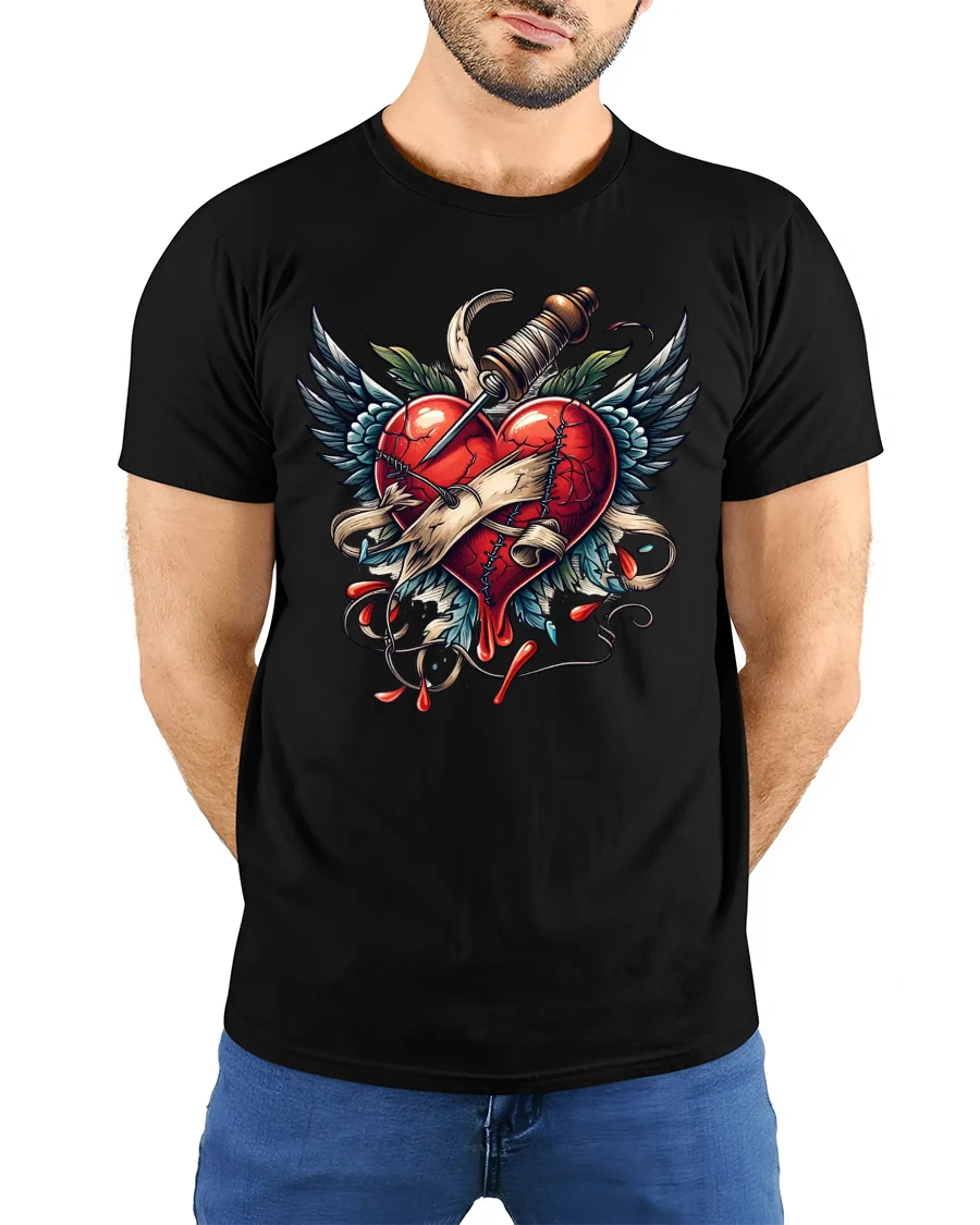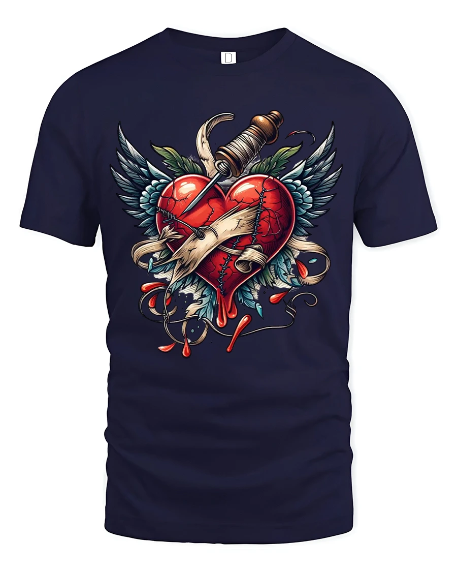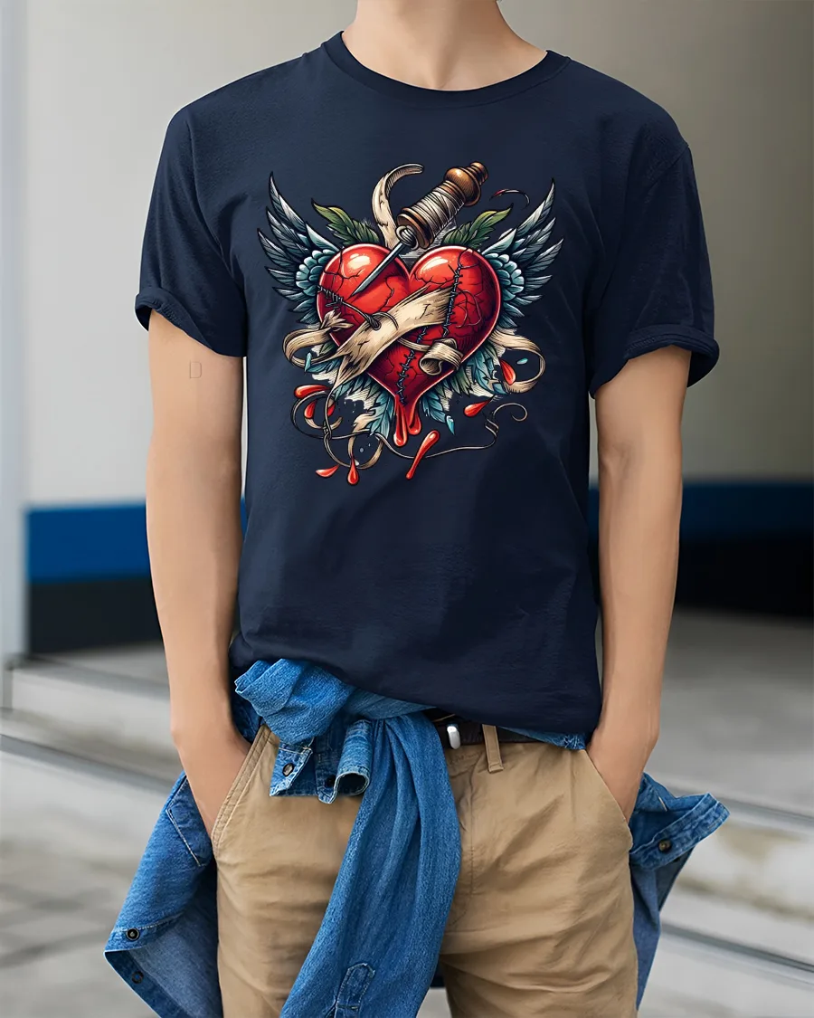 The Broken Heart With Dagger Tattoo Style Graphic Tshirt Art delivers a powerful emotional statement through striking visual design.