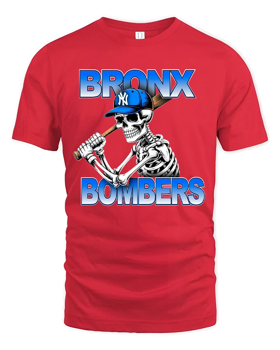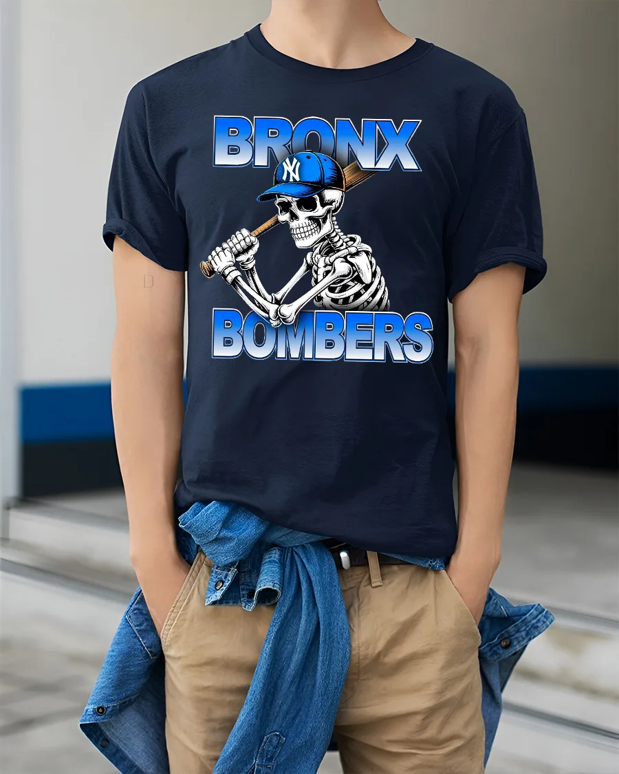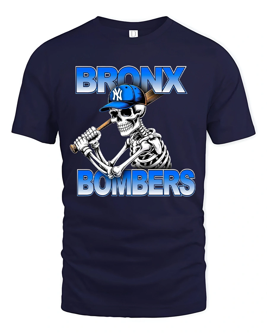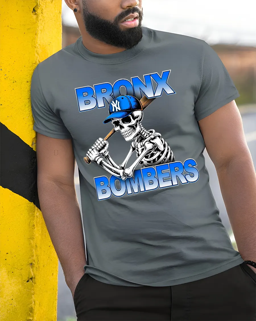 The Bronx Bombers Skull Baseball Street Legend Graphic Tee captures the raw energy of New York baseball culture with bold street style attitude.