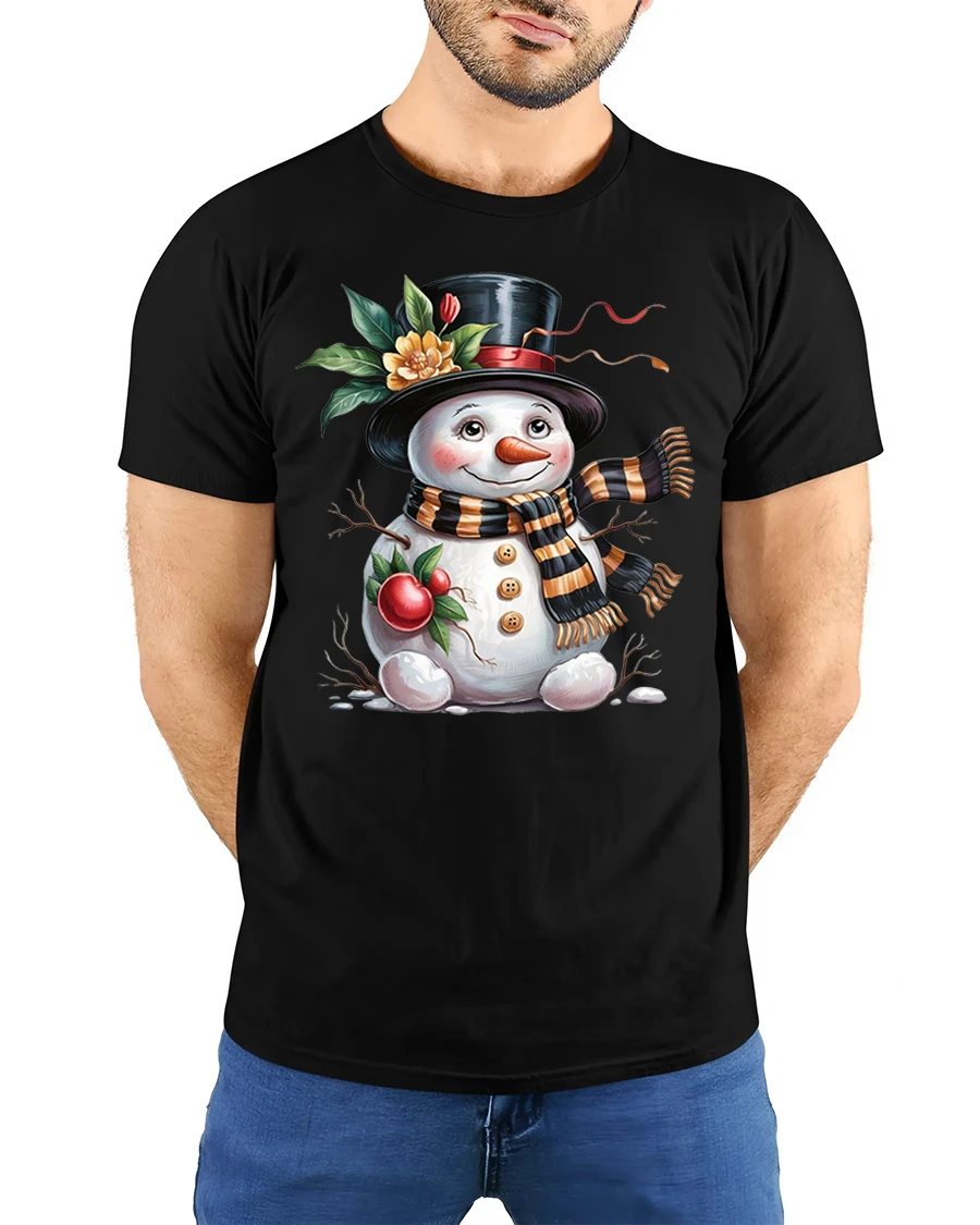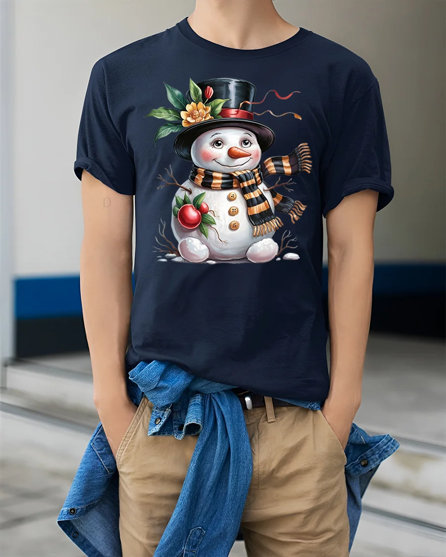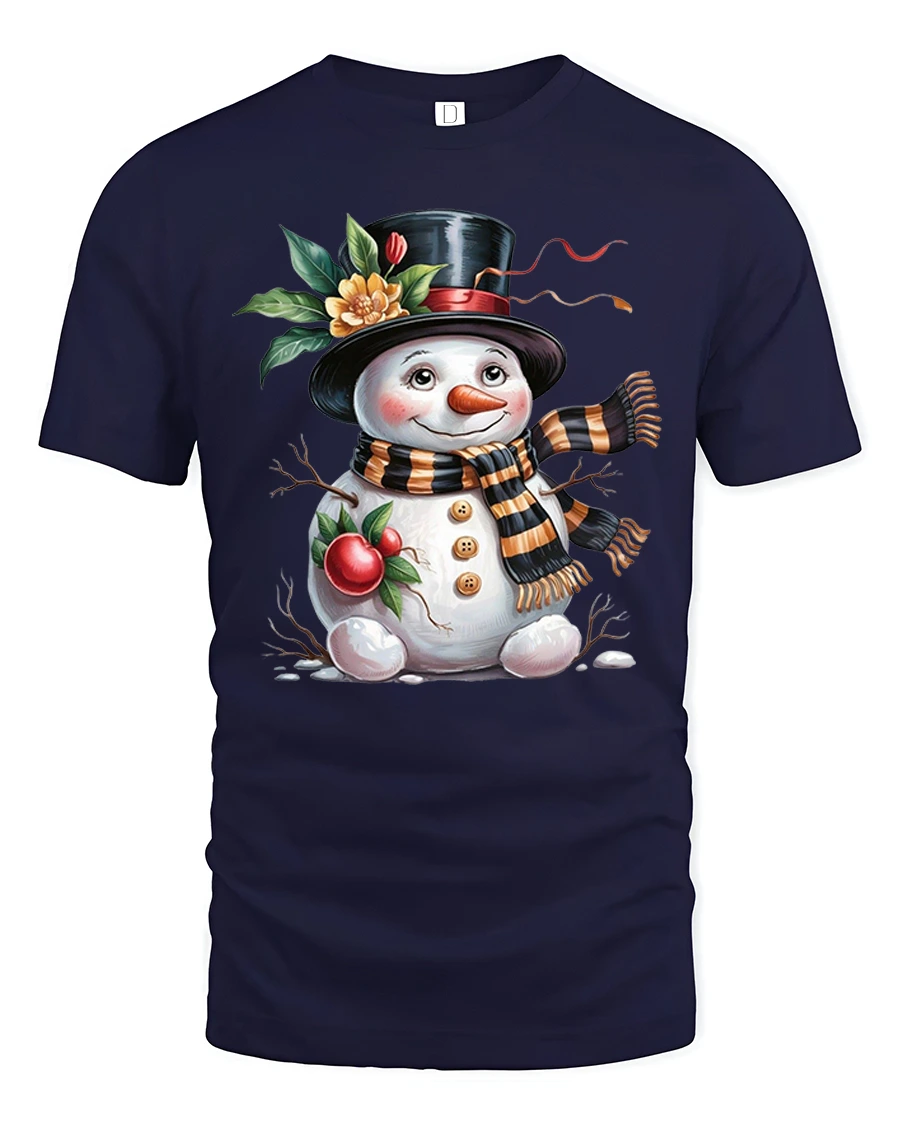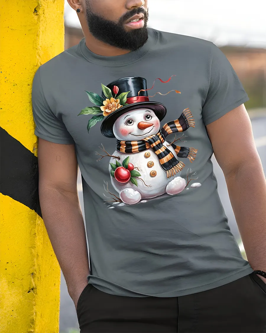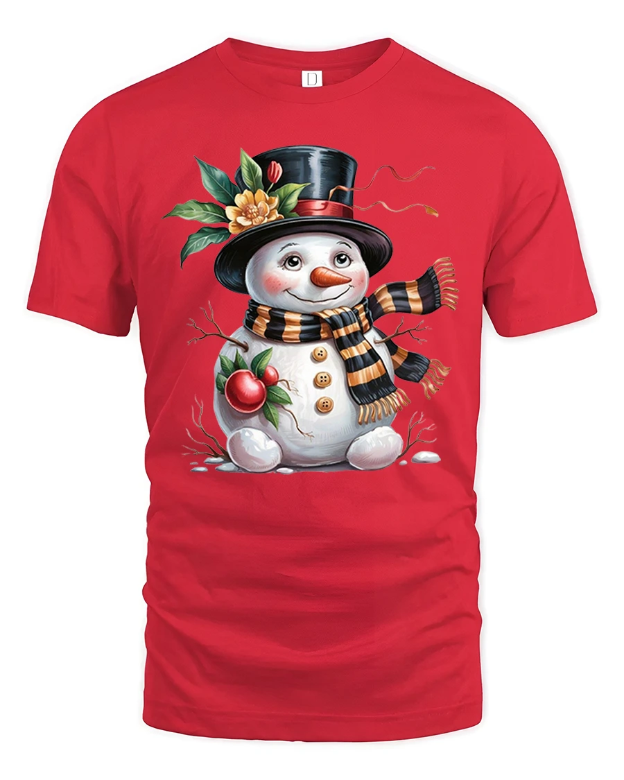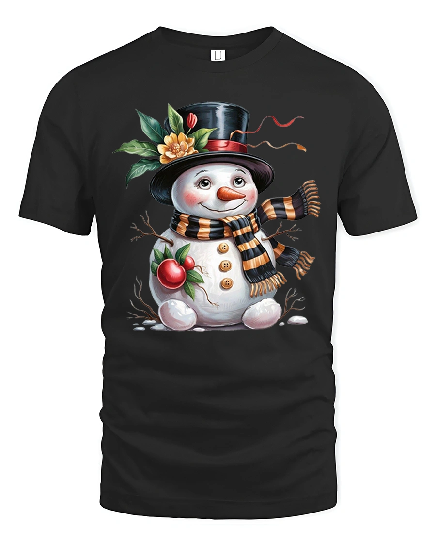 Charming Festive Snowman Holiday Tee with Cute Winter Artwork brings a heartwarming touch of seasonal cheer to your wardrobe. Featuring an adorable snowman with rosy cheeks, a classic top hat, a warm striped scarf and delightful festive elements, this tee captures the joyful spirit of winter in a beautifully illustrated design.