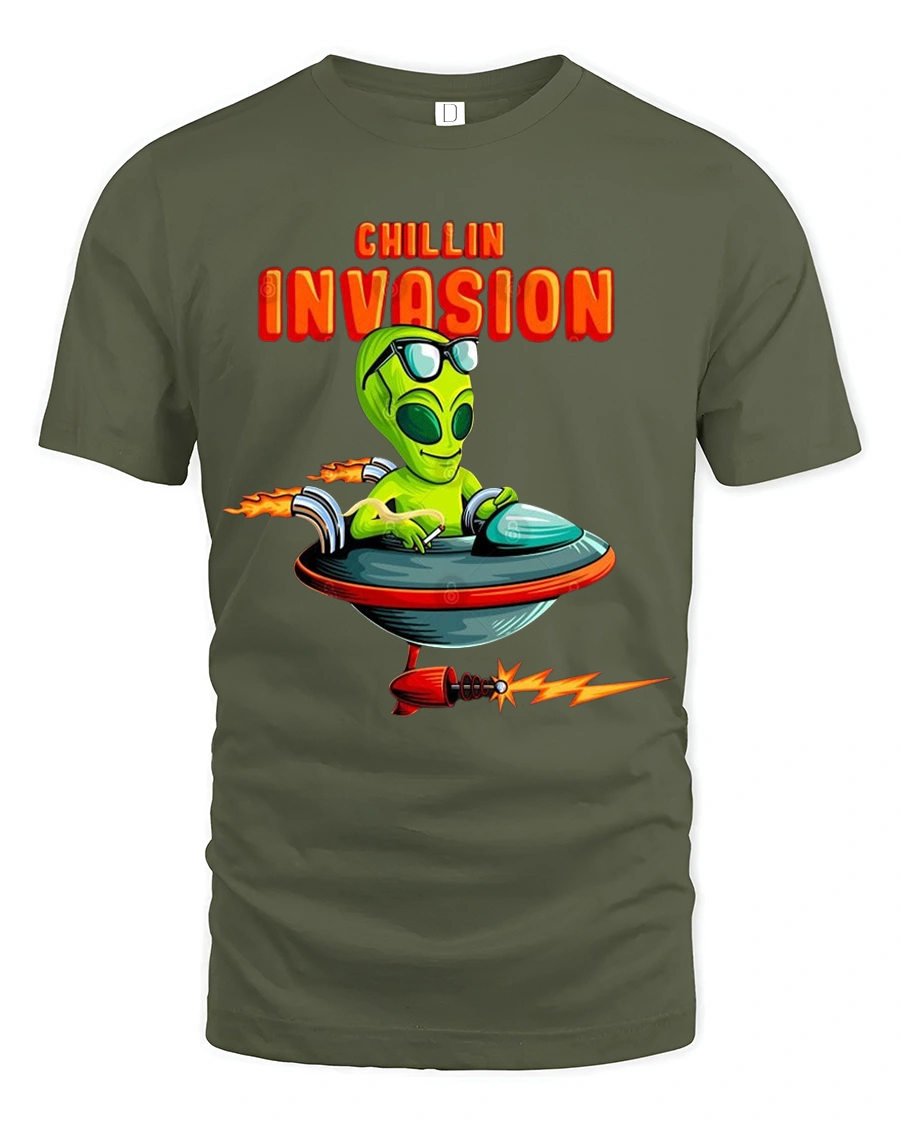 Chillin Invasion Alien T Shirt is perfect for fans of sci fi humor retro space art and playful cartoons.