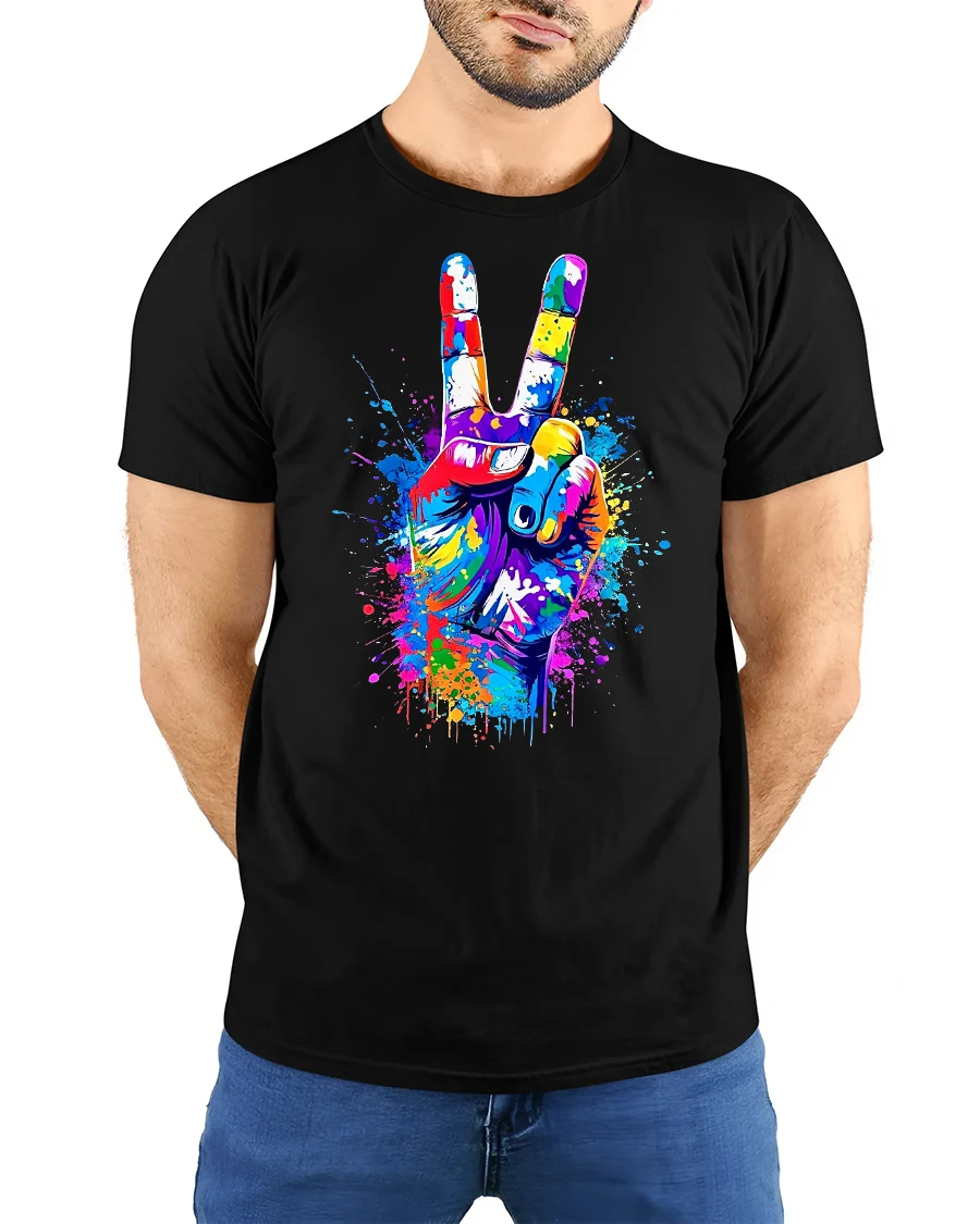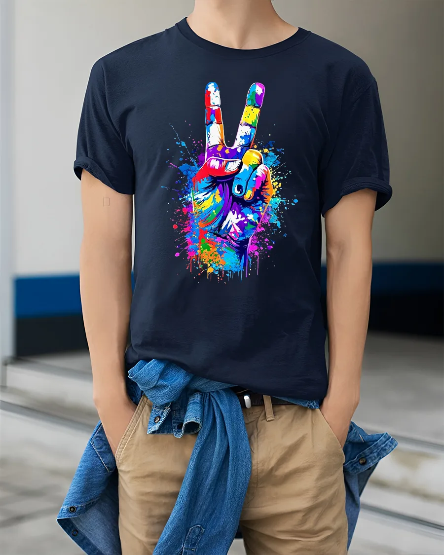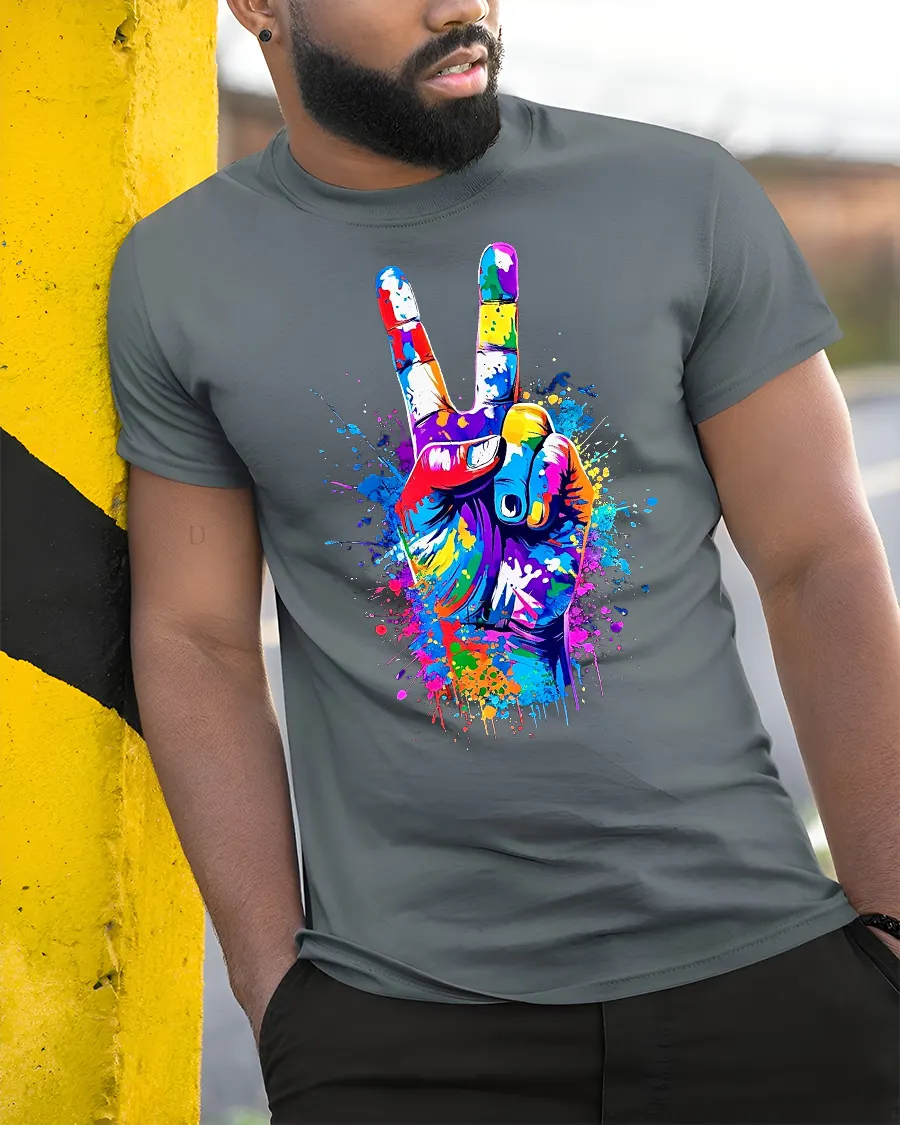 Color Splash Peace Hand Art Vibrant Graphic Unisex Tee brings bold creativity and strong positive energy into your everyday style. Featuring a colorful peace sign hand illustrated with splashes of bright paint, this tee instantly stands out with its expressive and artistic design. The vivid colors and dynamic splatter effect make it a perfect eye-catcher for anyone who loves modern art, streetwear, and meaningful symbols.