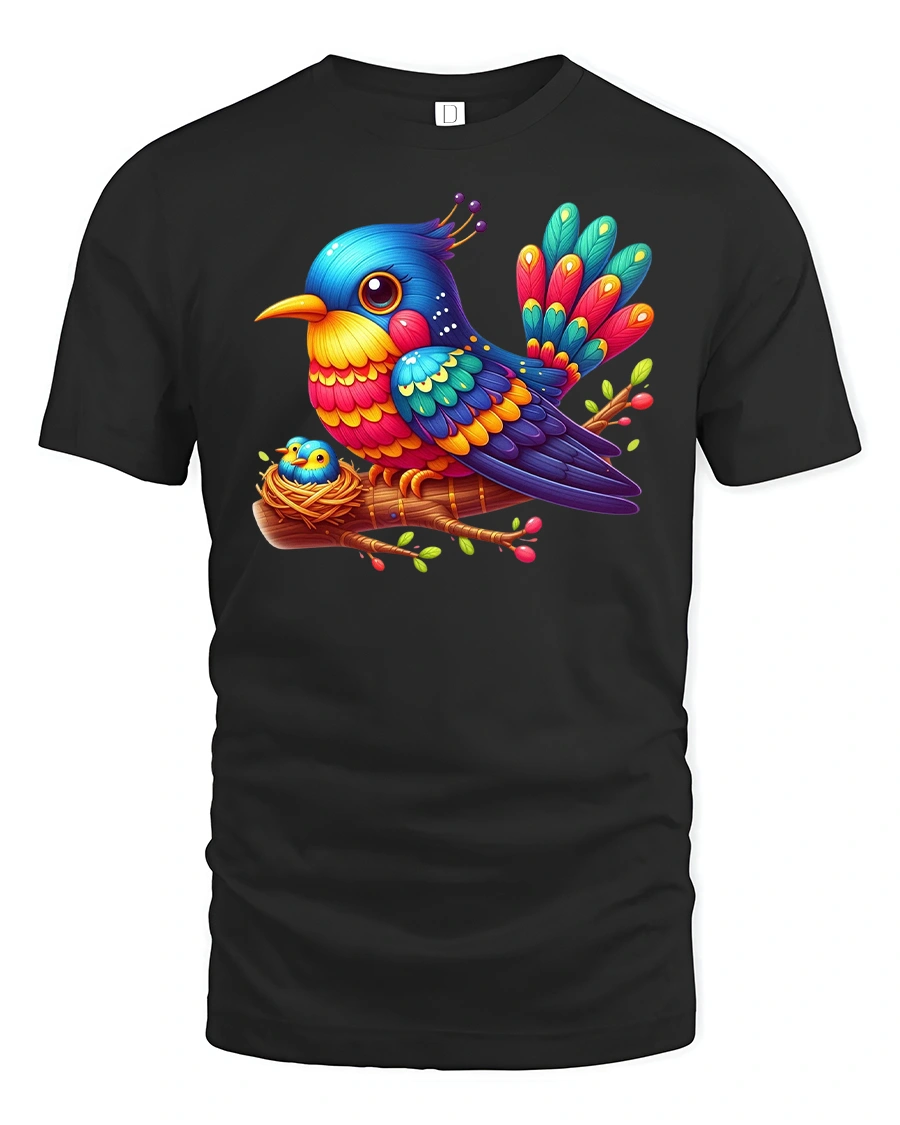 Colorful Bird T-Shirt Cute Mom and Baby Bird Graphic brings warmth, love, and joy to your wardrobe.