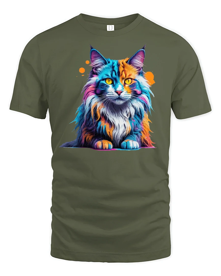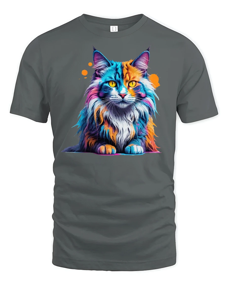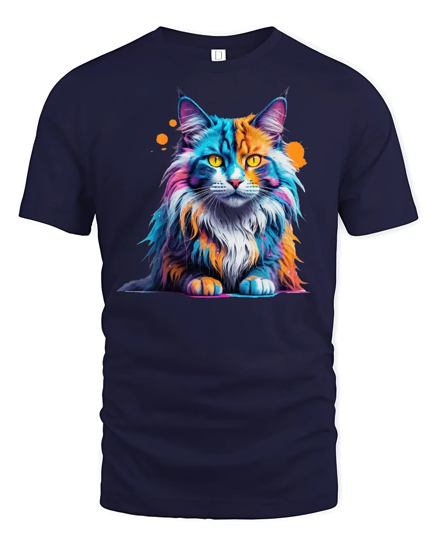 Colorful Cat Art Bright Graphic Painting Style T-Shirt is a bold and eye-catching design perfect for cat lovers who enjoy artistic and vibrant fashion. Featuring a beautifully detailed cat portrait brought to life with splashes of orange, blue, pink, and yellow, this tee captures the elegance of a cat with a creative and modern art twist. Its colorful design makes it a standout piece that adds energy and personality to any outfit.