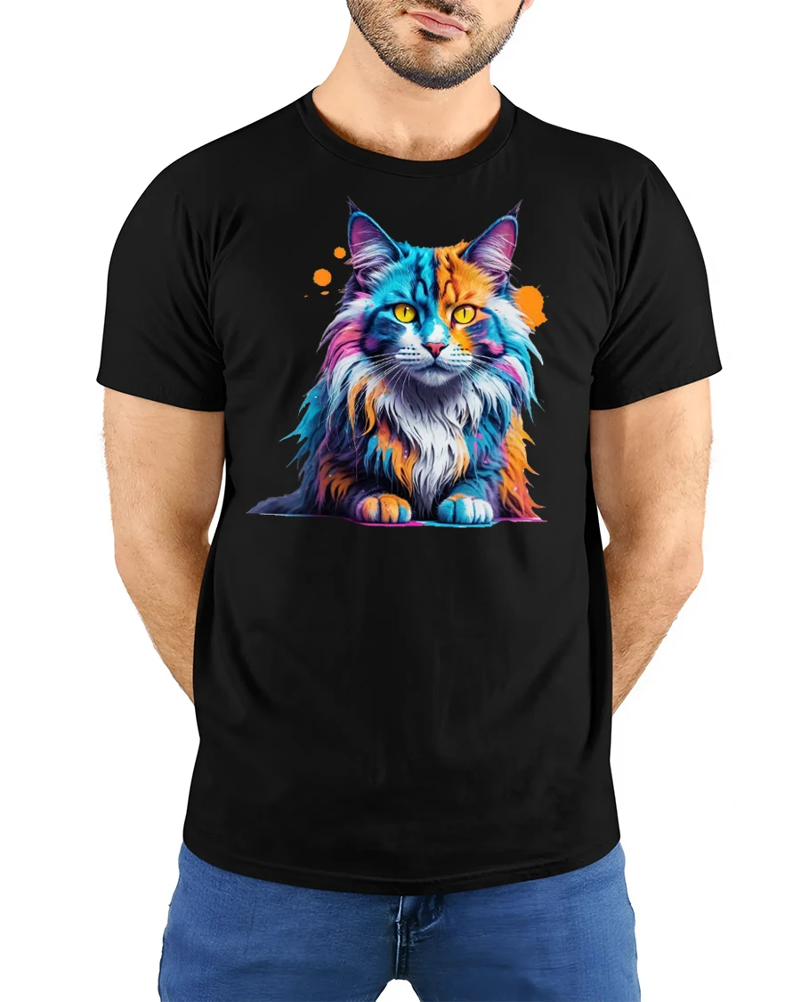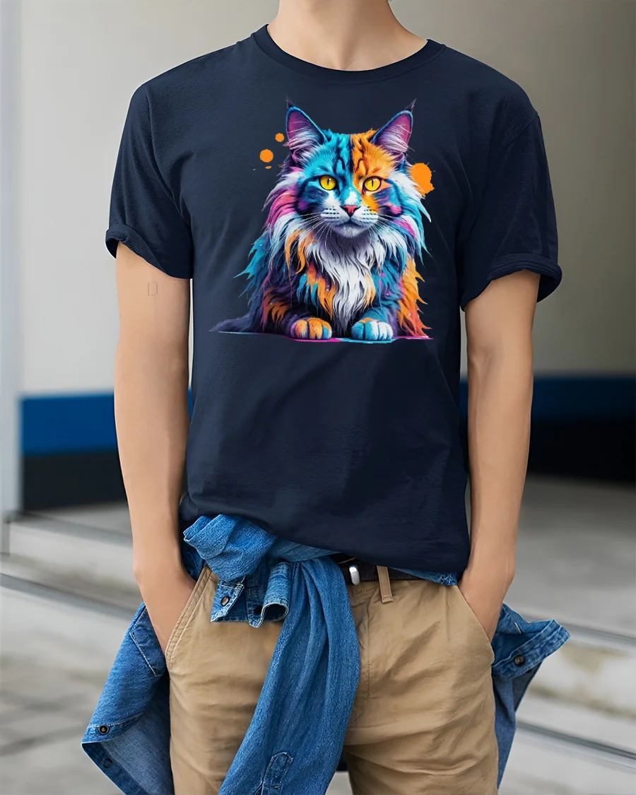 Made with soft and breathable fabric, this colorful cat t-shirt is designed for everyday comfort while maintaining the brightness and sharpness of its print wash after wash. The unique artwork makes it a great choice for casual outings, creative gatherings, or simply expressing your love for cats in a stylish way.