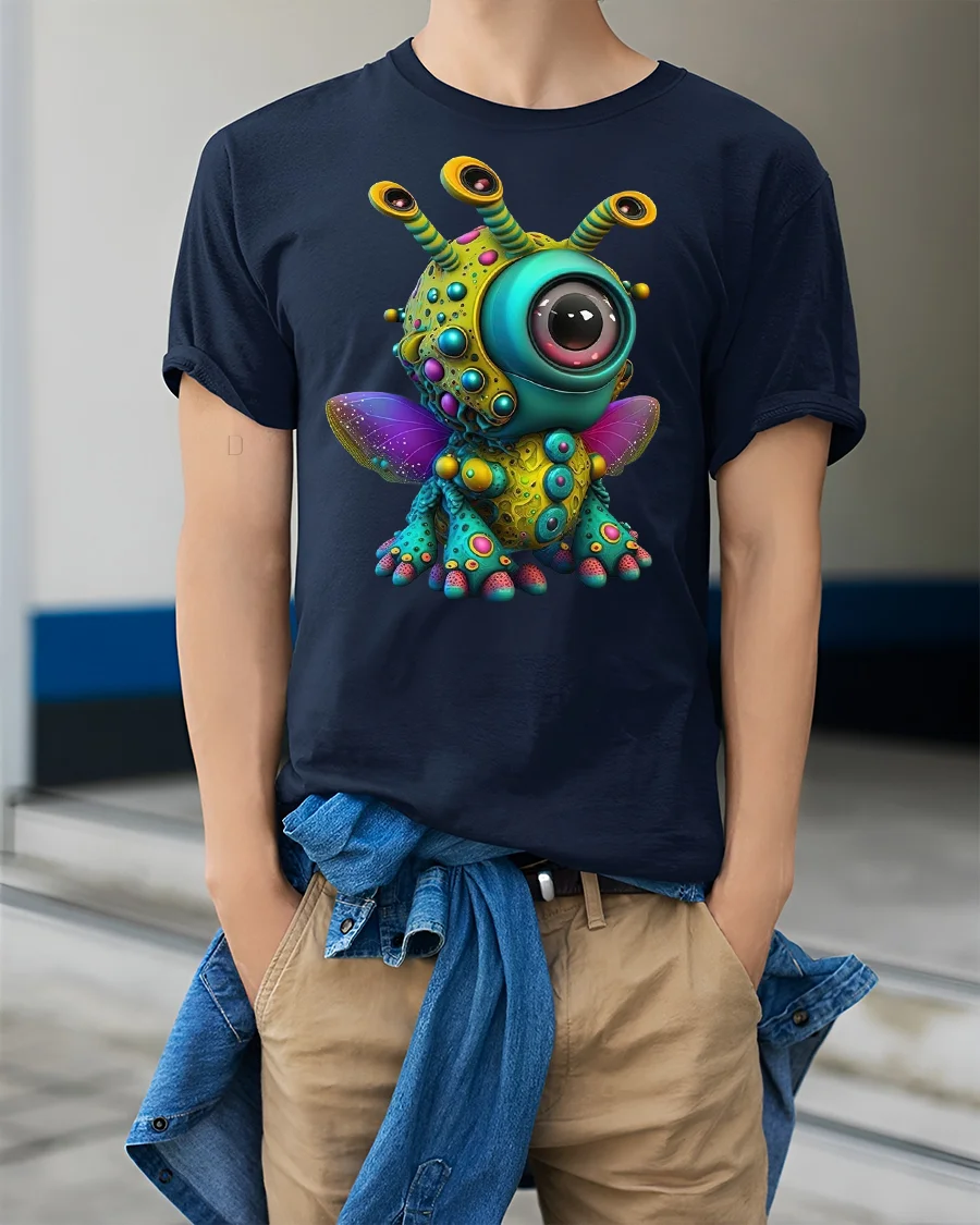 Colorful Cute Alien Monster Graphic Tee for Fun Sci-Fi Style brings a playful intergalactic vibe to your wardrobe. Featuring an adorable one-eyed alien creature filled with bright patterns, lively textures, and rainbow colors, this tee is perfect for anyone who loves quirky, imaginative designs. With its charming bug-like details, glowing eye, and colorful wings, the artwork adds a magical and futuristic feel to your casual outfits.