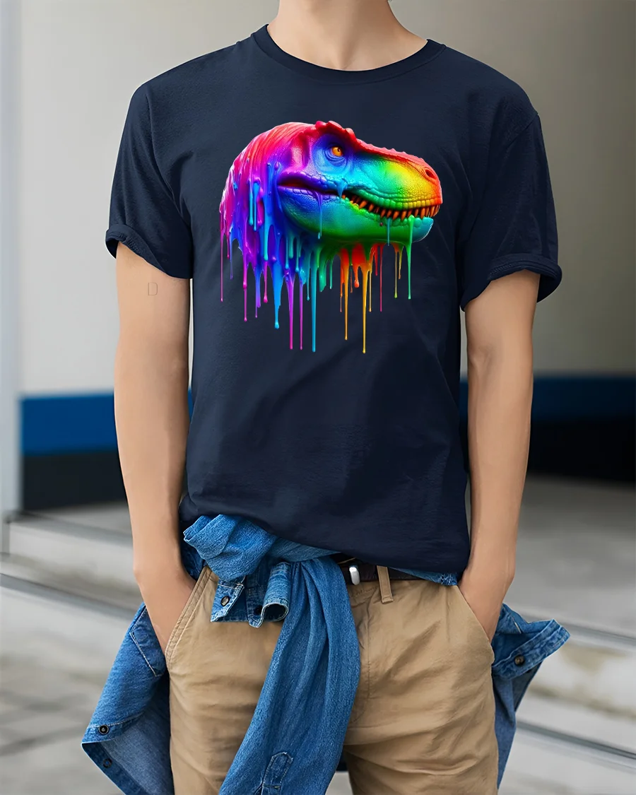 Ideal for dinosaur fans, streetwear enthusiasts, and anyone who enjoys colorful, one-of-a-kind designs, the Colorful Dinosaur Head Dripping Paint Graphic T-Shirt pairs easily with jeans, joggers, or shorts. Step into the spotlight and let your outfit roar with confidence and personality.