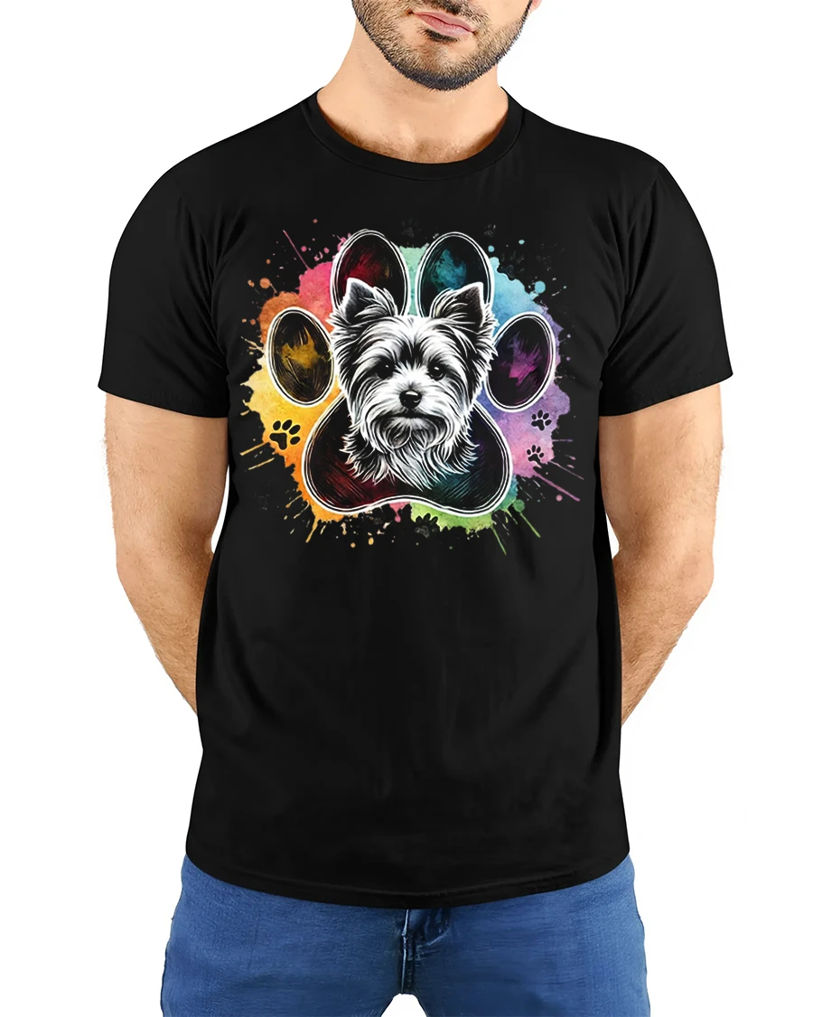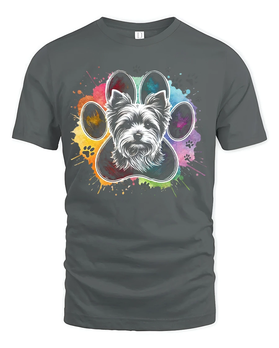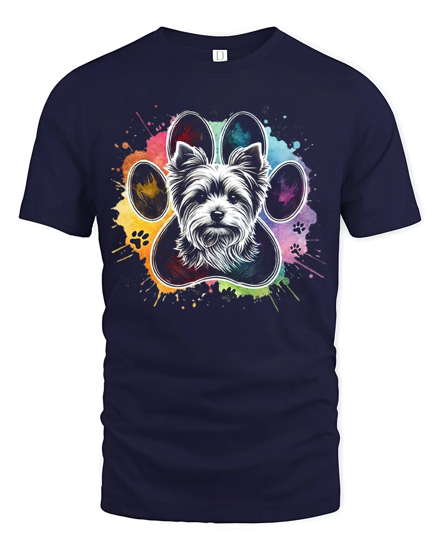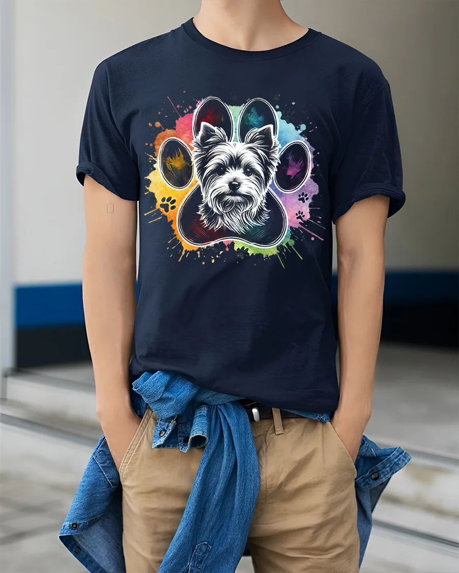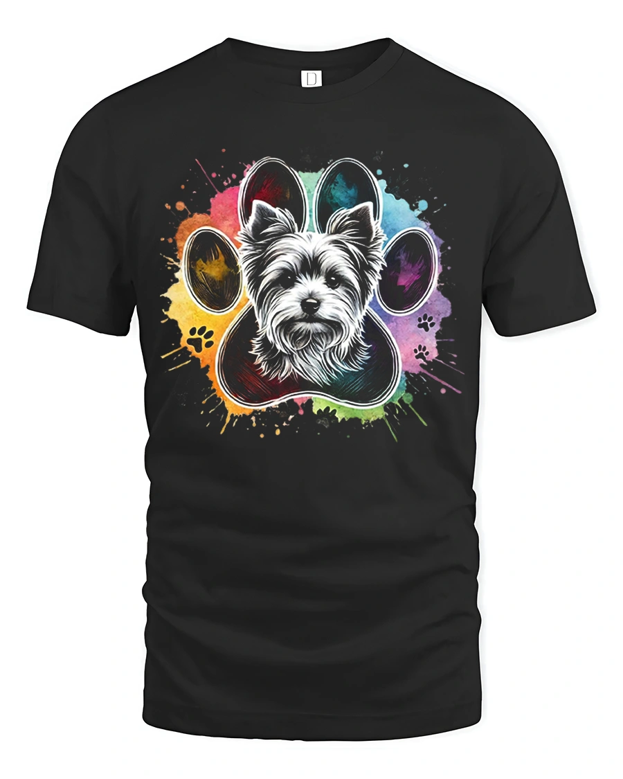 Colorful Dog Paw Portrait Tee celebrates the joy of pets through a vibrant artistic paw design featuring a lovable dog face.