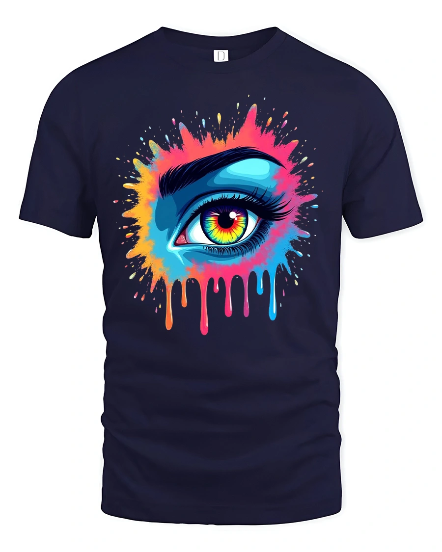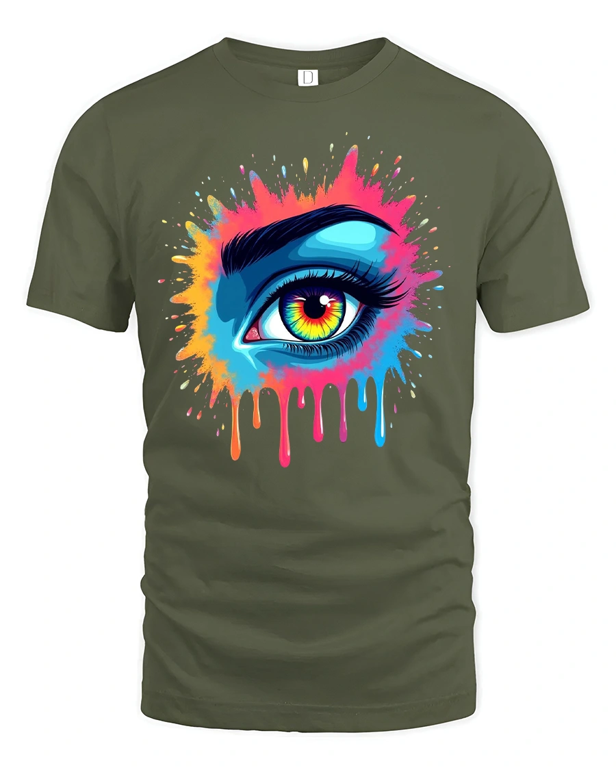 This Colorful Dripping Eye Art Tee Vibrant Splash Surreal Graphic brings bold creativity and electrifying color to your wardrobe. Featuring a stunning rainbow eye surrounded by vibrant paint splashes and dripping neon accents, this tee captures a unique blend of surreal art, expressive emotion, and modern design. Its bright palette and striking composition make it perfect for art lovers, festival-goers, or anyone who enjoys wearing statement-making graphics.