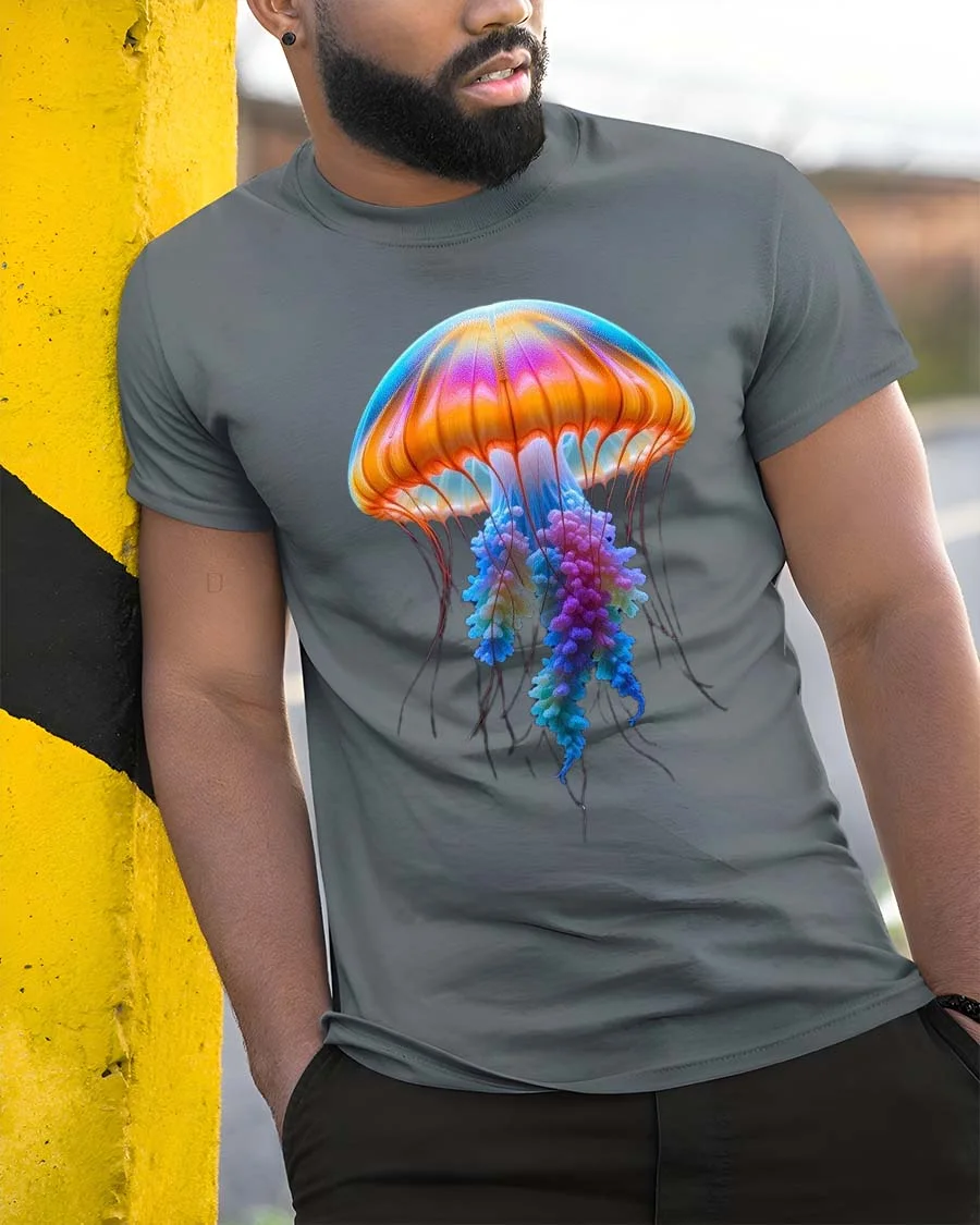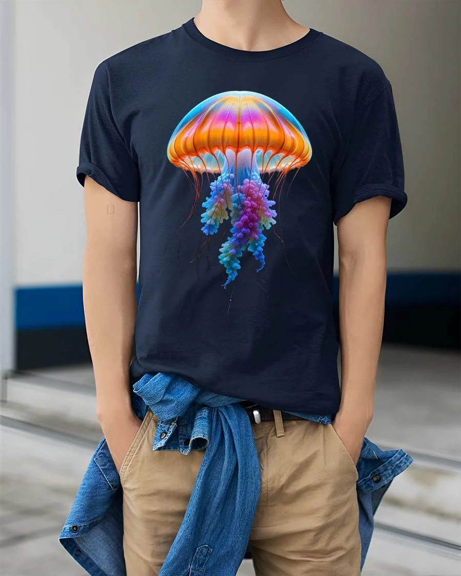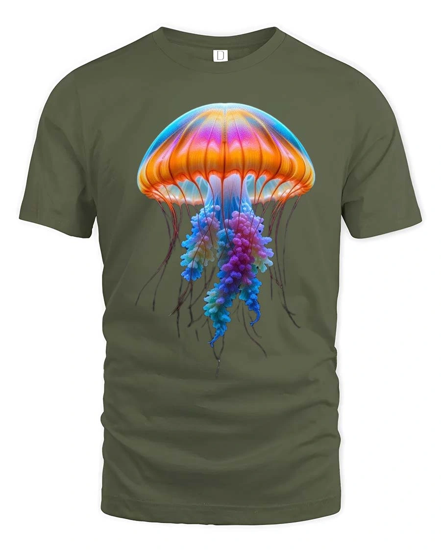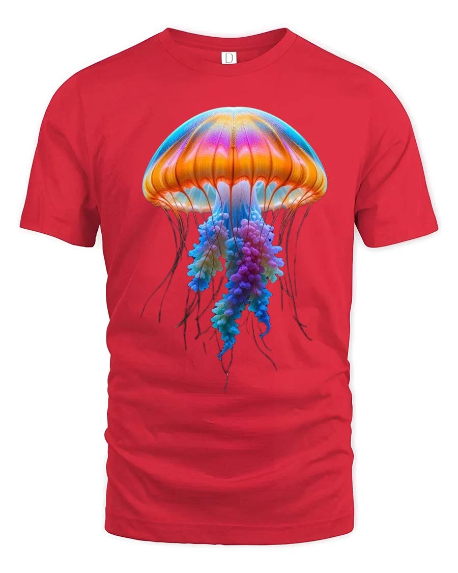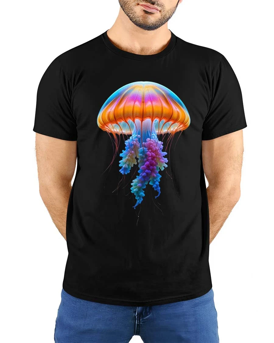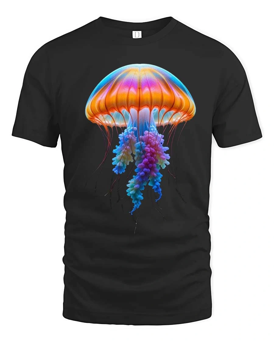 Colorful Jellyfish Tshirt Vibrant Ocean Glow Graphic Tee features a stunning underwater inspired design that captures the beauty of marine life.