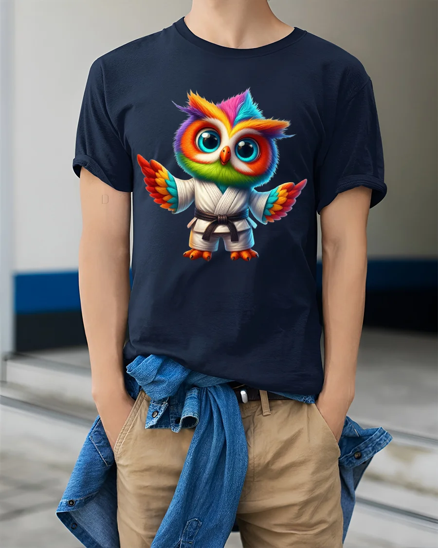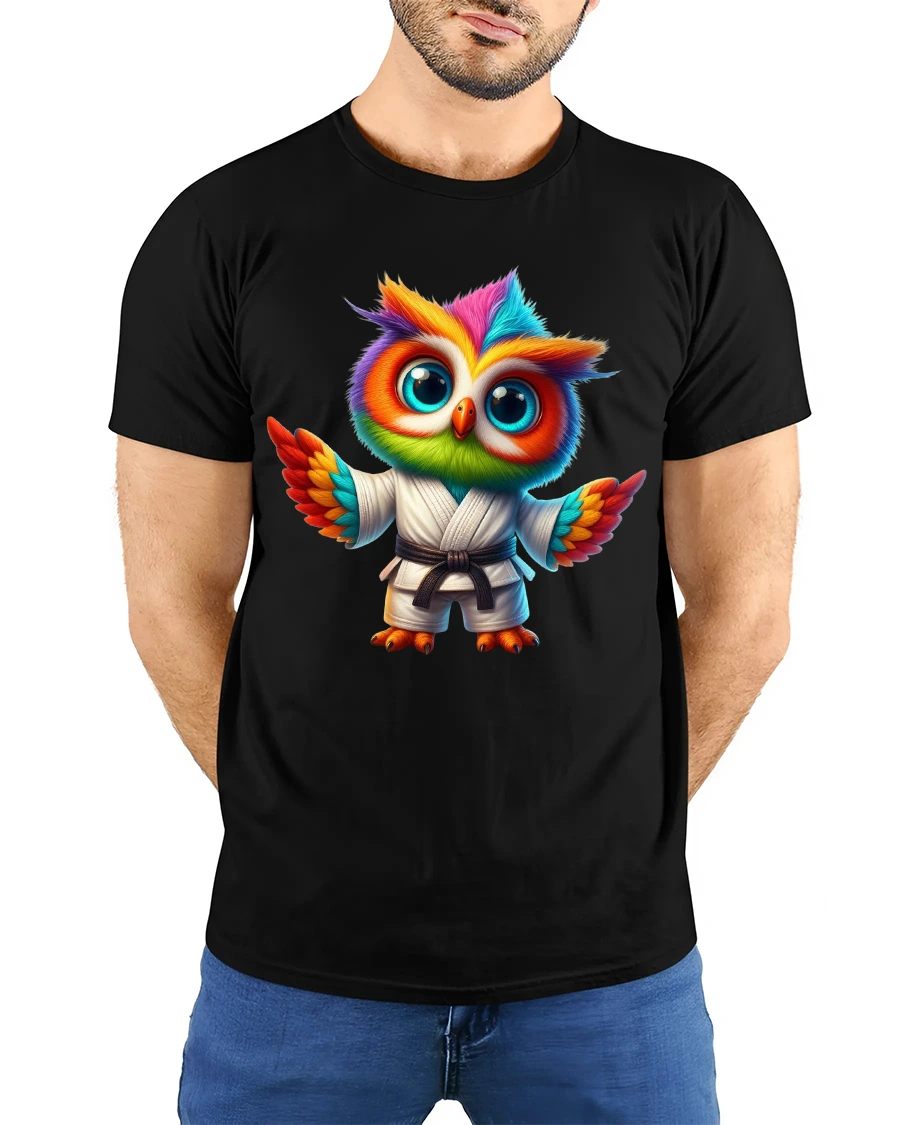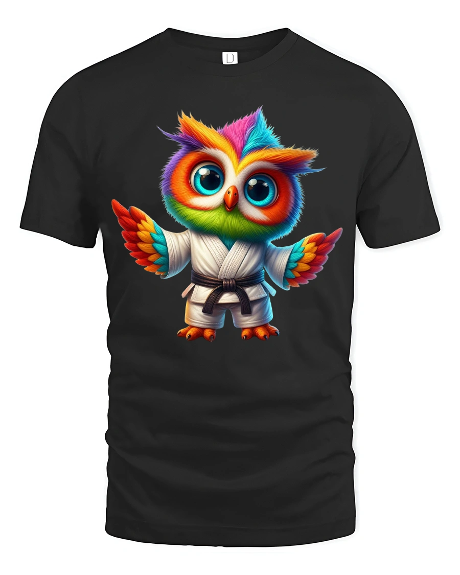 The Colorful Karate Owl Cartoon Martial Arts Graphic T Shirt combines strength discipline and cuteness in one unique artwork.