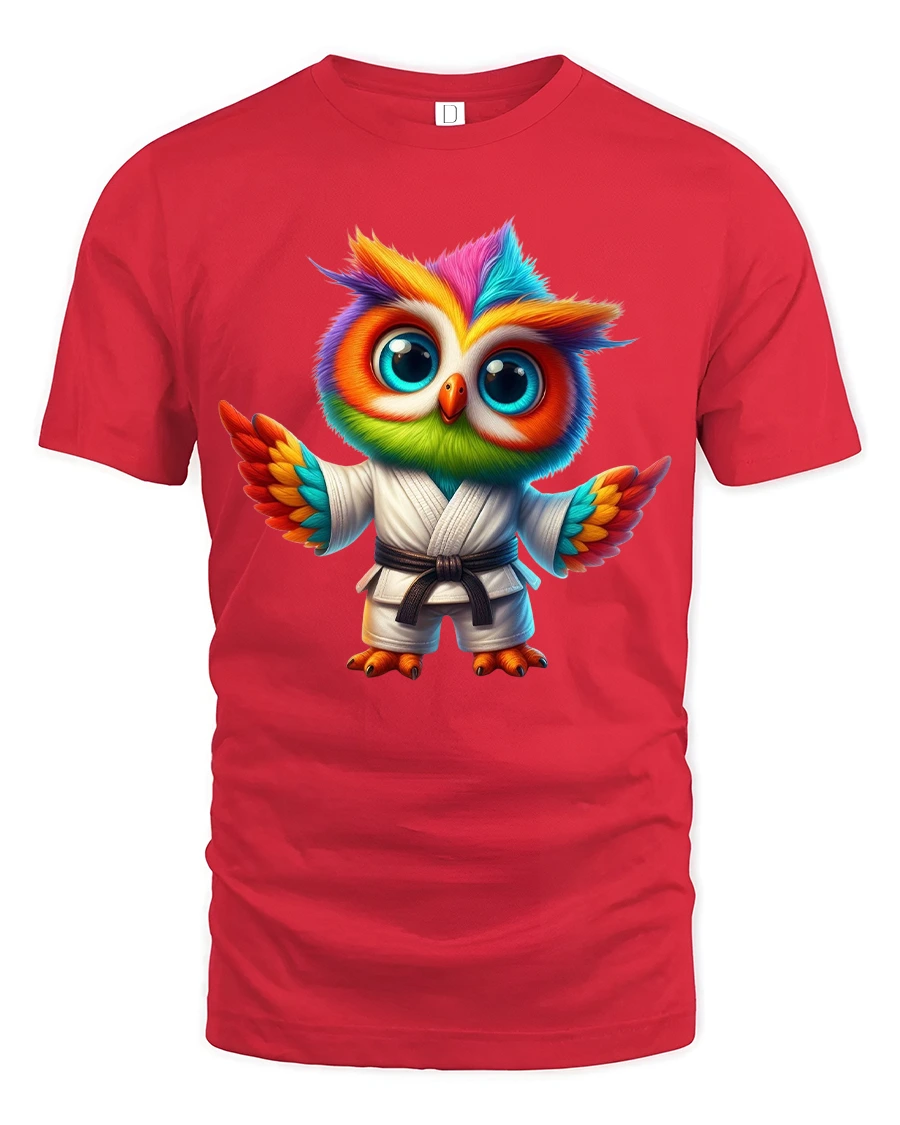 The Colorful Karate Owl Cartoon Martial Arts Graphic T Shirt brings energy creativity and charm into a bold and playful design.