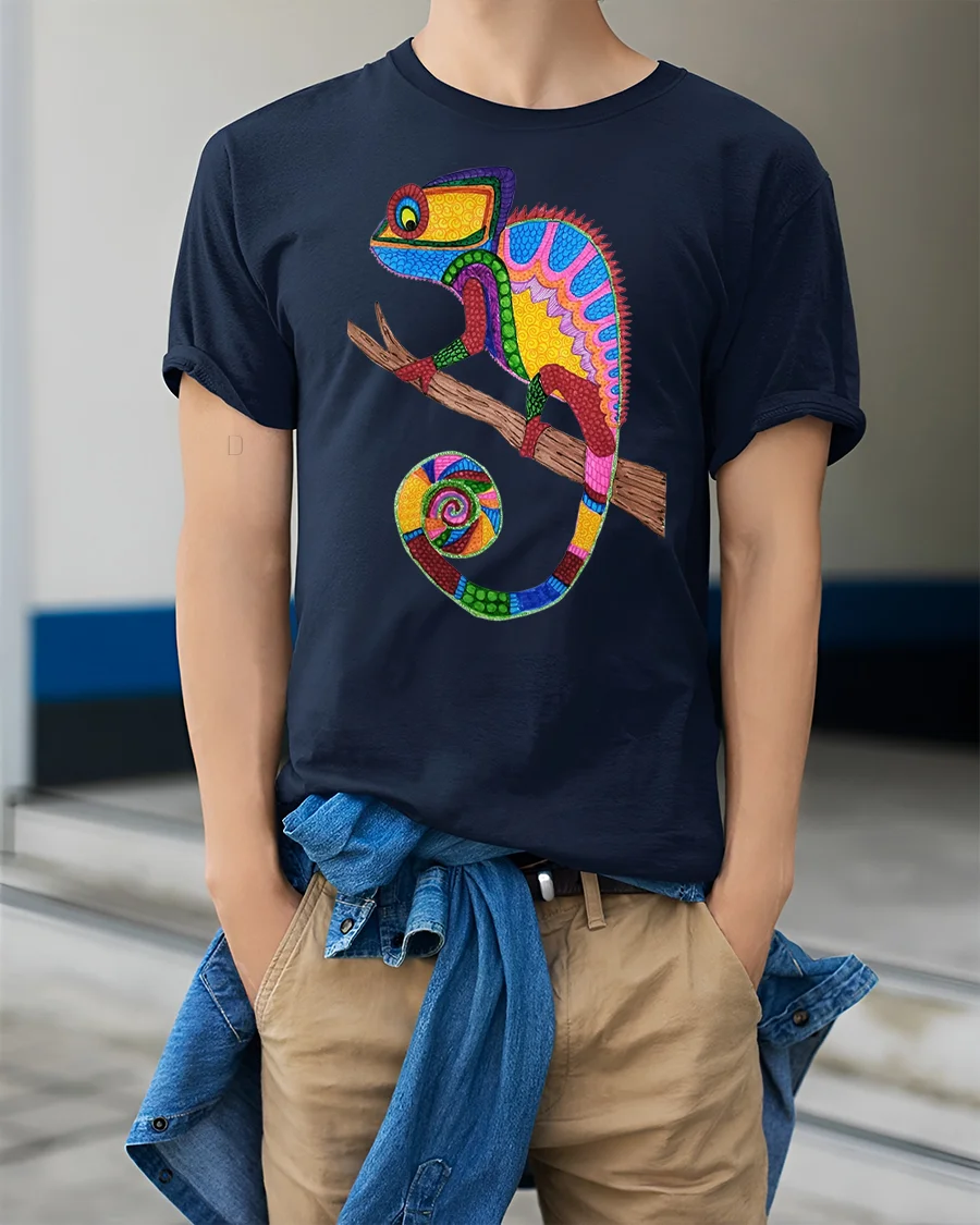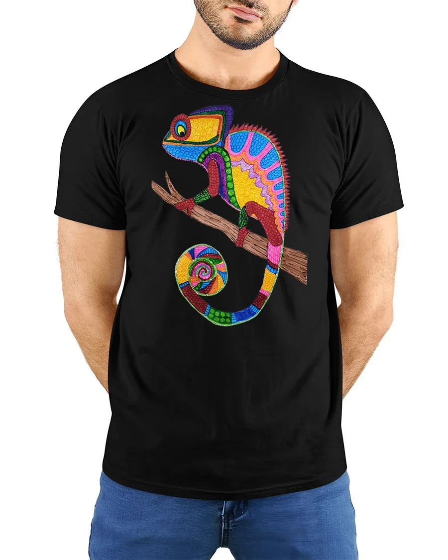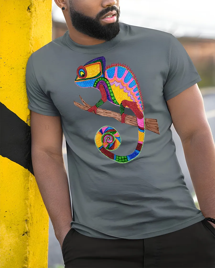 The Colorful Mosaic Chameleon Art Illustration Graphic Tee Shirt brings together color creativity and animal inspired design in one standout piece.