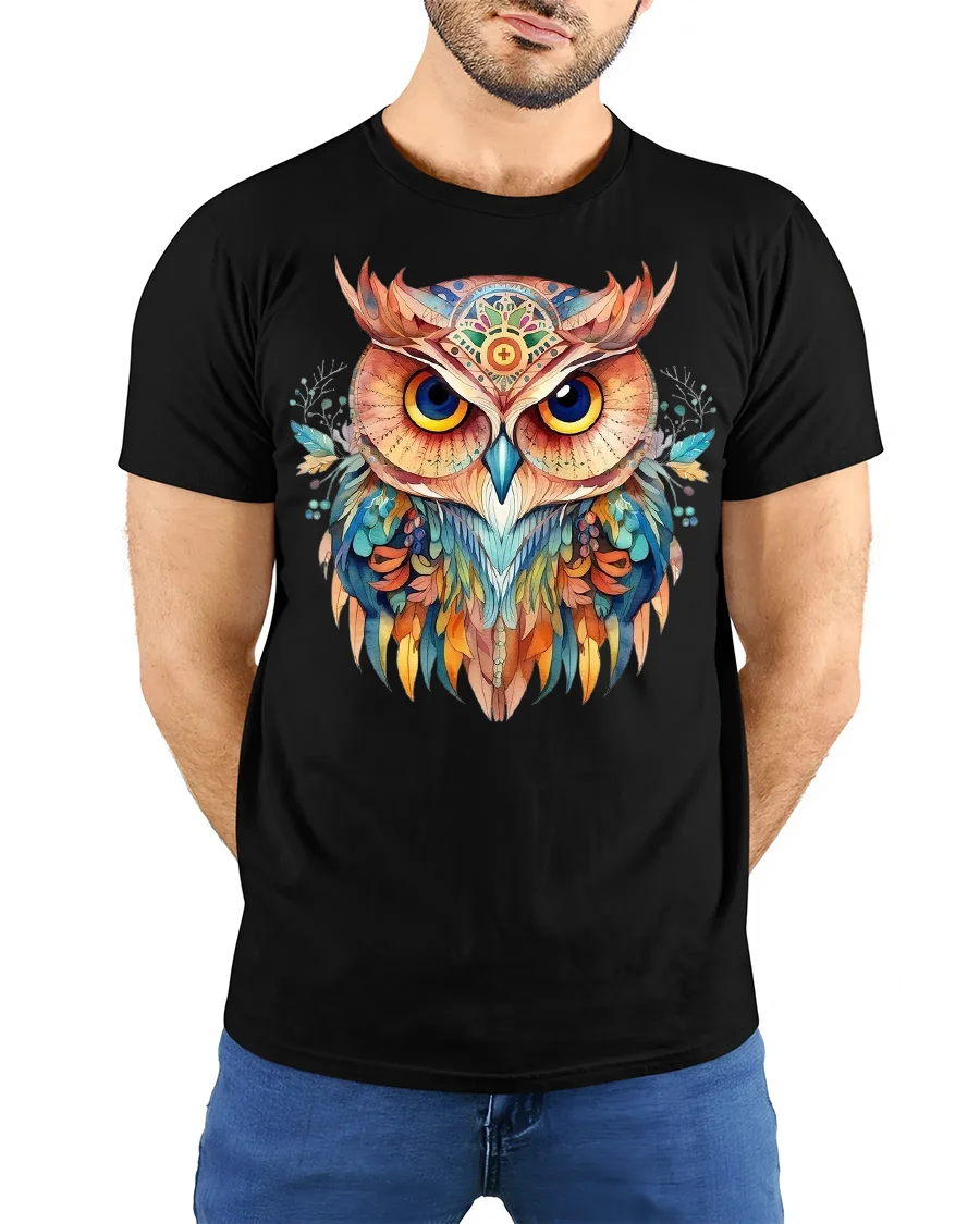 Colorful Owl Graphic T Shirt is crafted to deliver comfort while presenting eye catching visual appeal.