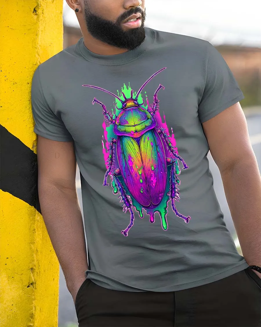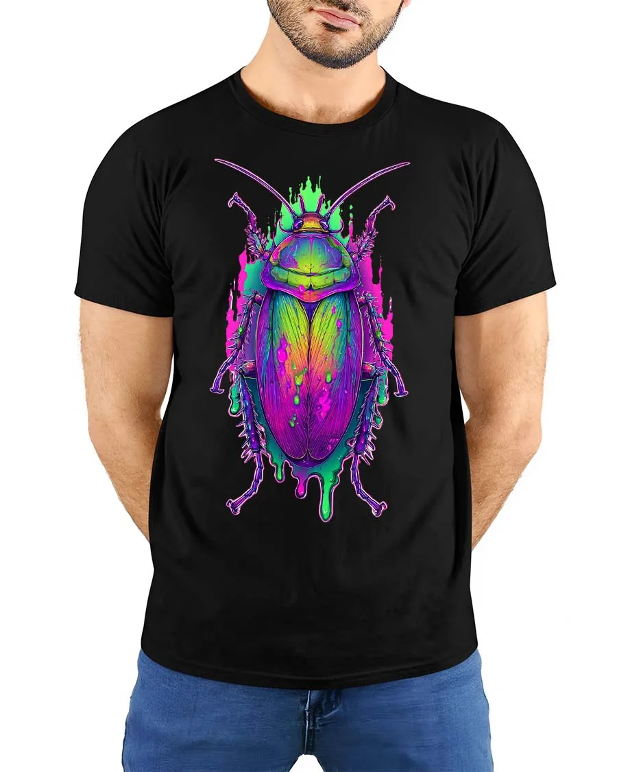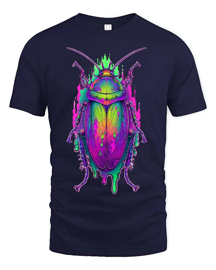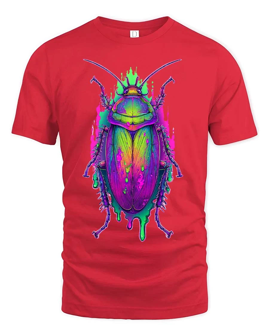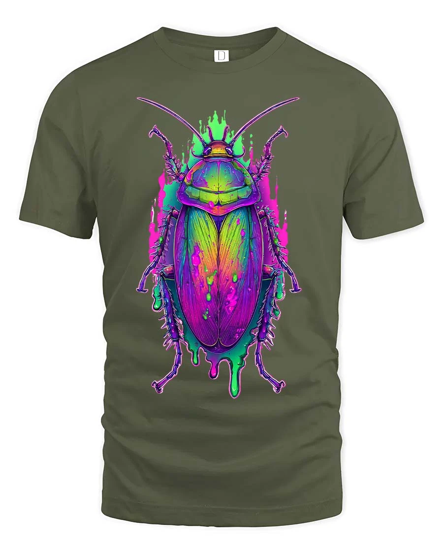Colorful Neon Beetle Artistic Paint Splash Graphic Tshirt features a bold modern illustration that blends nature inspiration with vibrant psychedelic color expression.
