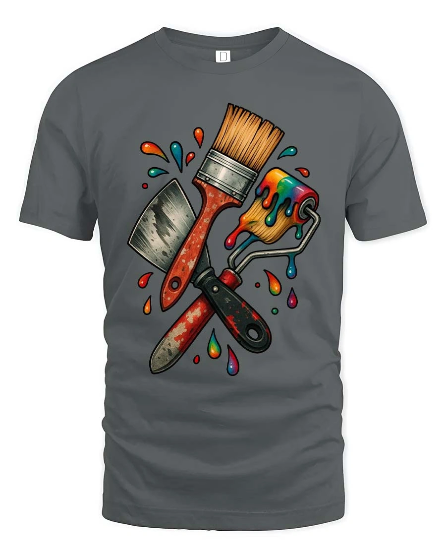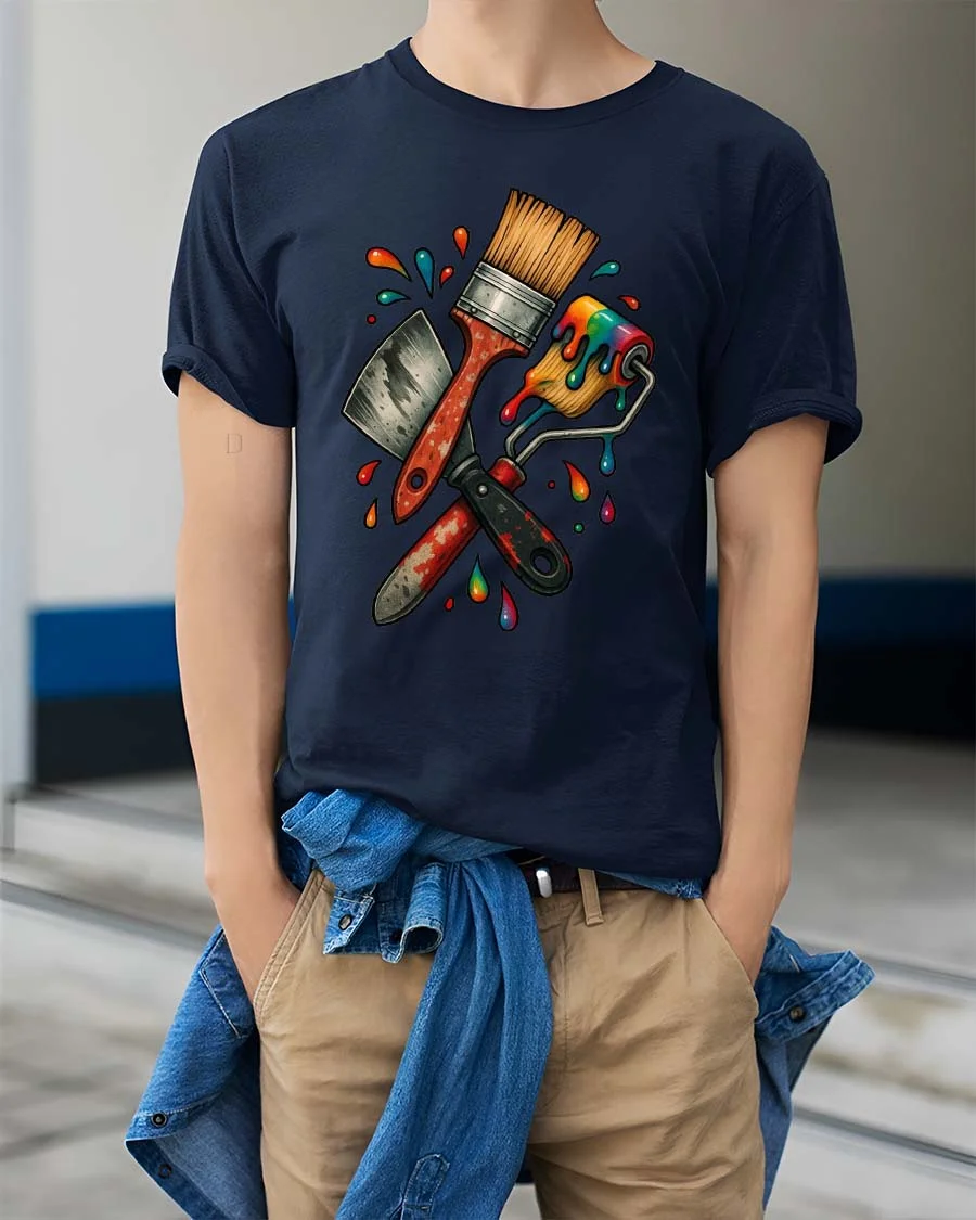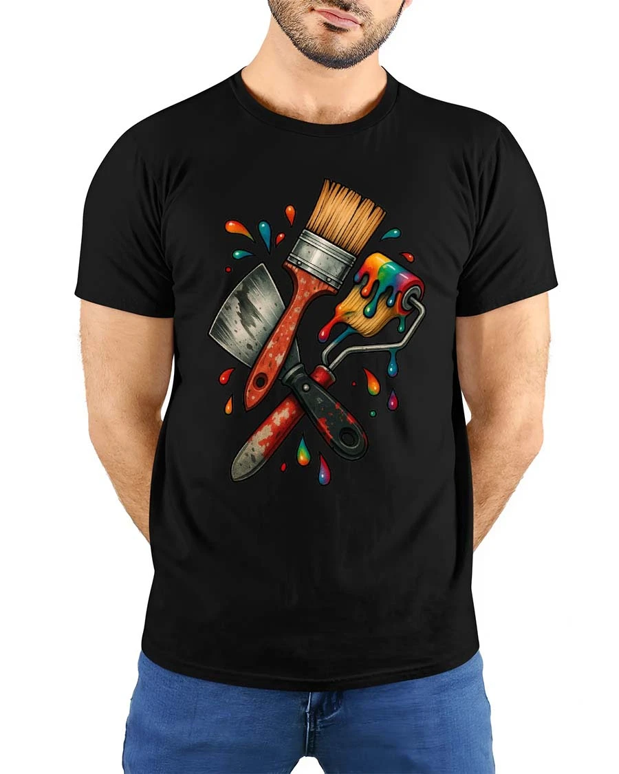 The painter tools artwork pairs easily with jeans, workwear, or everyday outfits while adding a colorful artistic touch.
