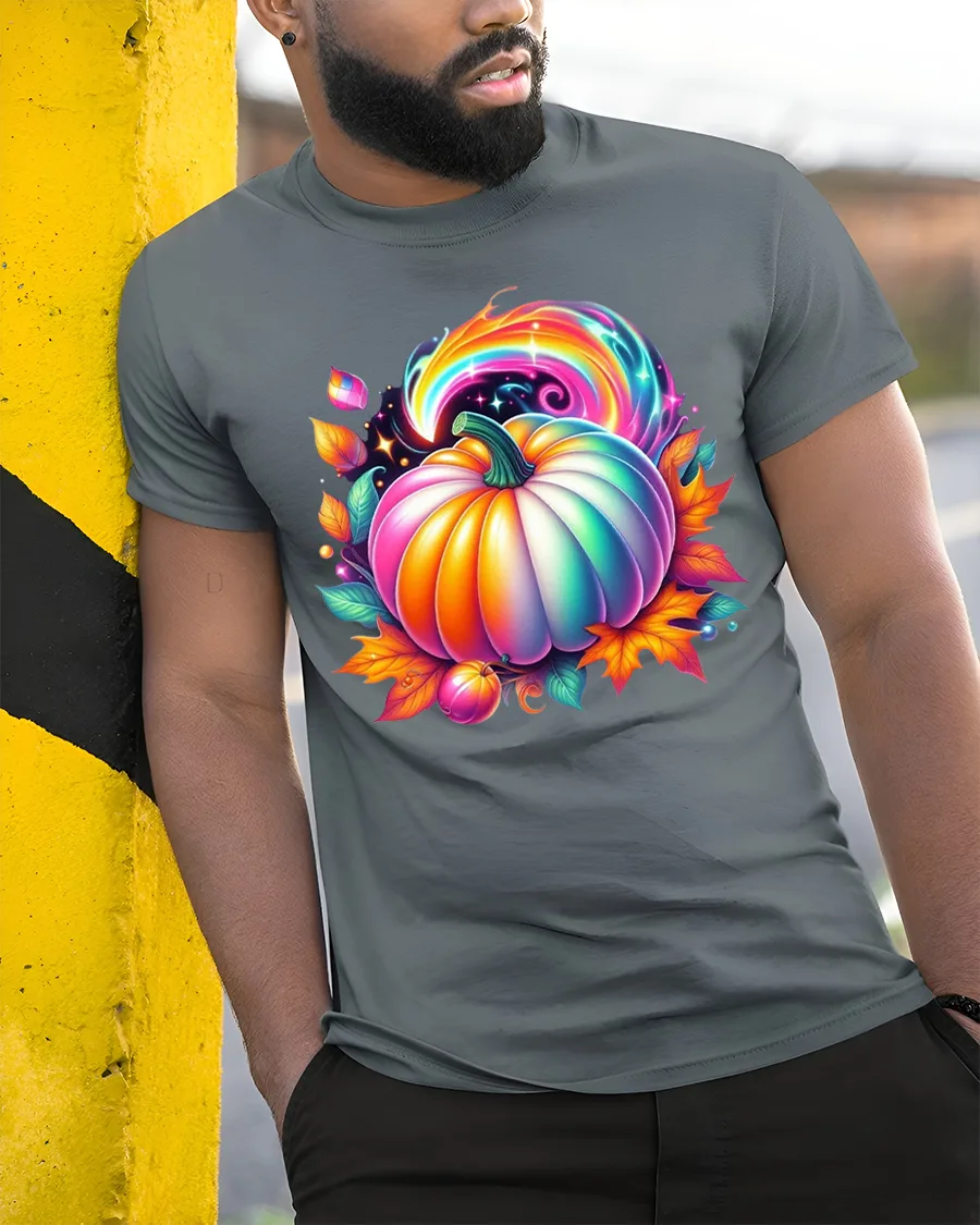 Made from soft, breathable cotton, this t-shirt offers lasting comfort while keeping your look vibrant and festive. The high-quality print captures every vivid detail, ensuring your pumpkin’s colorful charm stays bold and eye-catching even after many washes. Ideal for Halloween parties, fall festivals, or casual everyday wear.