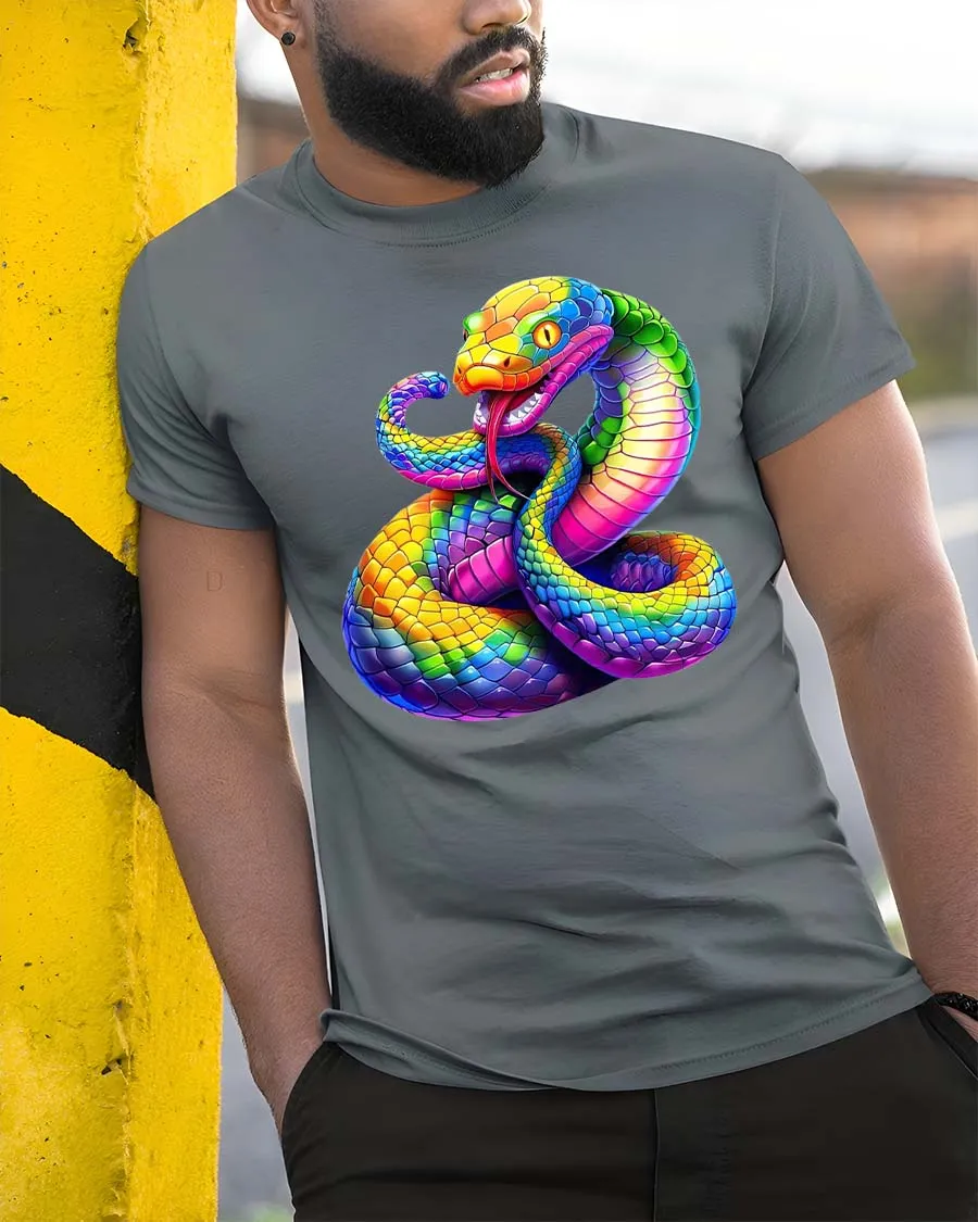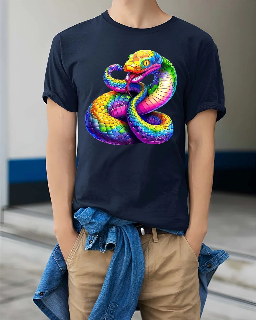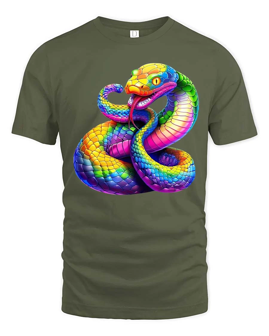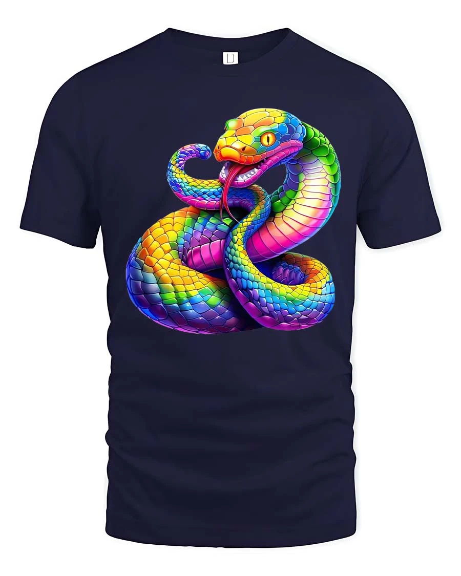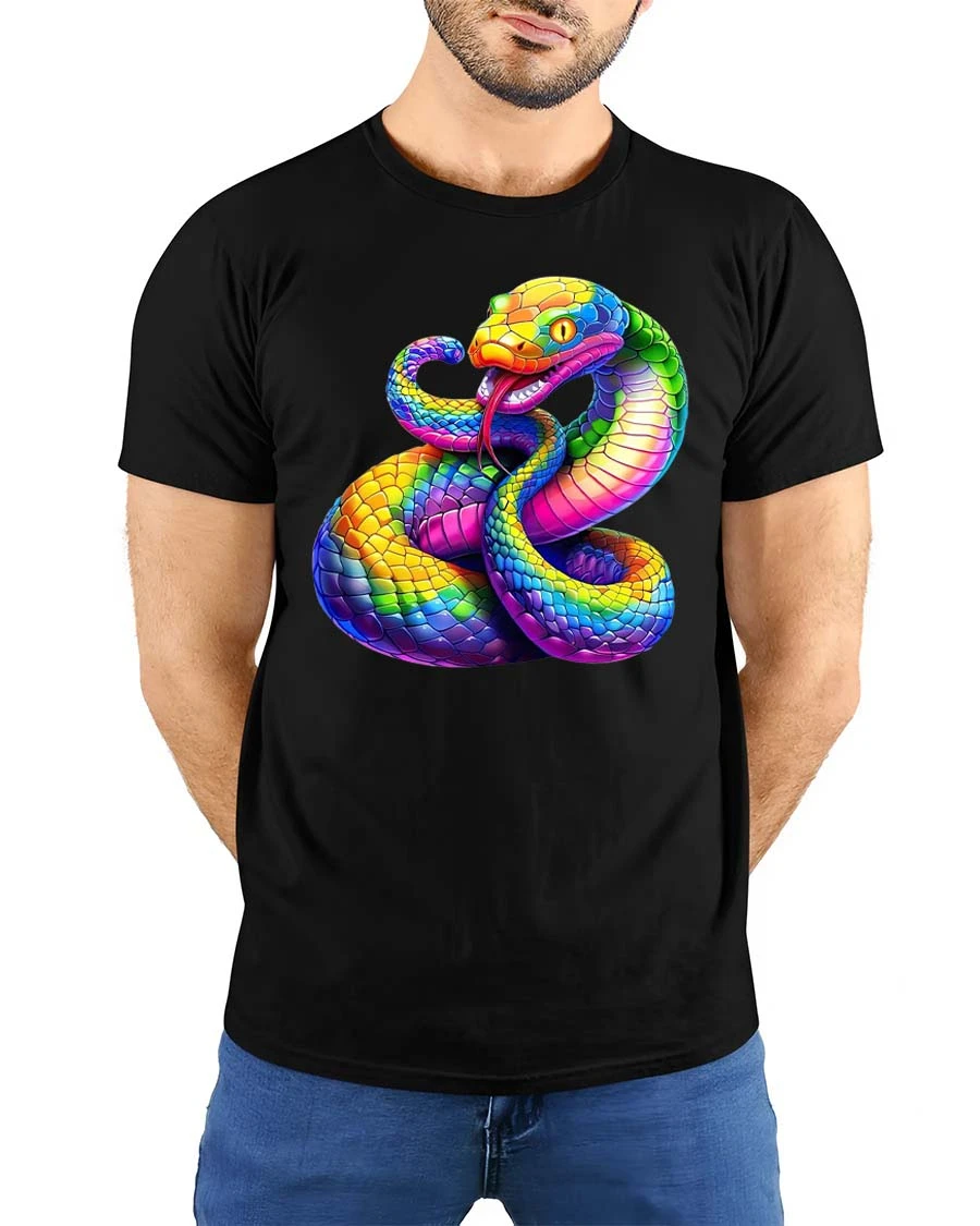 Colorful Rainbow Snake Vibrant Psychedelic Graphic T Shirt delivers a bold and eye catching design full of energy and color.
