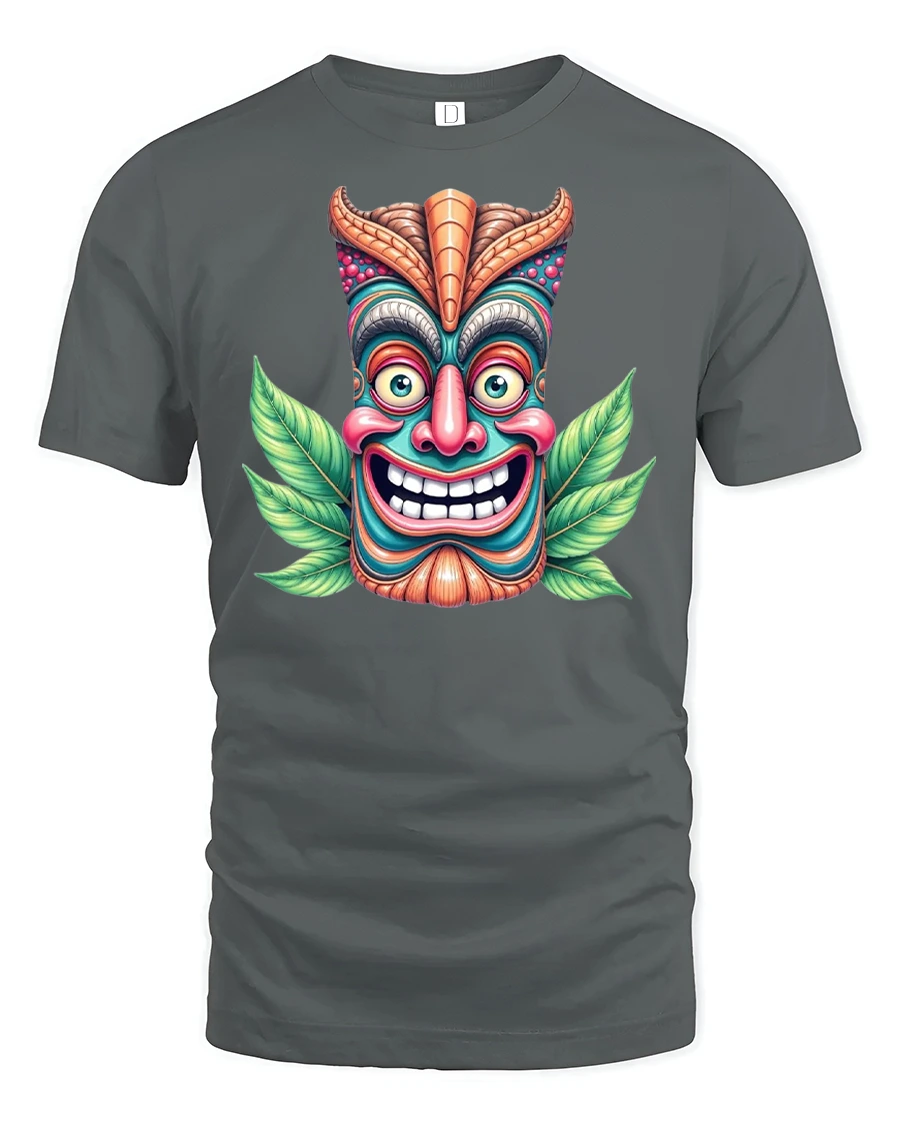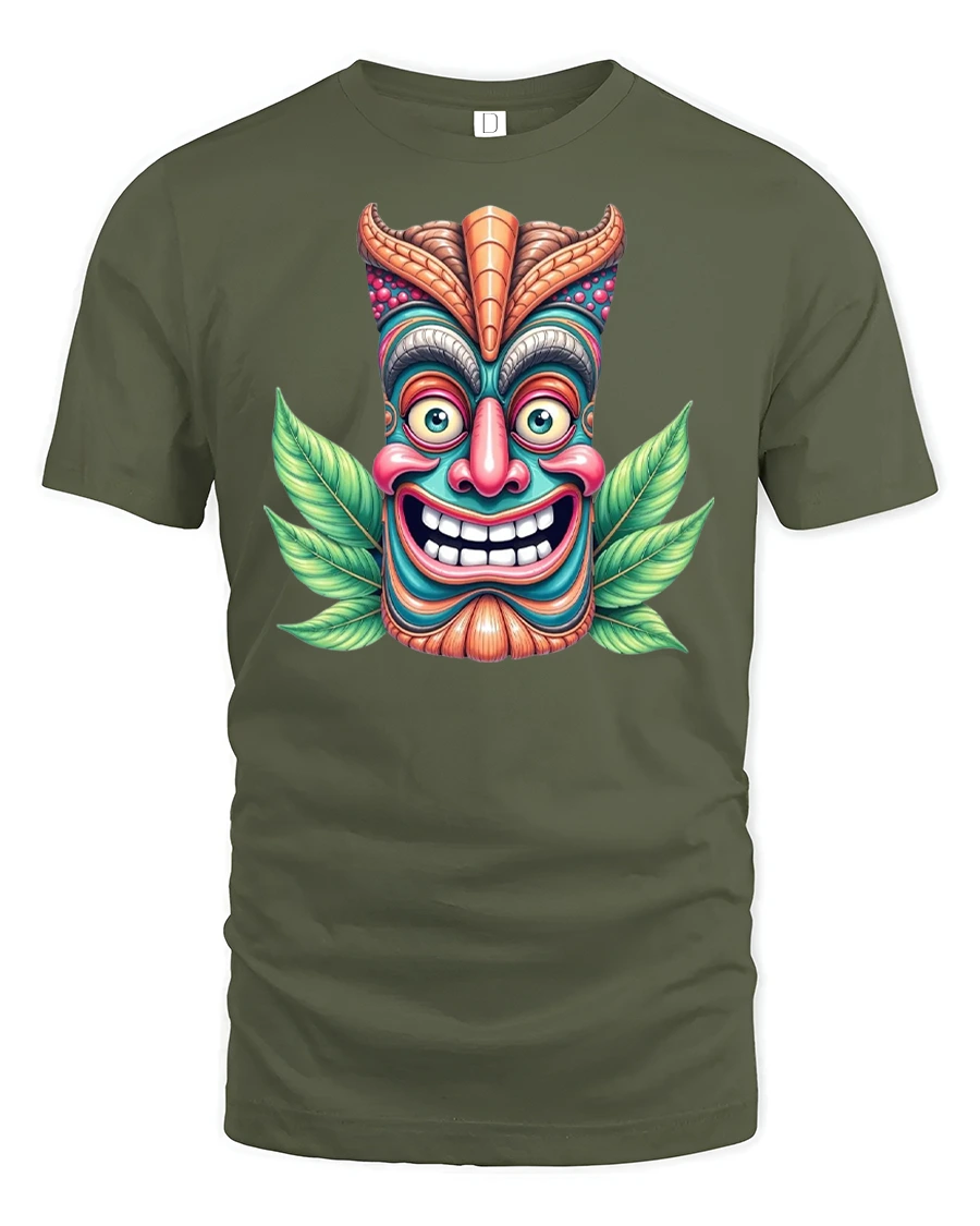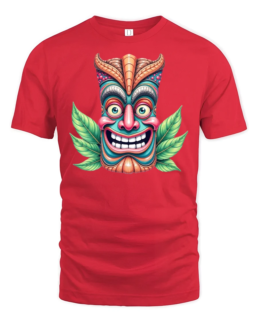 Step into tropical fun with the Colorful Tiki Mask Tee with Tropical Island Vibes Print, designed to bring the energy of a Hawaiian luau to your everyday style. Featuring a bold, brightly colored tiki mask with exaggerated details and vibrant tropical leaves, this tee is perfect for anyone who loves beach vibes and festive fashion.