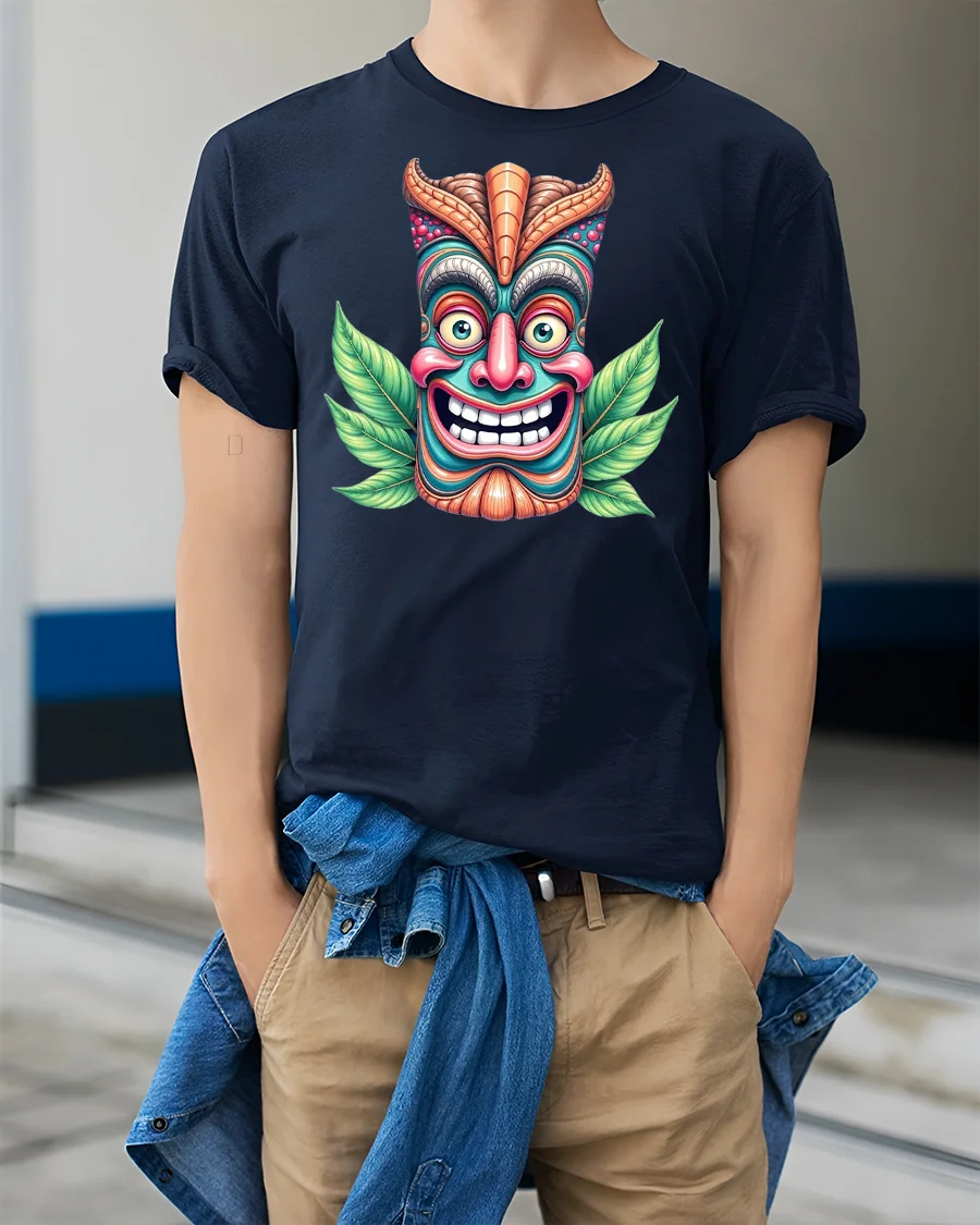 Made from soft, breathable fabric, this tiki mask t-shirt is ideal for summer parties, vacations, or casual wear. Its eye-catching design makes it a standout piece that pairs effortlessly with jeans, shorts, or beachwear, giving you a playful and fun look wherever you go.