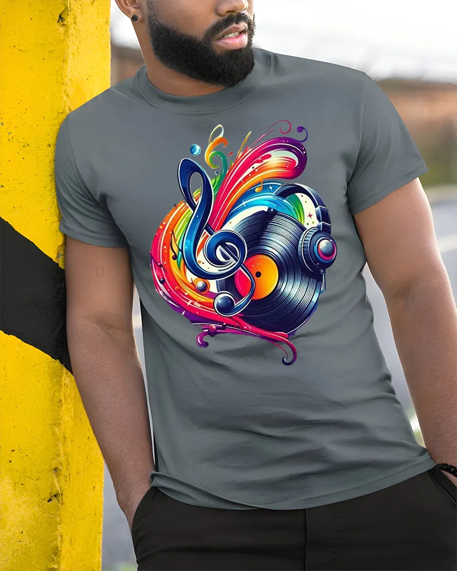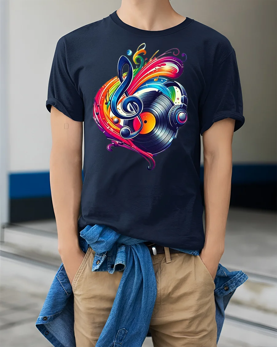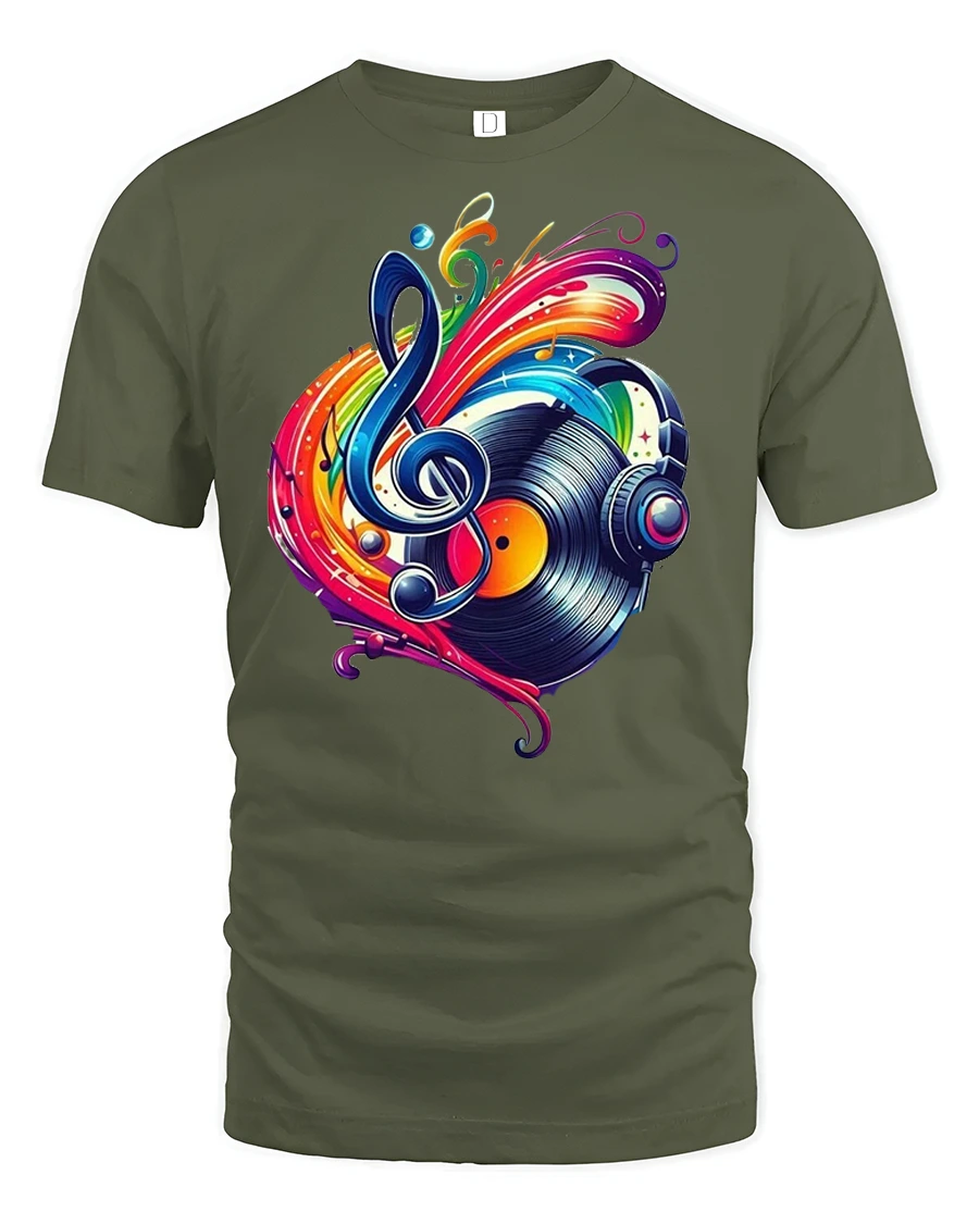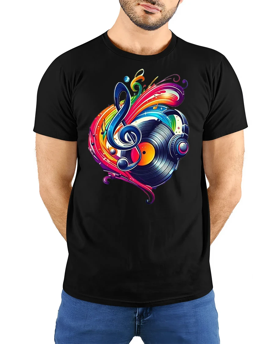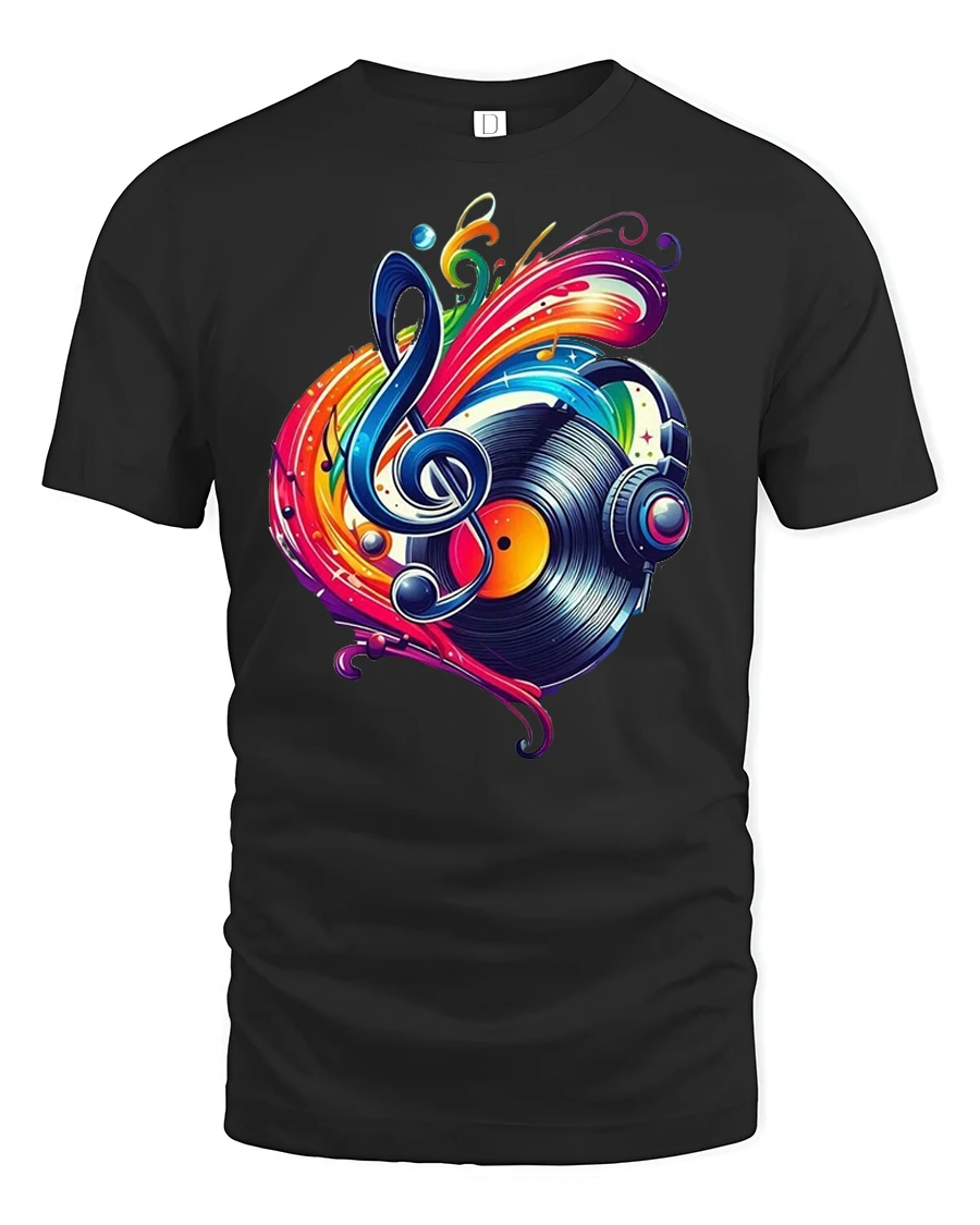 The Colorful Vinyl Record Music Art Graphic Printed Tee is a vibrant celebration of sound and style, perfect for music lovers who want their passion to shine. Featuring a rainbow vinyl record with bold music notes and an artistic splash of colors, this design instantly stands out. Whether you’re a DJ, a retro vinyl enthusiast, or just someone who lives and breathes music, this shirt is made for you.