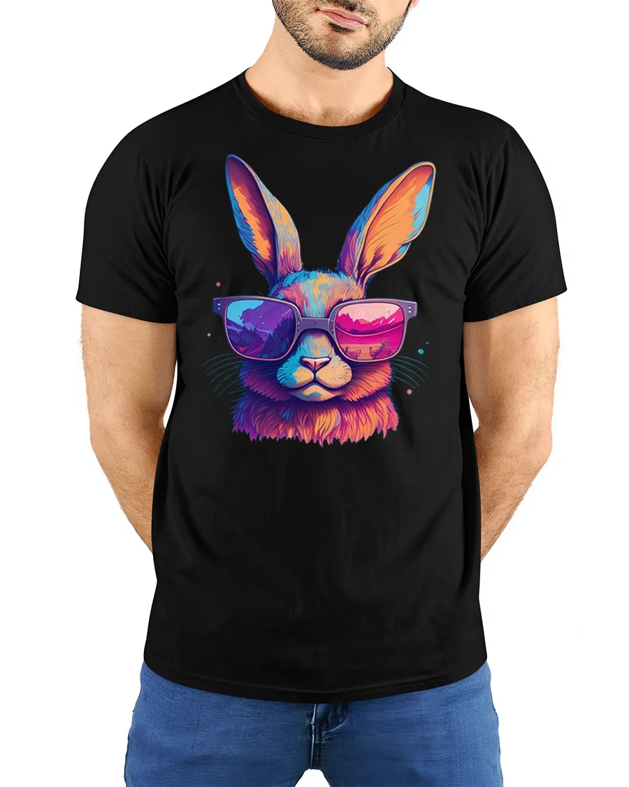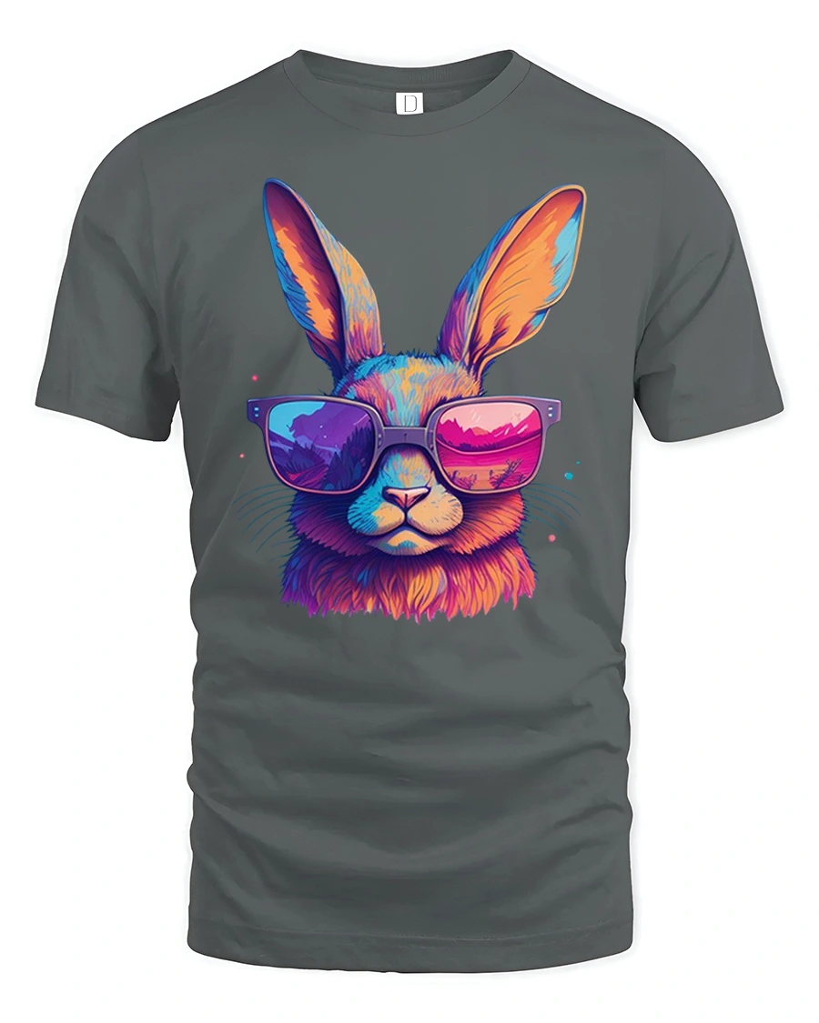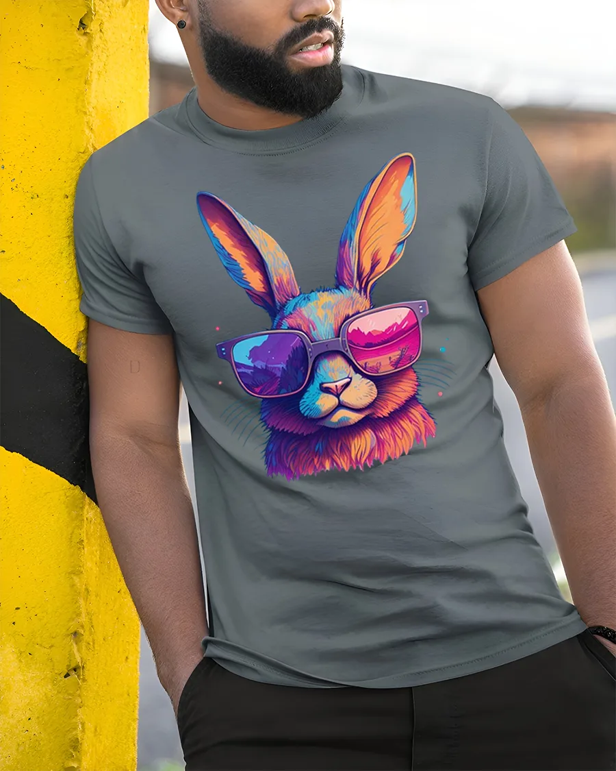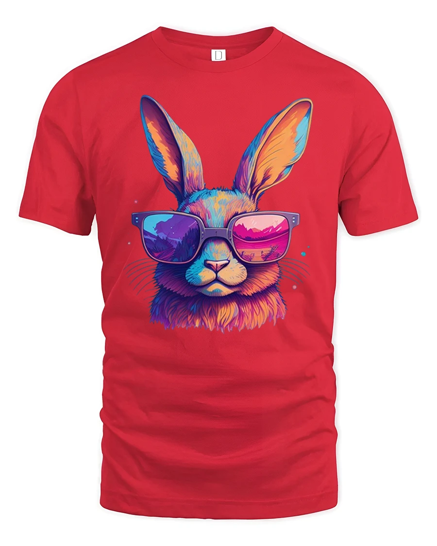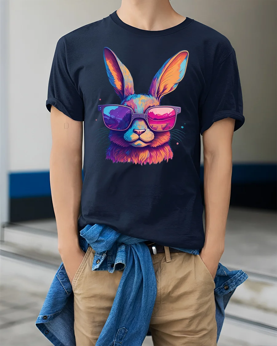 Cool Bunny Tee with Neon Sunglasses and Colorful Artistic Style brings a fun, energetic twist to your casual wardrobe. The design features a bold and vibrant rabbit wearing oversized neon shades, blending electric hues of pink, orange and blue for a striking visual effect. The bright reflection in the sunglasses adds extra personality, making this tee stand out effortlessly in any setting.