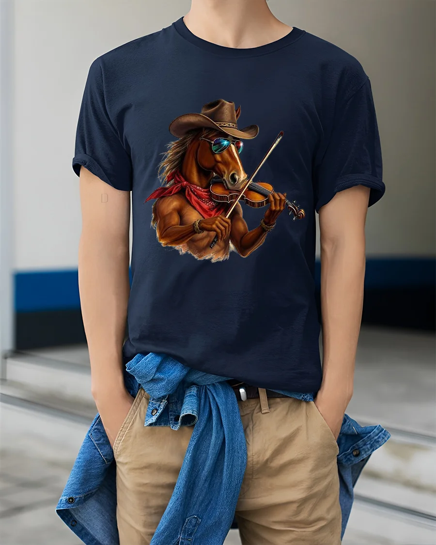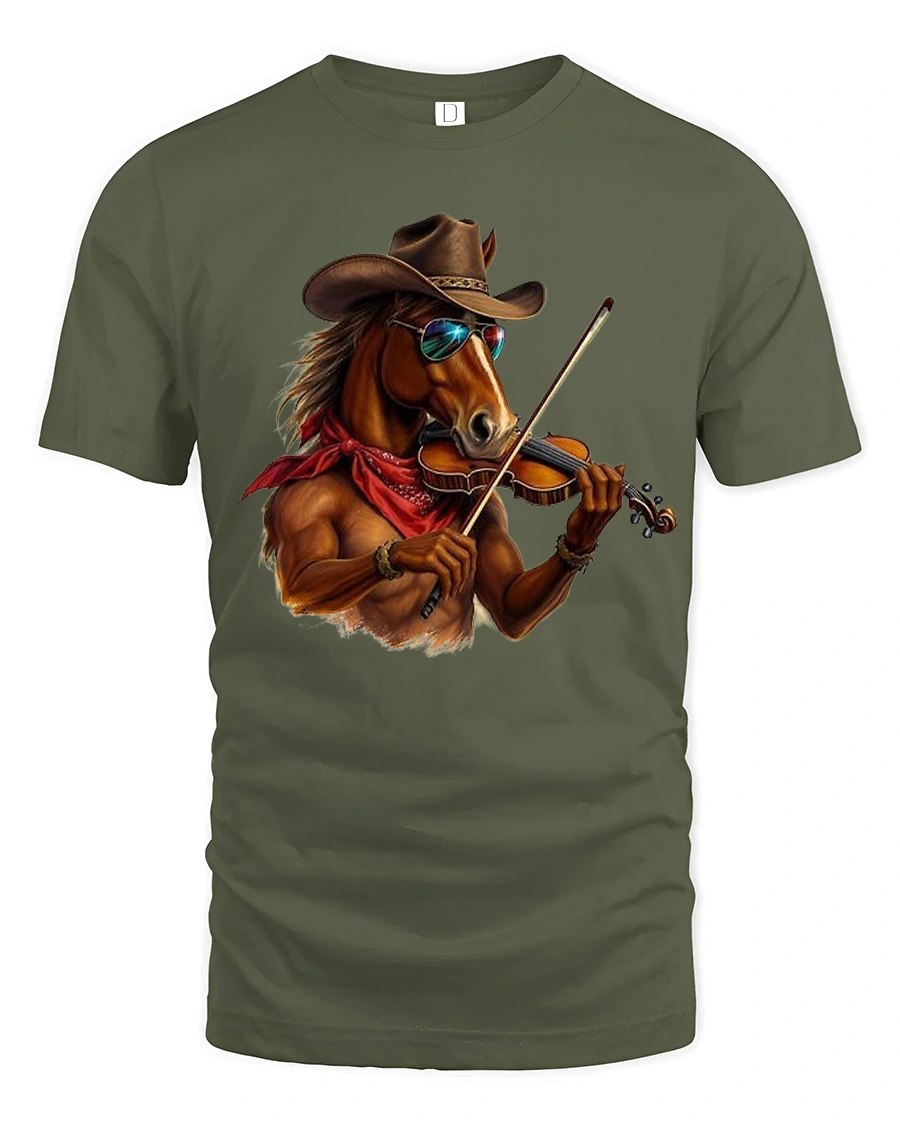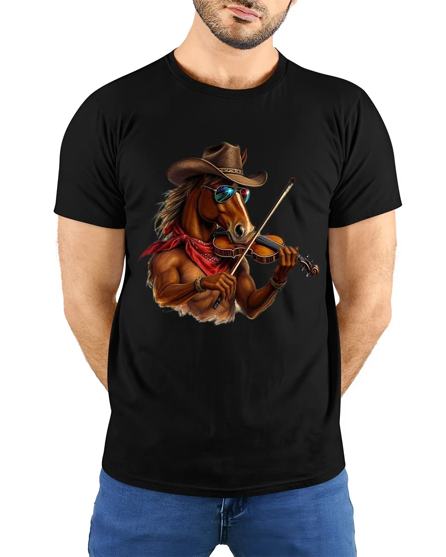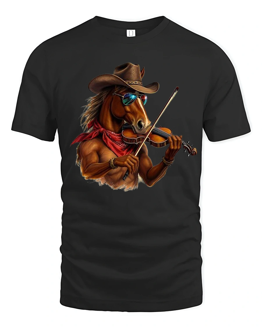 Cool Cowboy Horse Playing Violin Western Music Art Graphic T Shirt blends humor western charm and musical creativity into a bold illustrated design.
