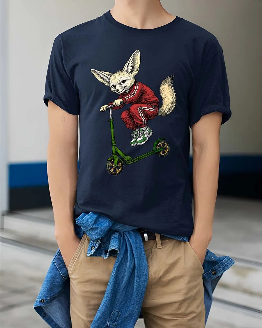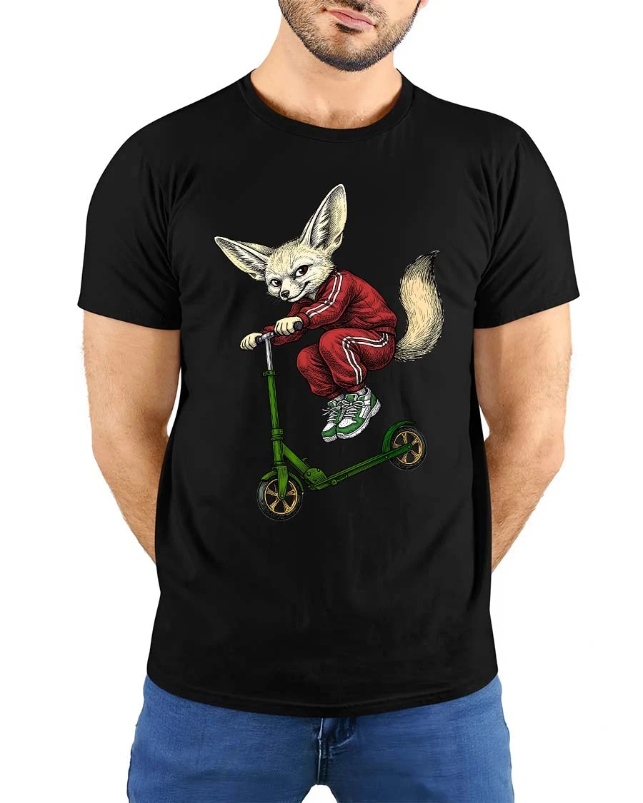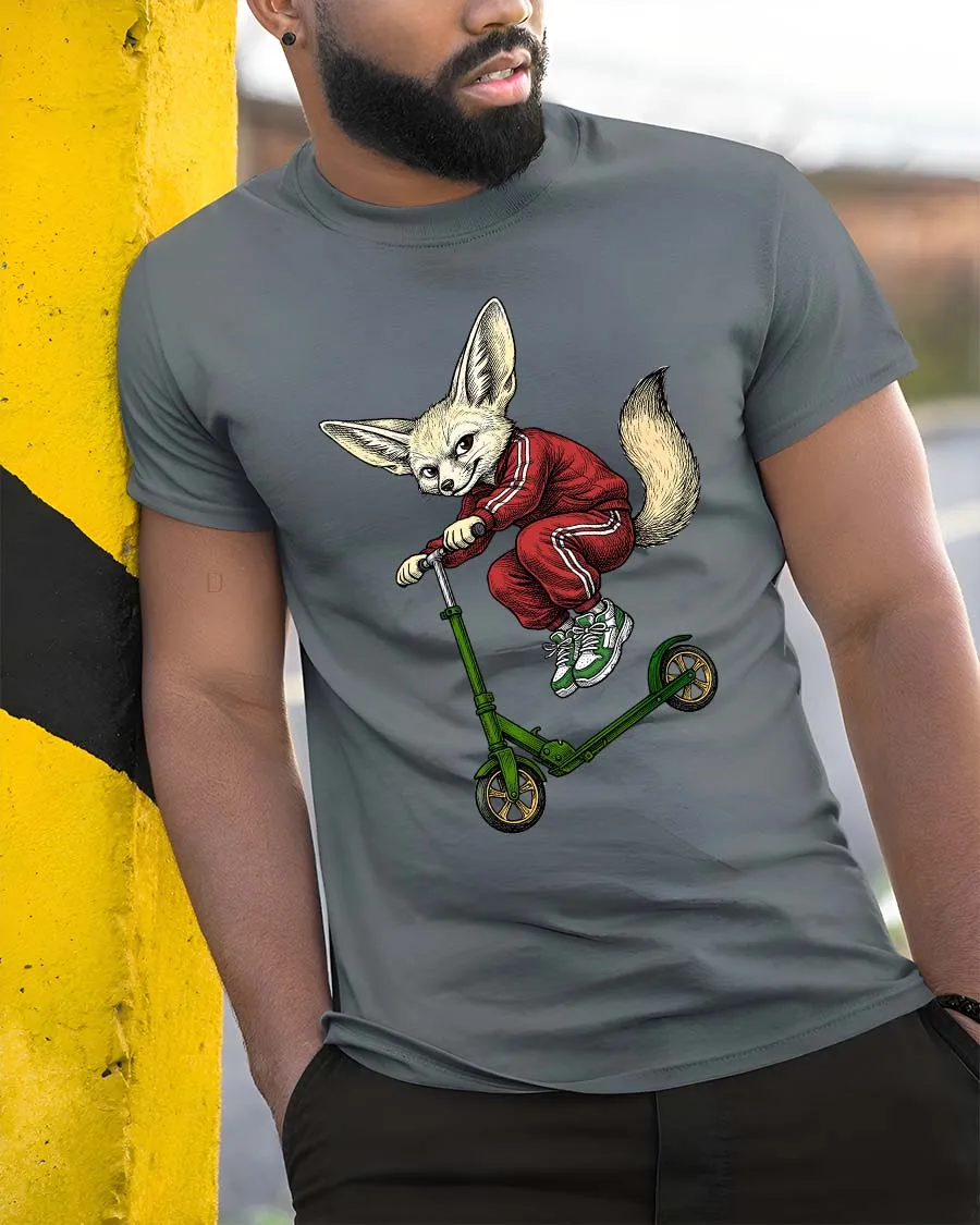 Cool Fox Riding Scooter Graphic T Shirt Funny Street Style