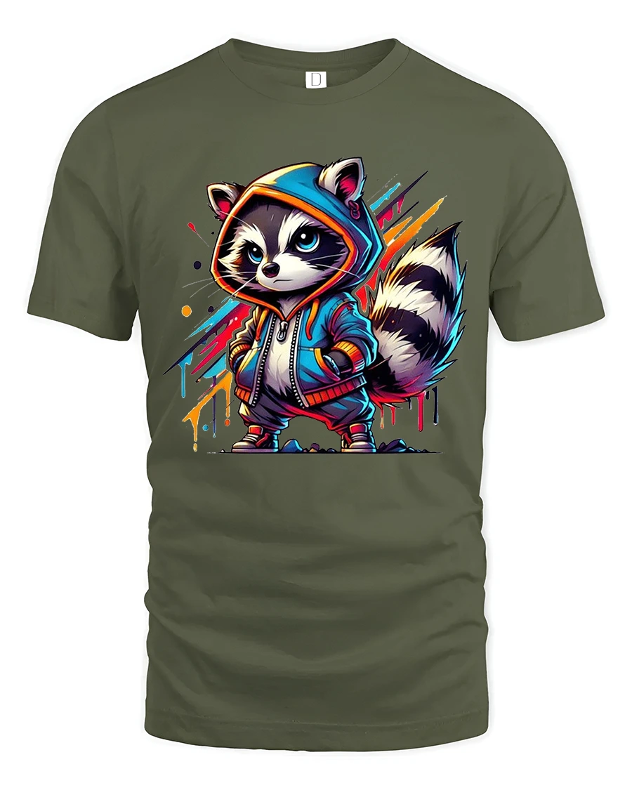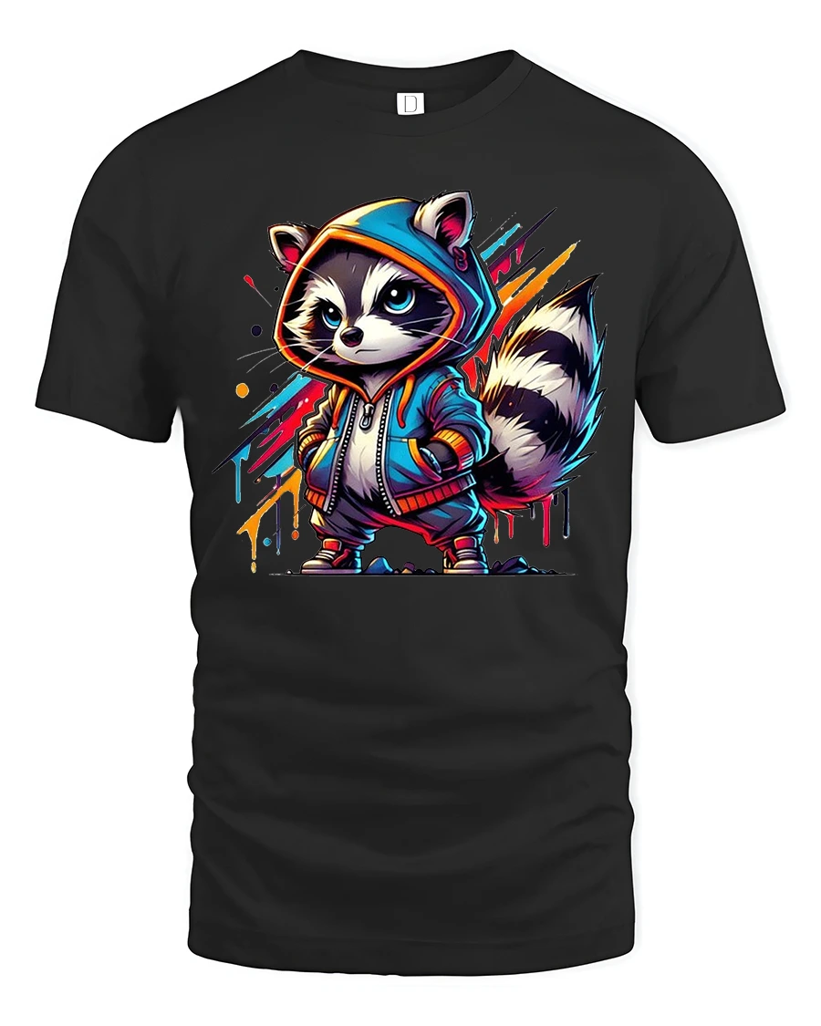 Cool Raccoon Street Art T Shirt Urban Cartoon Graphic Tee represents creativity confidence and modern street culture.