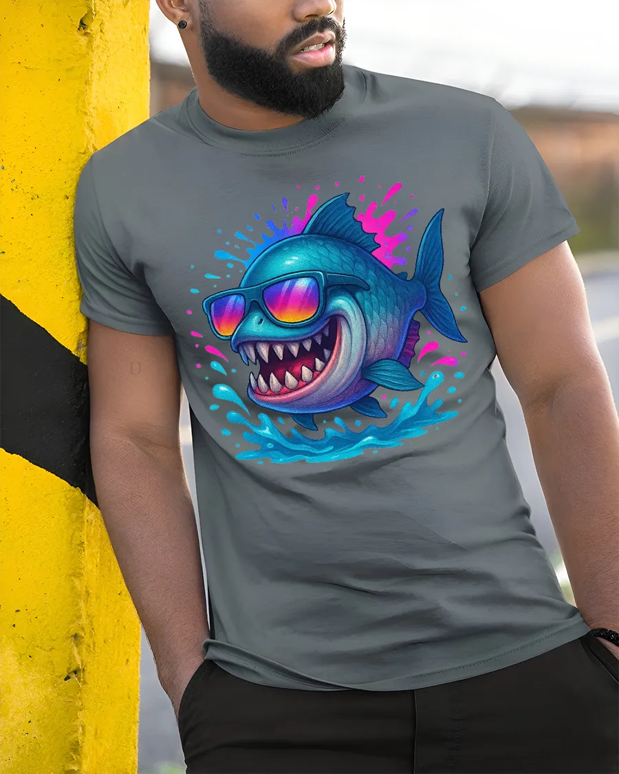 The Cool Shark Wearing Sunglasses Splash Art Graphic Tshirt Tee brings bold summer energy and playful attitude into one eye catching design.