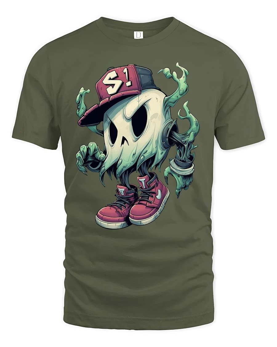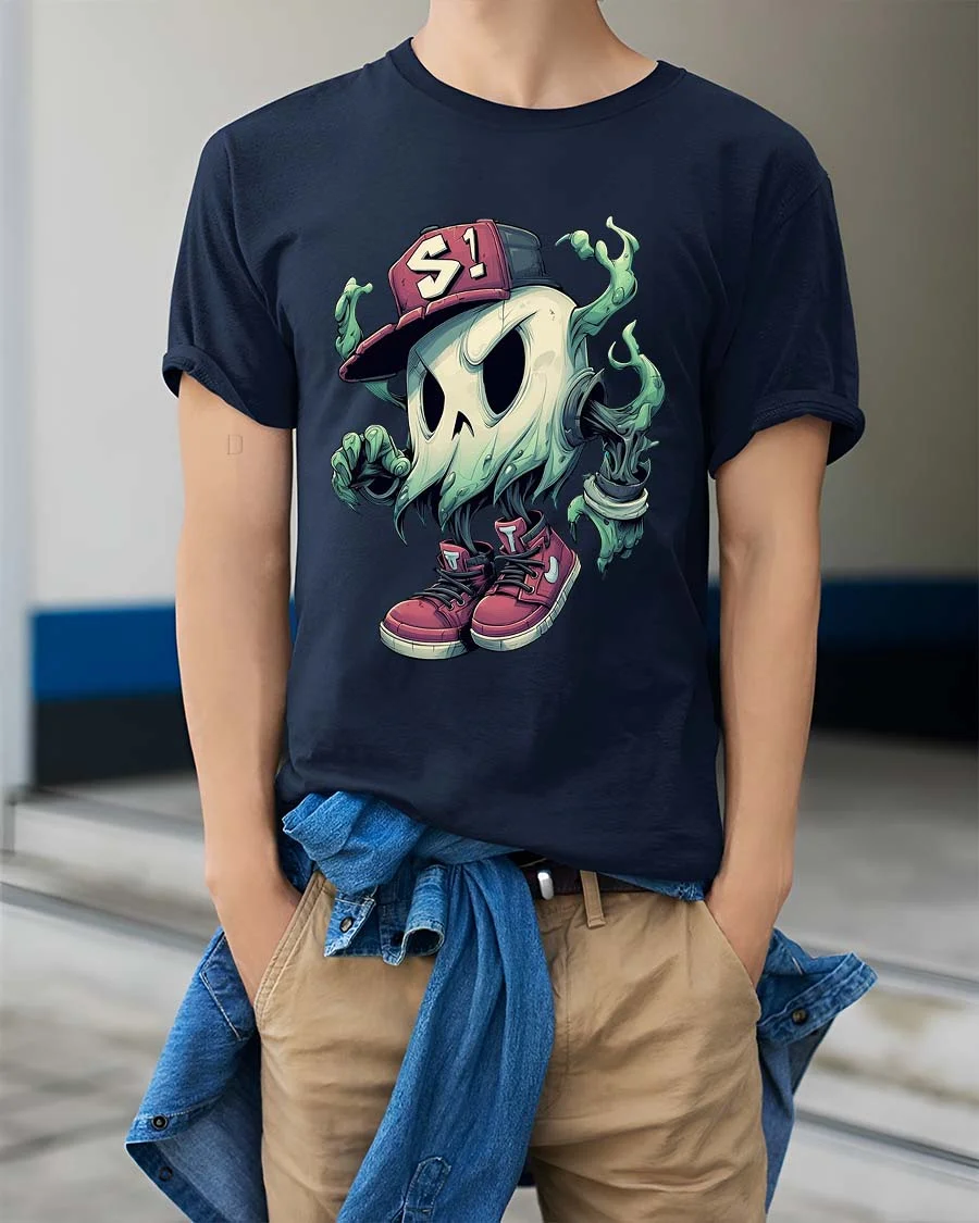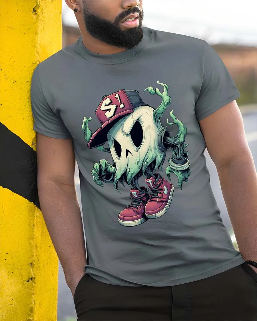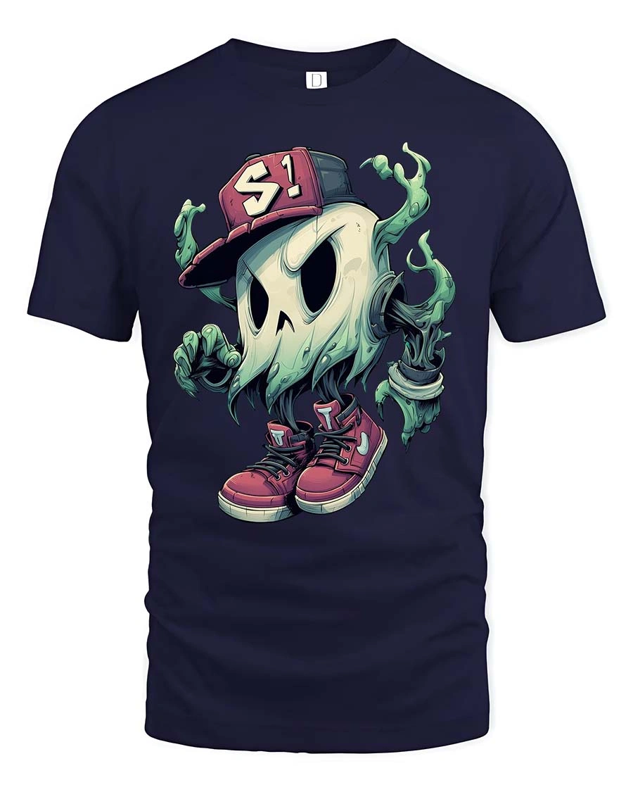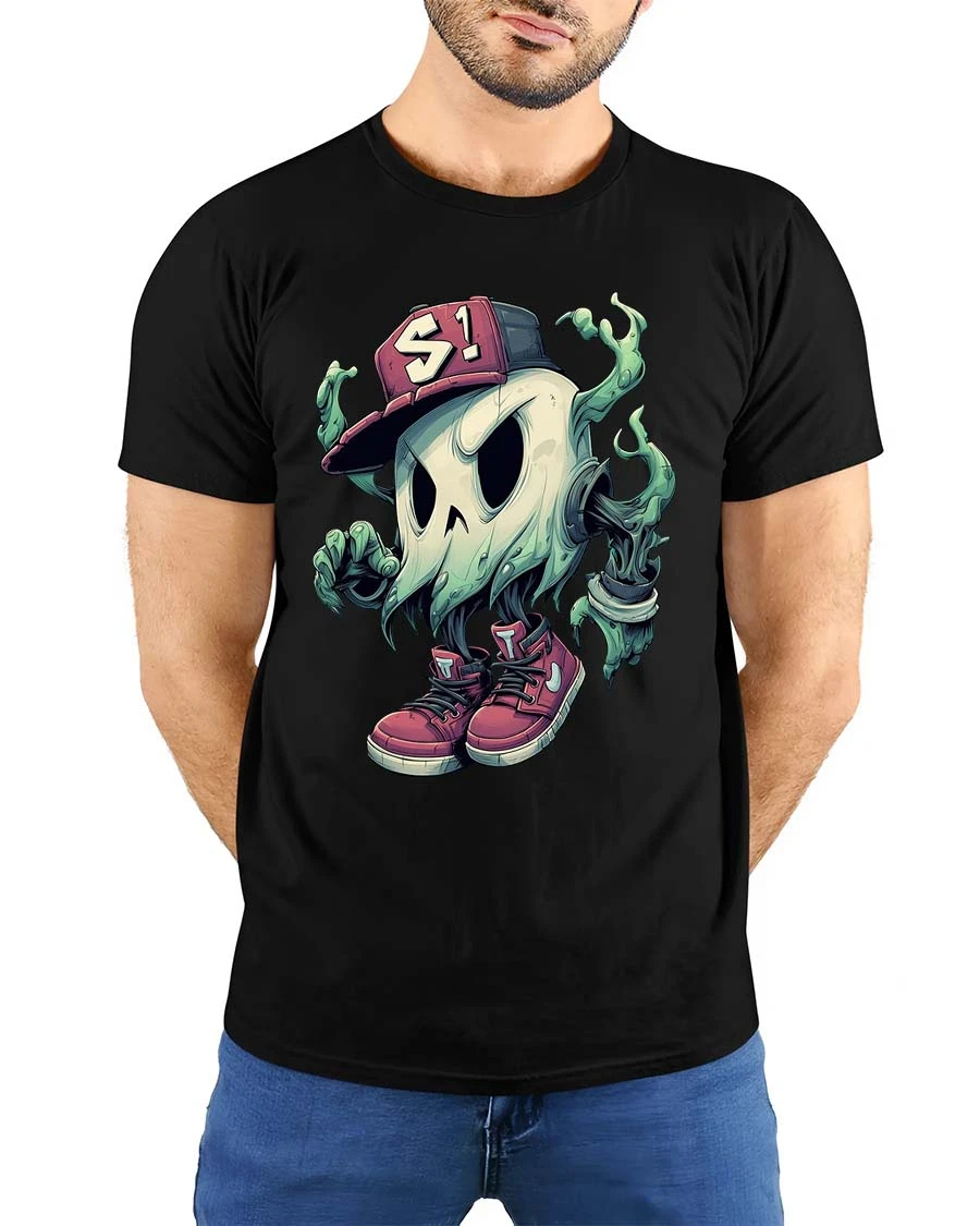 Cool Skull Streetwear Ghost With Cap Sneakers Graphic T Shirt delivers a bold and playful urban vibe with a unique character design.
