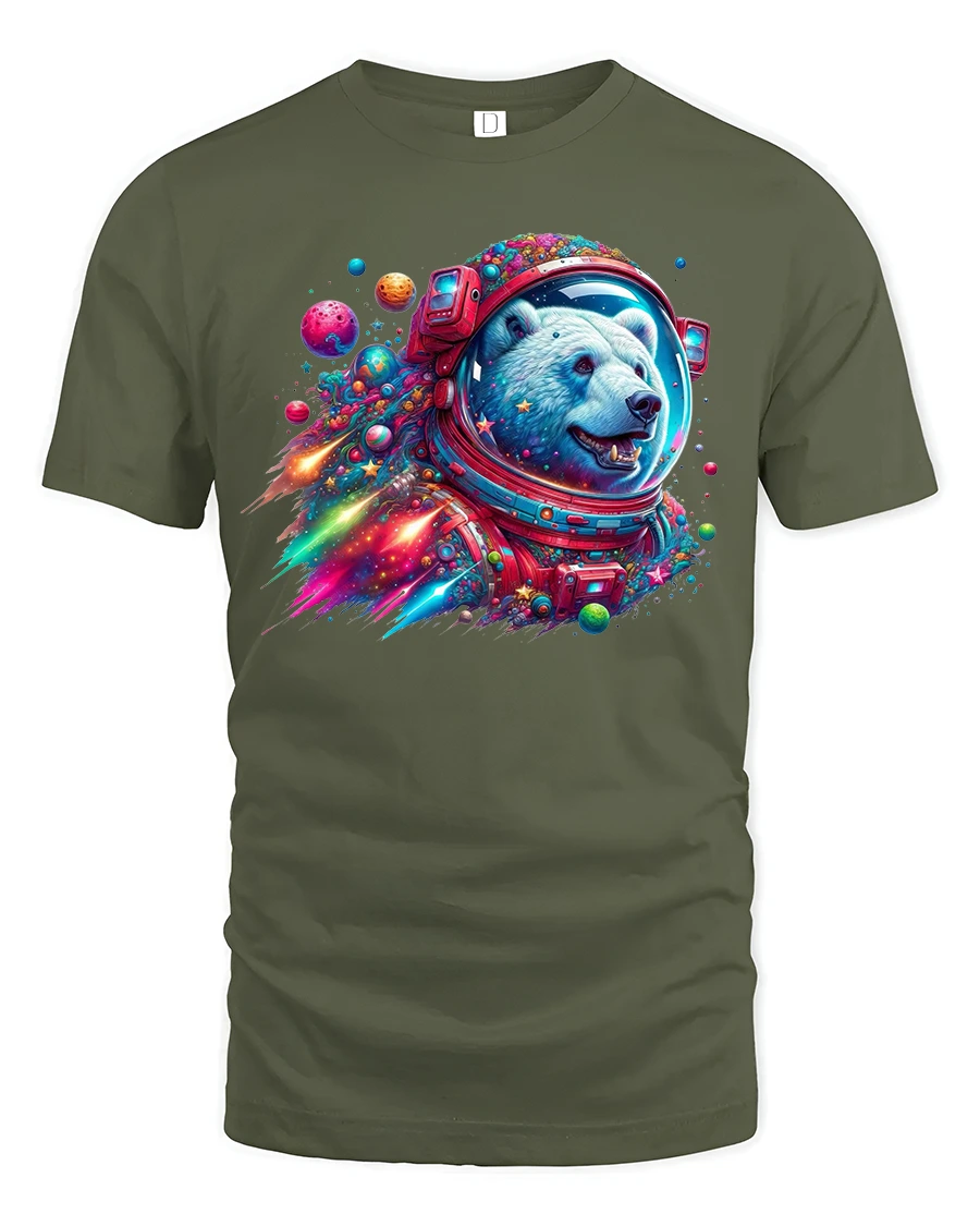 This Cosmic Astronaut Bear Colorful Space Adventure Graphic Tee is perfect for dreamers, explorers, sci-fi lovers, and anyone who enjoys bold, imaginative artwork. Featuring a highly detailed polar bear suited up as an astronaut, surrounded by neon planets, cosmic splashes, and vibrant galaxy colors, this design captures the magic of space with a fun, artistic twist. Its intense color palette and playful cosmic theme make it a standout shirt for both adults and teens who love unique graphic tees.