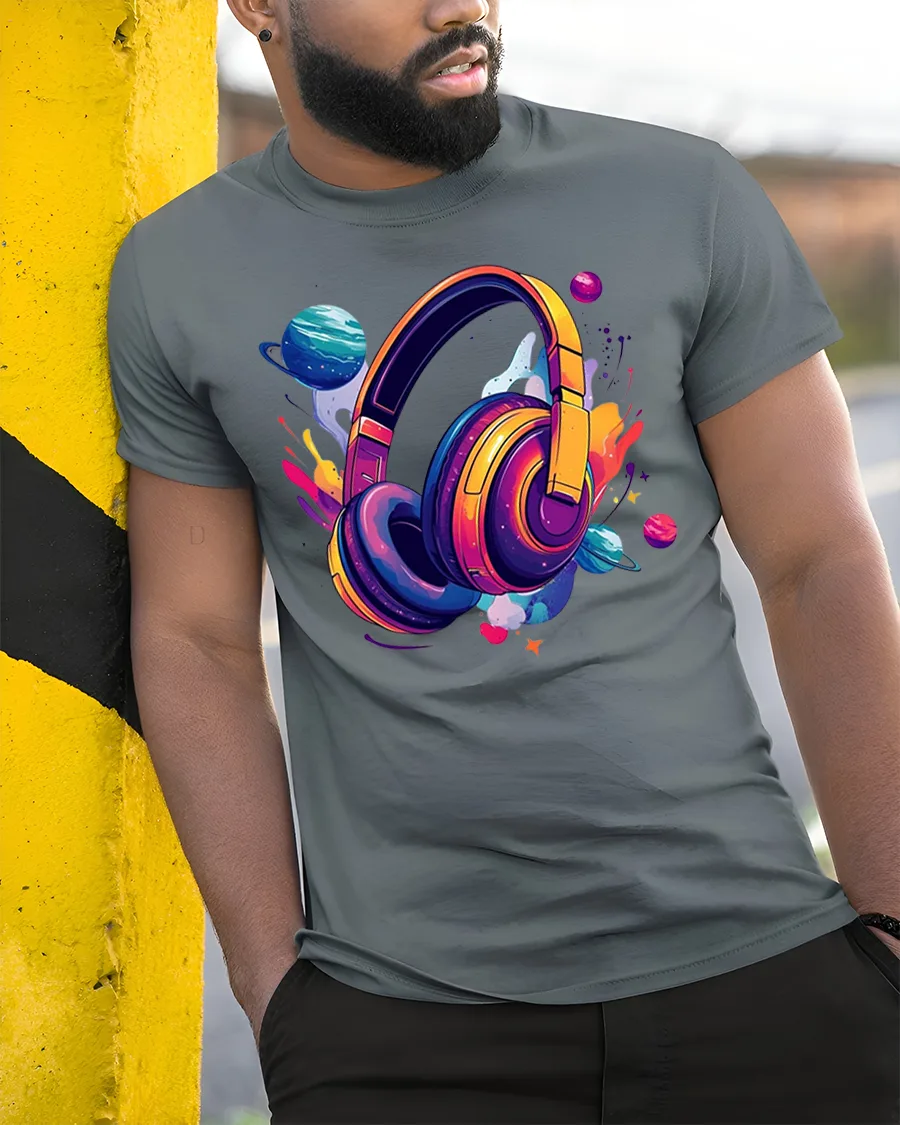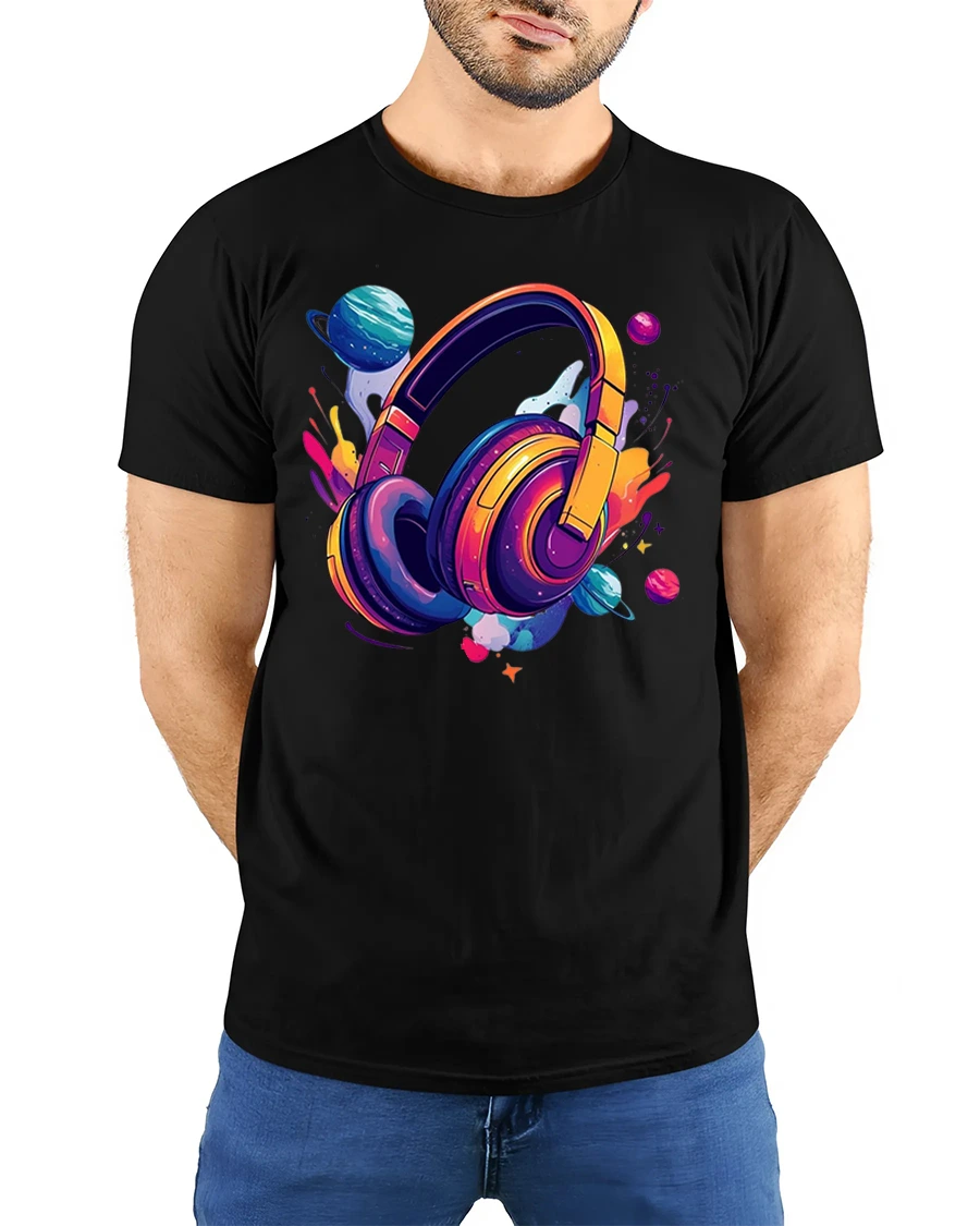 The Cosmic Headphones Galaxy Music Lover Graphic Tee is the ultimate choice for anyone who loves music, art, and outer space vibes. This bold design features a vibrant pair of headphones surrounded by colorful planets and cosmic splashes, making it a perfect fusion of sound and universe. It’s a stylish statement piece that’s ideal for music fans, DJs, and dreamers alike.