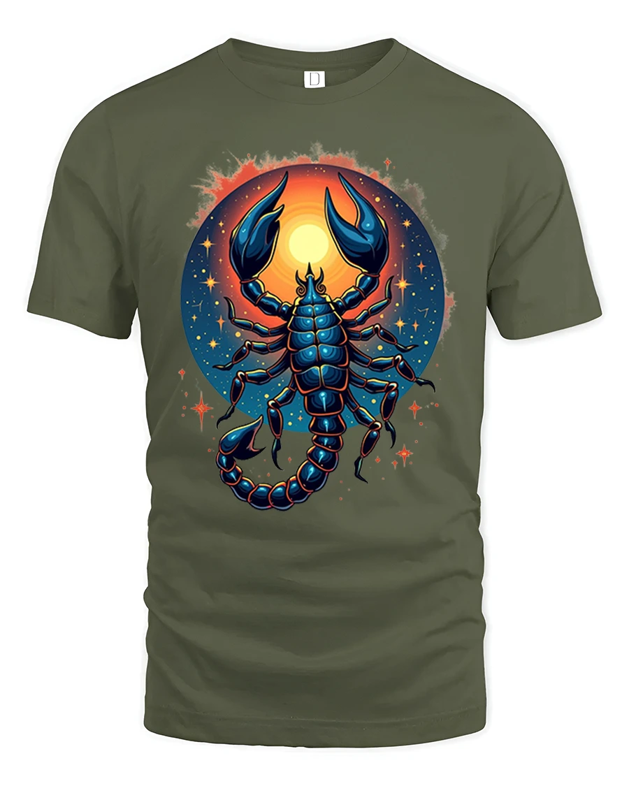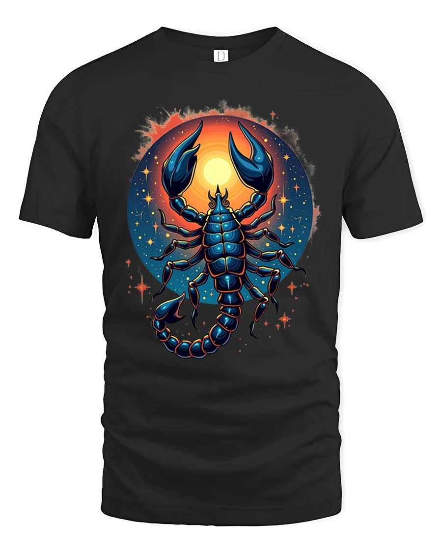Cosmic Scorpion Sunset Zodiac Art Bold Astrological Tee is the perfect statement piece for astrology lovers, Scorpio personalities, and anyone drawn to bold celestial artwork. Featuring a striking blue scorpion illuminated by a glowing sunset and surrounded by stars, this tee blends cosmic energy with vibrant artistic detail. The radiant colors and sharp design create a dramatic, eye-catching look that celebrates both zodiac symbolism and cosmic style.