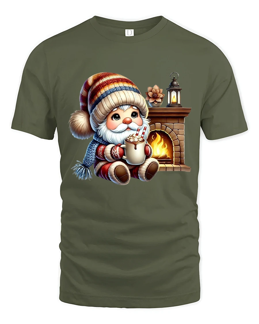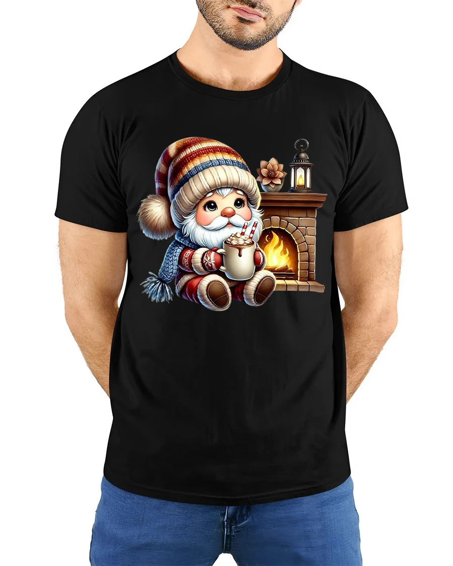 Cozy Winter Gnome Hot Cocoa Fireplace Cartoon Graphic Tee makes a thoughtful seasonal gift choice with lasting appeal.