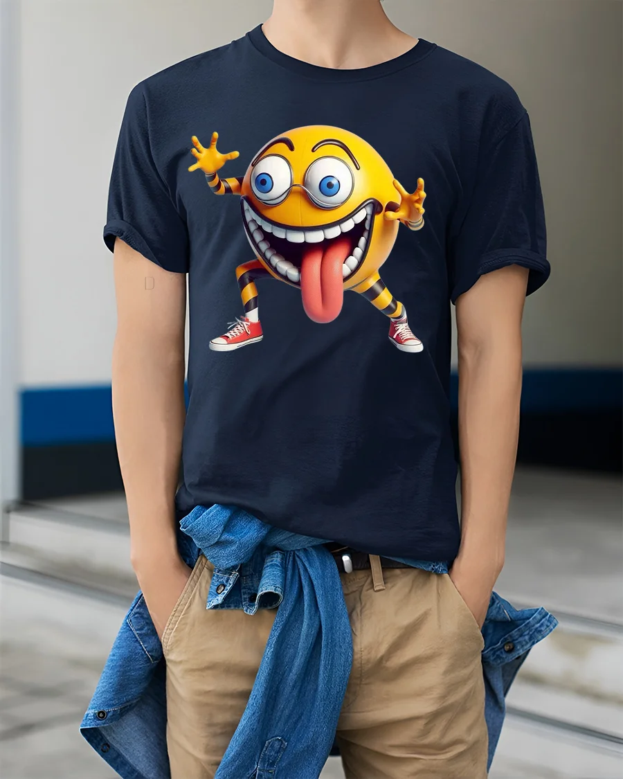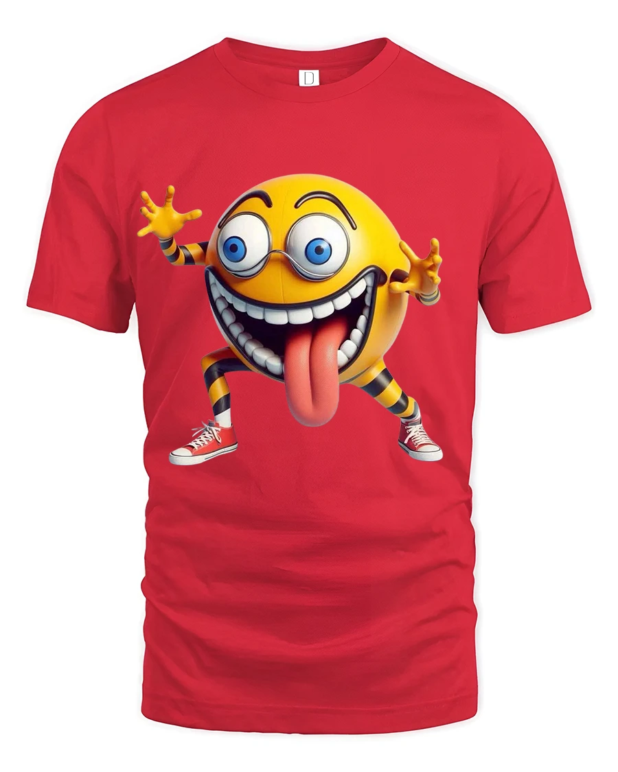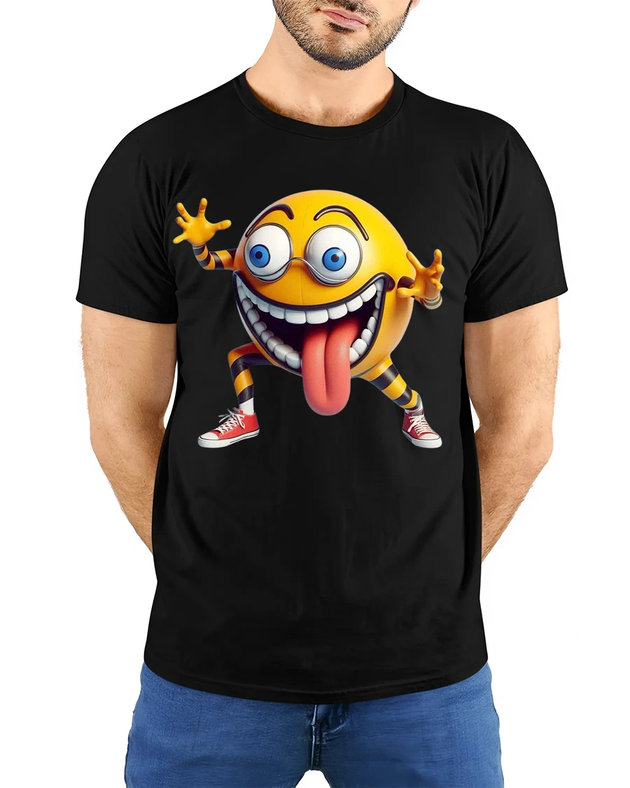 Crazy Goofy Emoji Face Graphic T Shirt With Big Tongue brings bold energy and playful humor to your everyday style. Featuring a wild smiling character with bright eyes and a hilarious tongue out expression, this design instantly grabs attention and sparks conversation. The vibrant cartoon artwork adds a fun pop culture vibe that stands out in any casual setting.