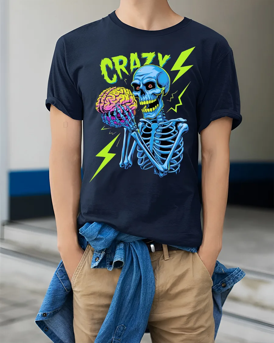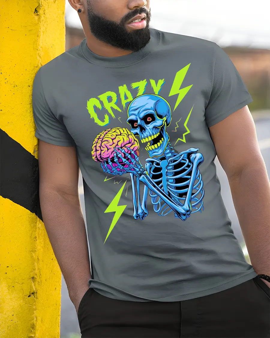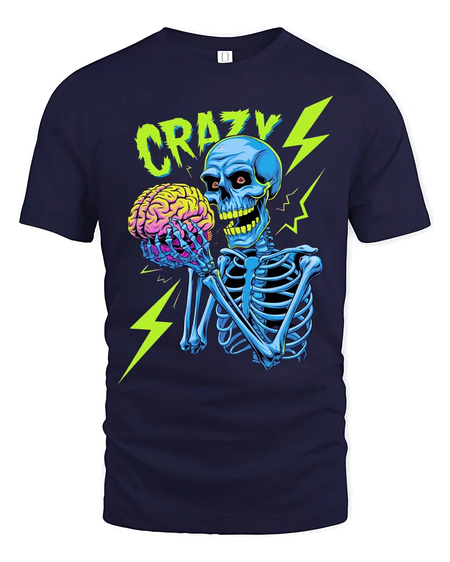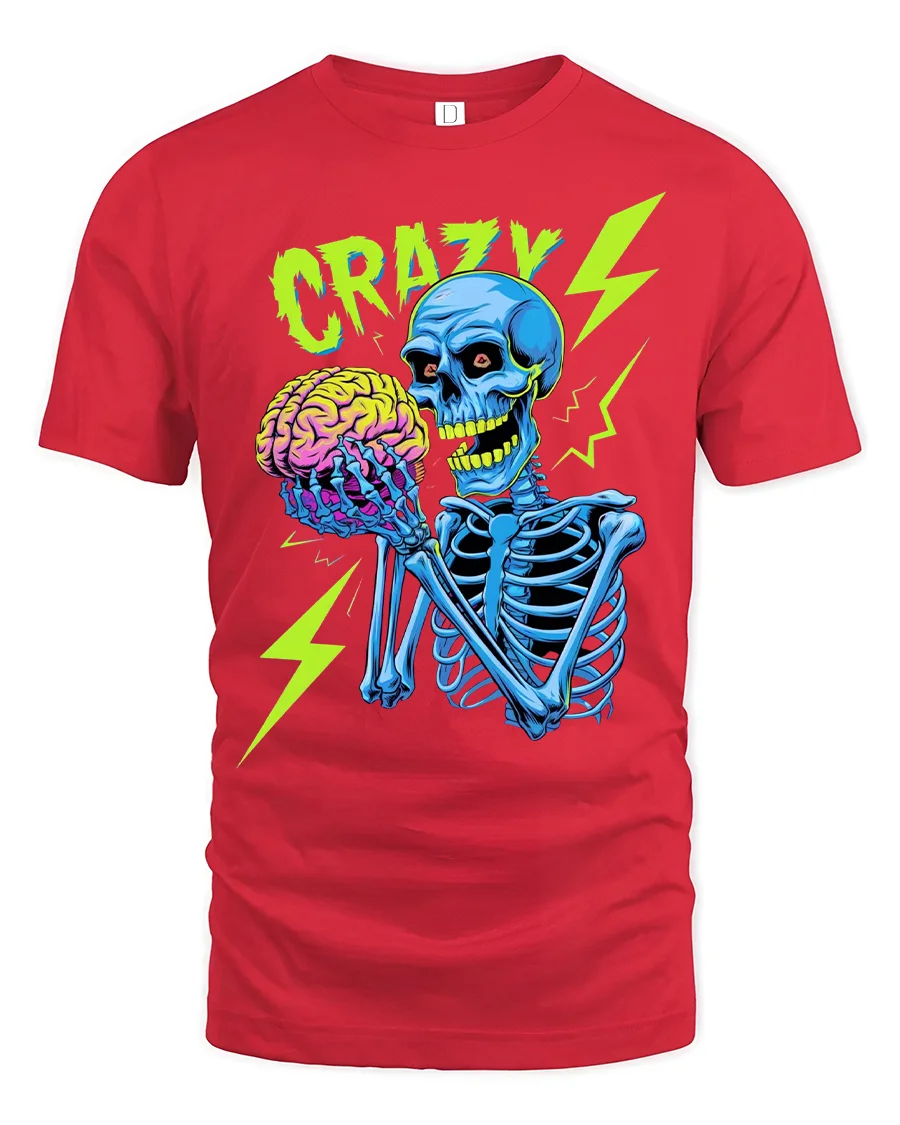 Crazy Skeleton Brain Graphic T Shirt is perfect for those who enjoy funny edgy and creative designs.