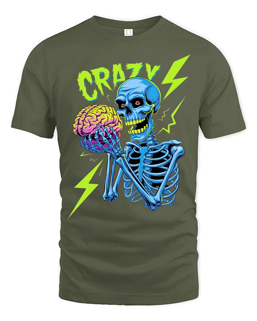 Crazy Skeleton Brain Graphic T Shirt delivers a bold mix of humor chaos and eye catching neon style.