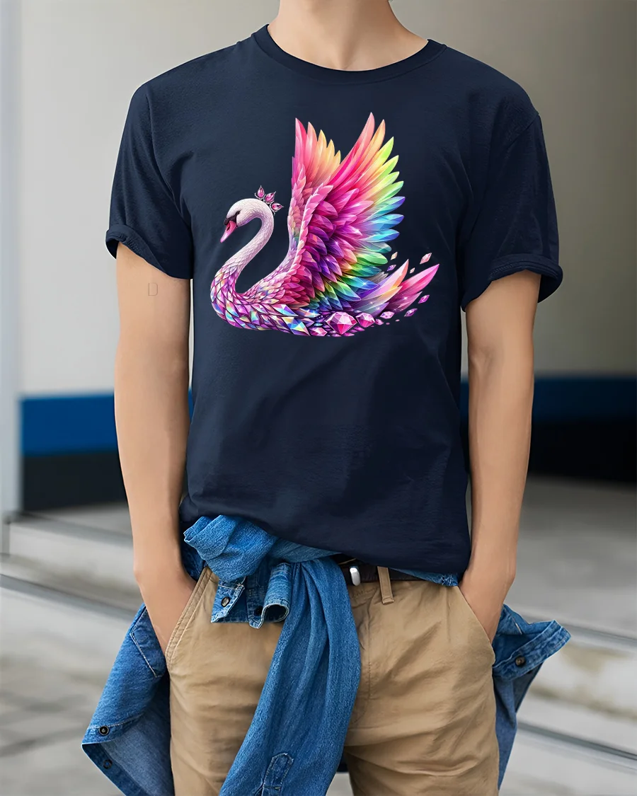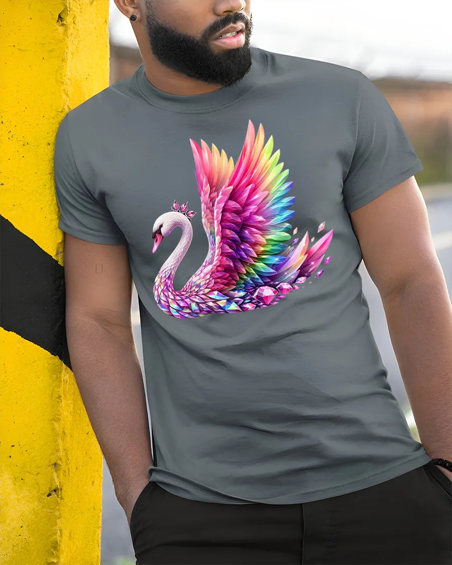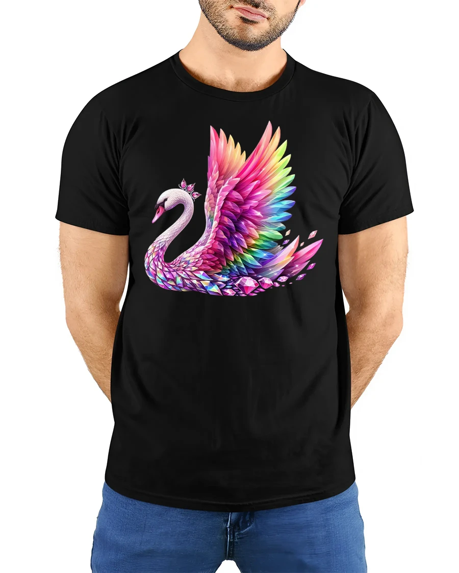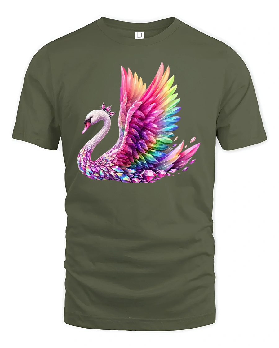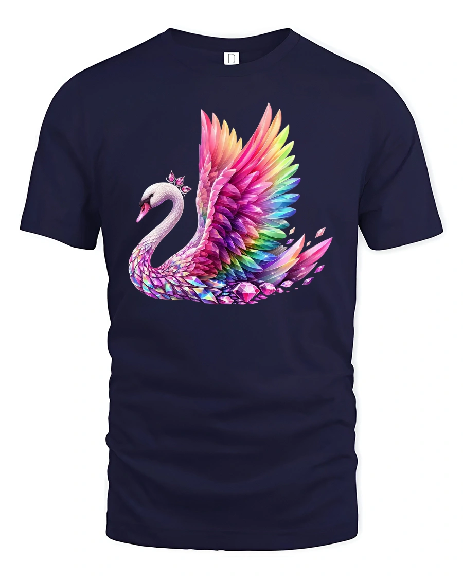 Crystal Rainbow Swan Elegant Colorful Wings Graphic TShirt Tee combines beauty, fantasy, and vibrant color in one captivating design. The artwork features a stunning swan crafted in a crystal style, with radiant rainbow feathers that shimmer with jewel inspired detail. Every feather appears sculpted with light, giving the design a magical and elegant appearance that instantly draws attention.