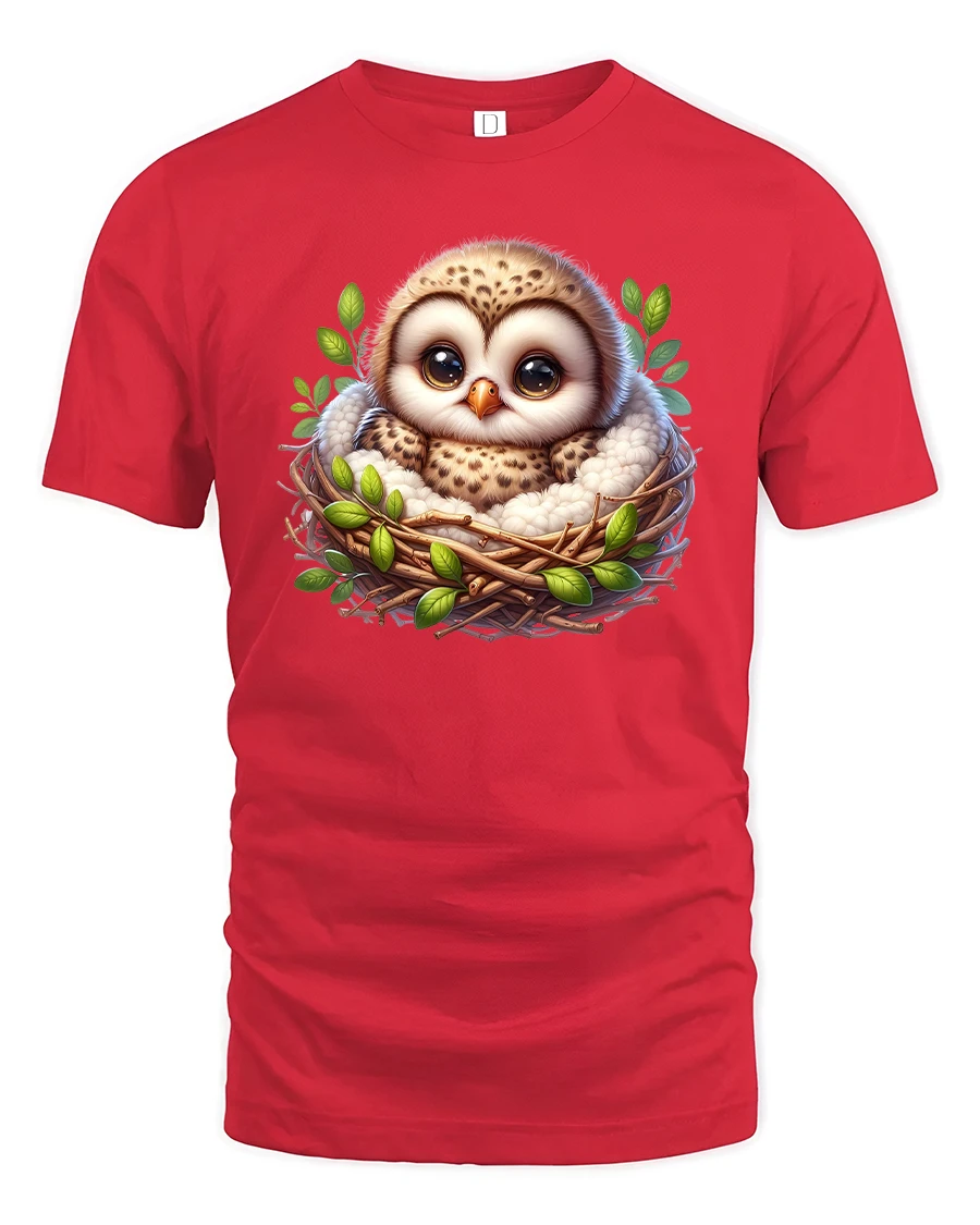 Cute Baby Owl Nest Graphic Printed Tee For Owl Lovers is a must-have for anyone who adores adorable animals and nature-inspired fashion. The design features a sweet baby owl sitting snugly in its leafy nest, making it the perfect statement piece for bird and animal lovers alike.